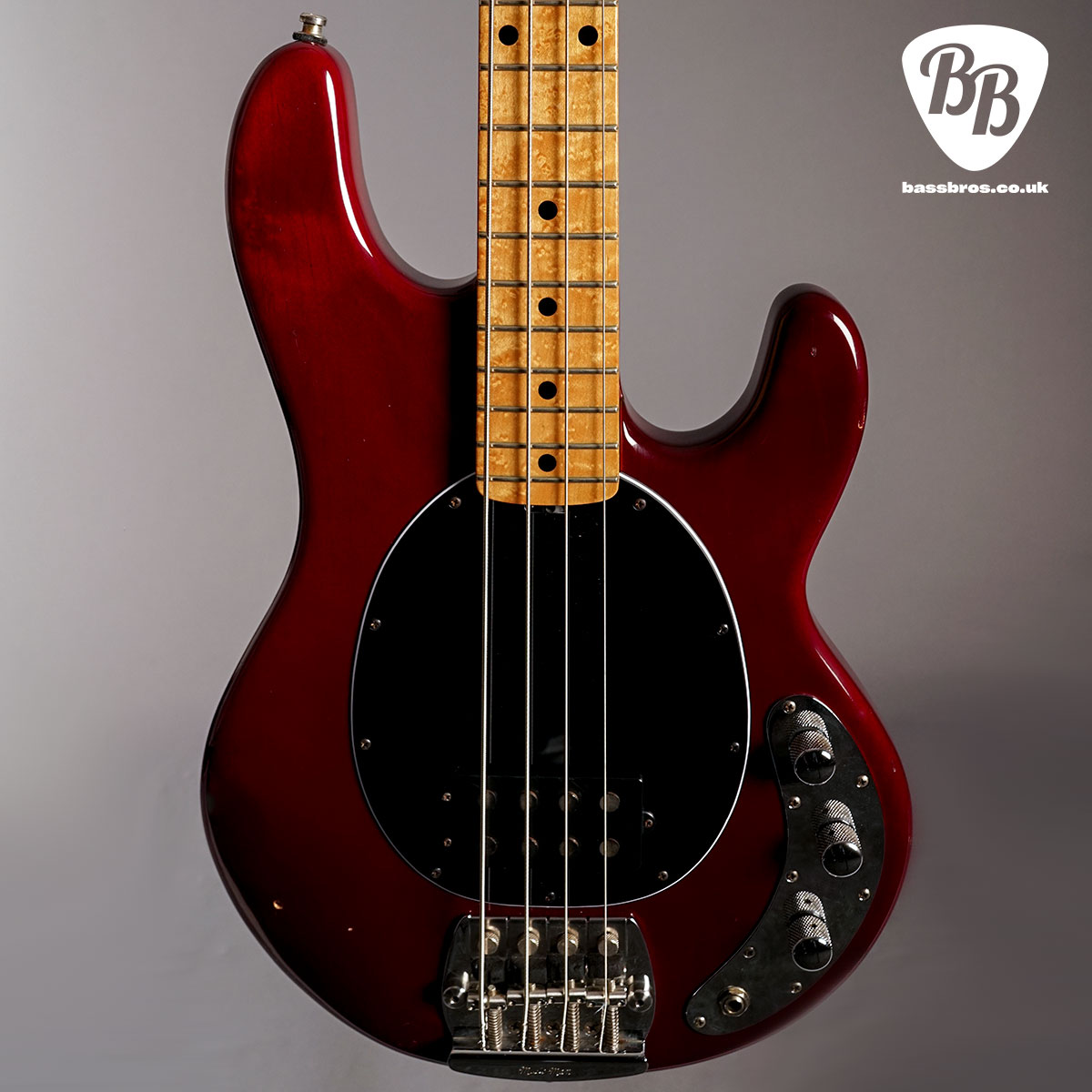 Here we have a very nice Ernie Ball Musicman Stingray 2 EQ from 1991. The trans red…