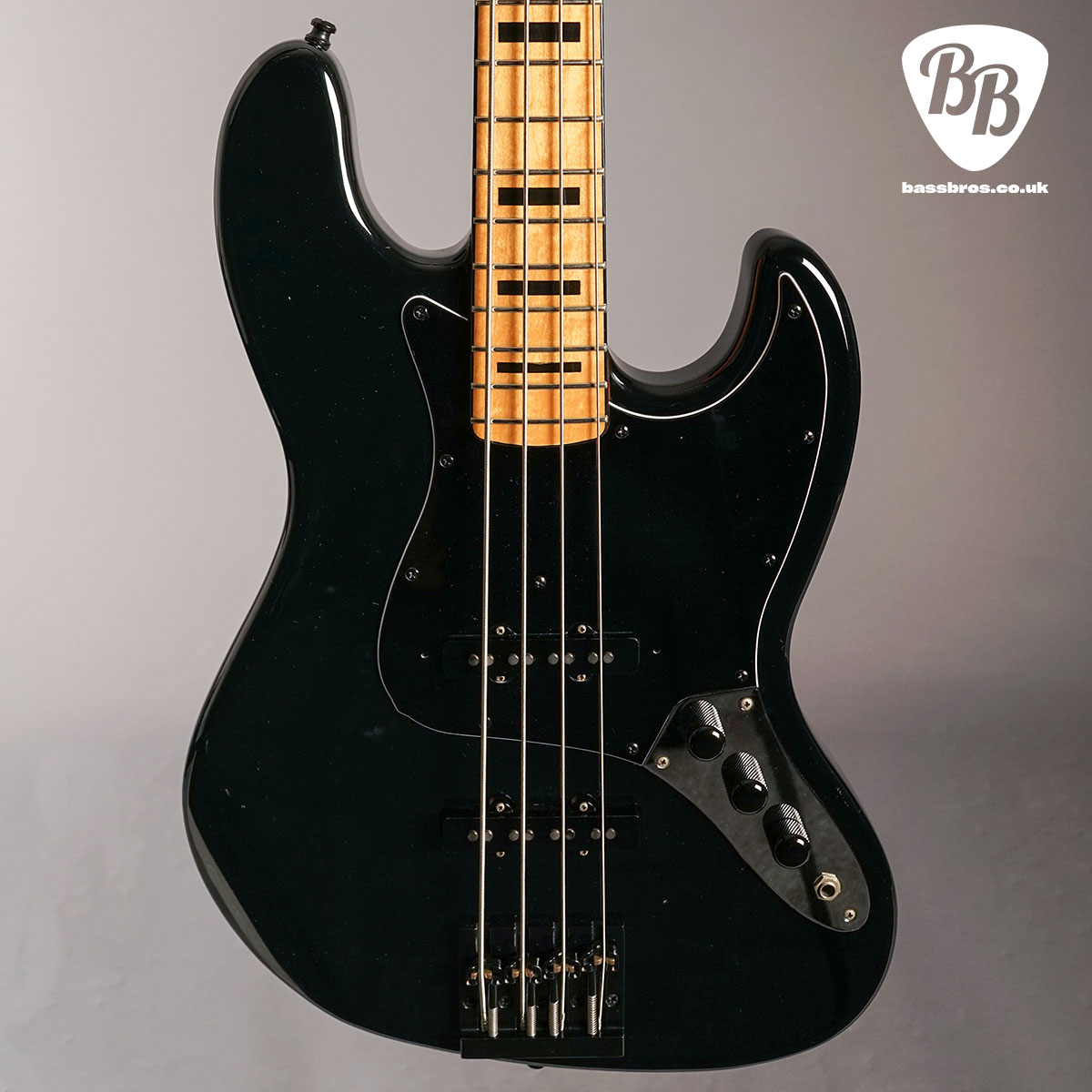 Here we have a very nice 1993 Fender JB-75 in black with black block inlays and…