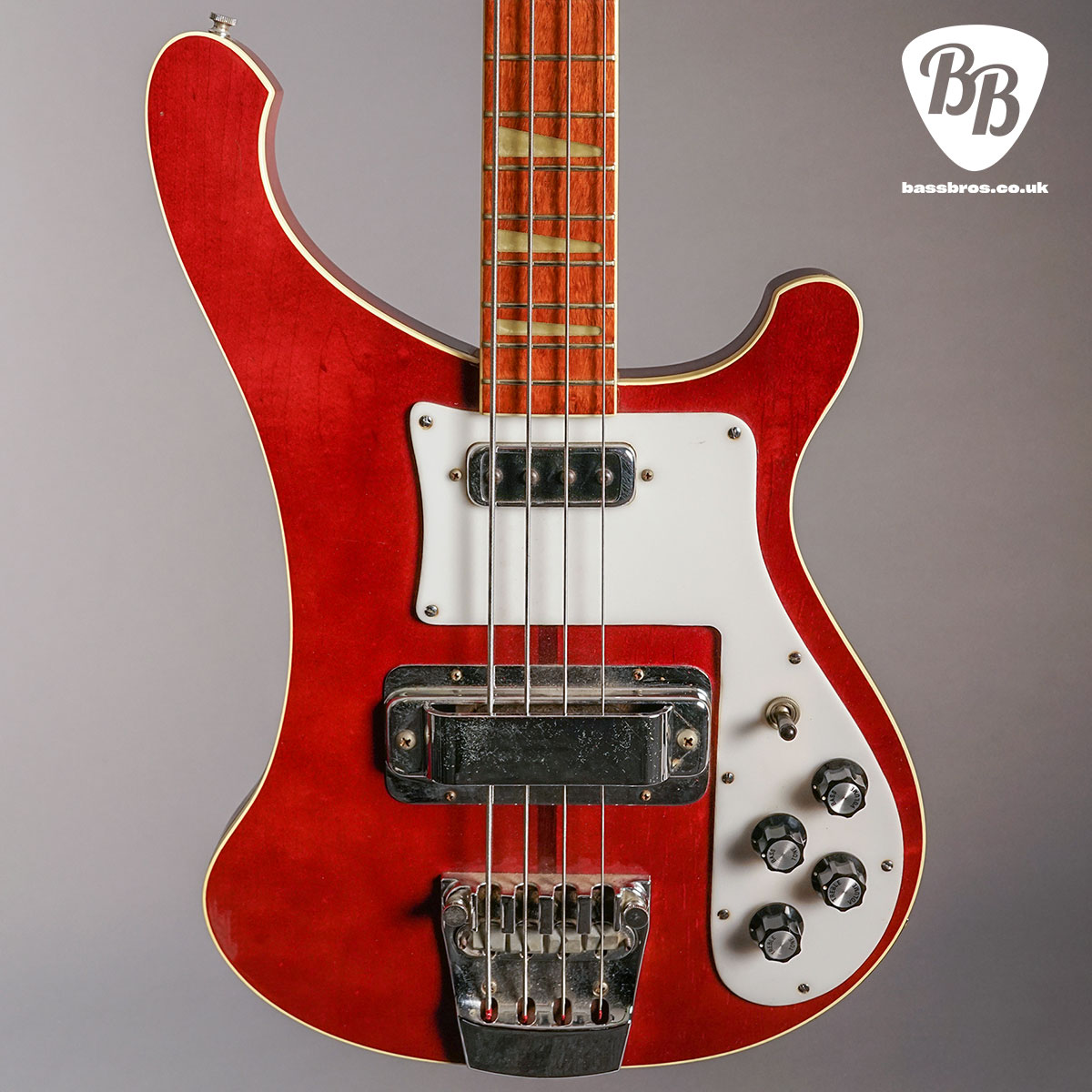 Here is a stunning bass, in a stunning colour! This 1975 4001 in Burgundyglo finish is a rare thing…