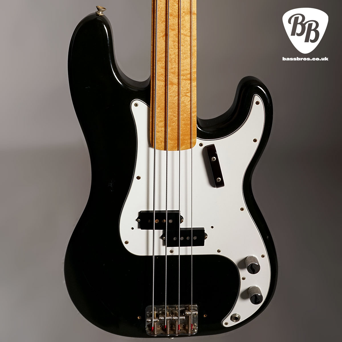 This 1972 Precision Bass Fretless in custom colour black plays unbelievably well and sounds the…