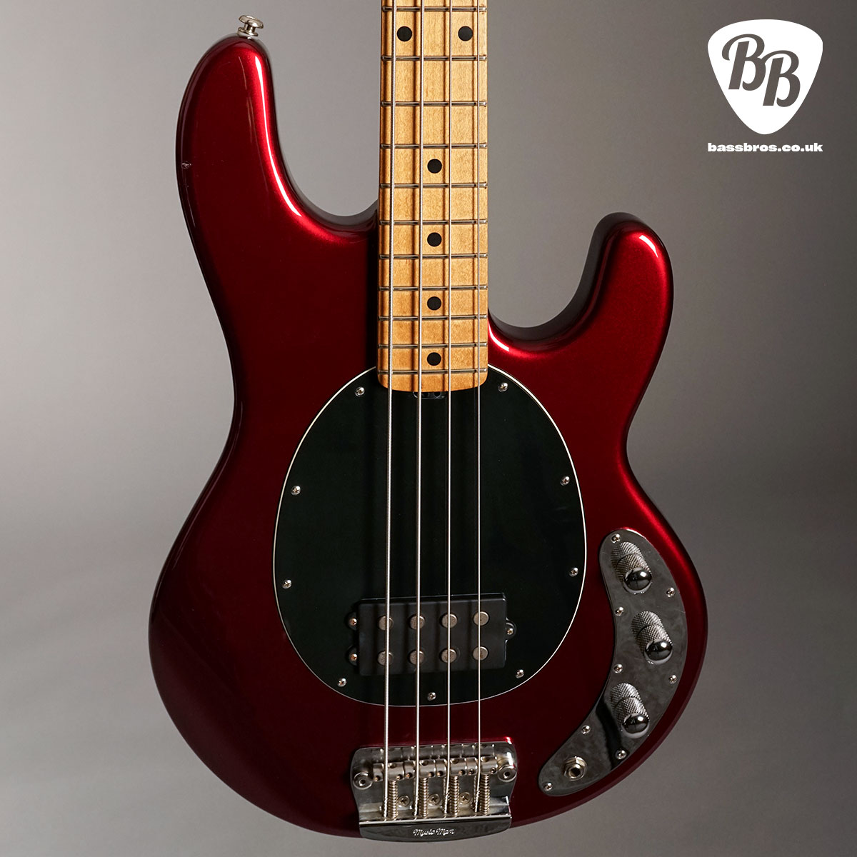 Here we have a very nice trans red Ernie Ball Music Man Stingray 4H 2EQ from 1993. The bass is in…