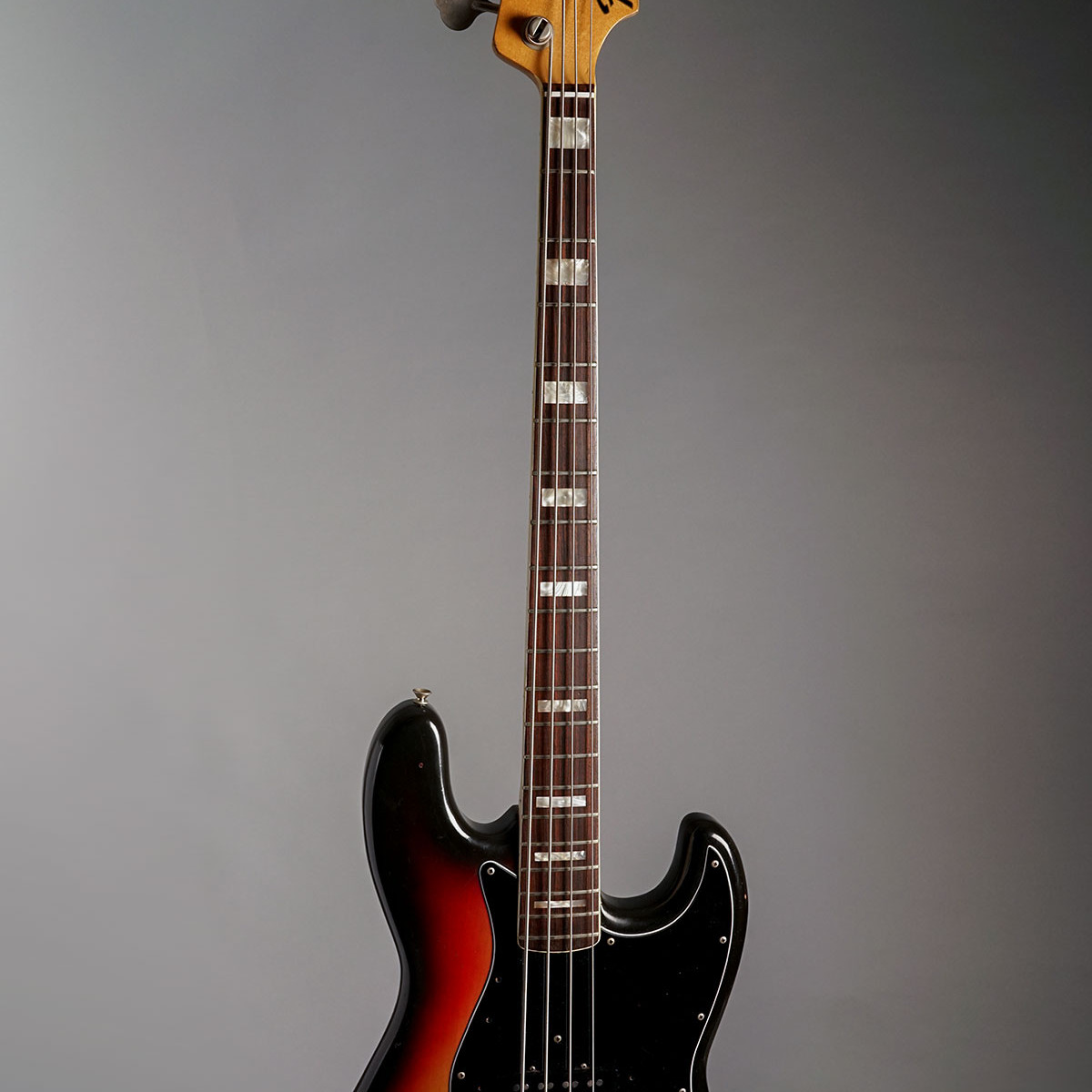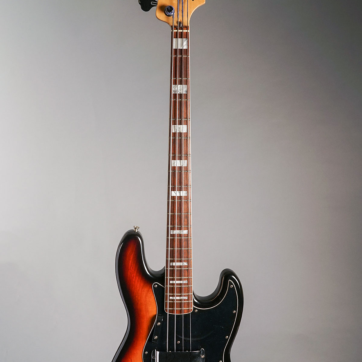 This fantastic early 75 Reissue Jazz Bass really nails the 70's vibe with the white pearl block…
