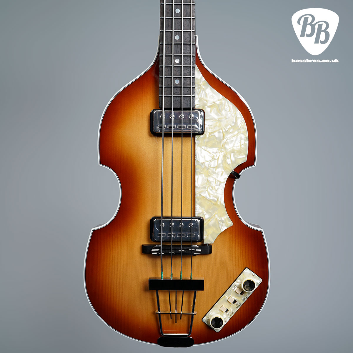 One of the earliest Precision Basses we have had through our doors at BassBros! This being a fantastic sounding and looking example. It plays beautifully with a low action! This one dates from 1963. It has had a full body and neck refinish including a new decal which is period correct. There are a few small marks to the finish of the body. The neck is stamped 63-C, but the refinish has made it very difficult to read, but can still be seen in certain light. Original potentiometers date to 1962 also. Serial number on the neck plate dates to 1963. Pickups are original as well as original celluloid 3 ply pickguard and shielding guard. Some of the pickguard screws have been replaced. The original pickup covers are included in the case, but the case is not original. We have more photos we can provide of the innards, etc so please get in touch for any more info/photos.
