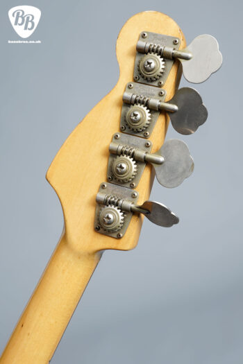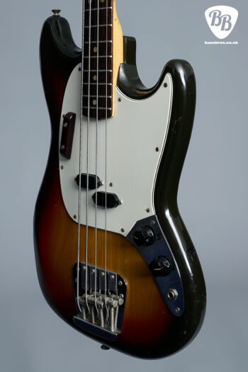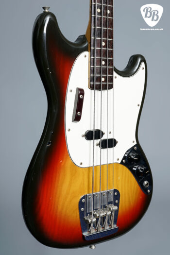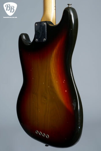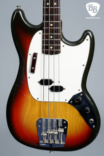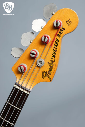 If you’re looking for a lightweight short scale bass with some mojo then look no further. This fantastic 1975 Fender Mustang sounds and looks the part whilst being very comfortable to play. It is in very good overall condition for its age with some dings throughout, it’s been played but not abused! Both pots date to 1975. We have given the bass a full check over and the trussrod and electronics all work perfectly. Included is a hardcase.