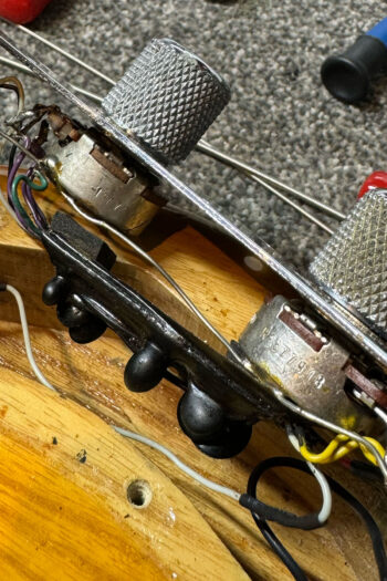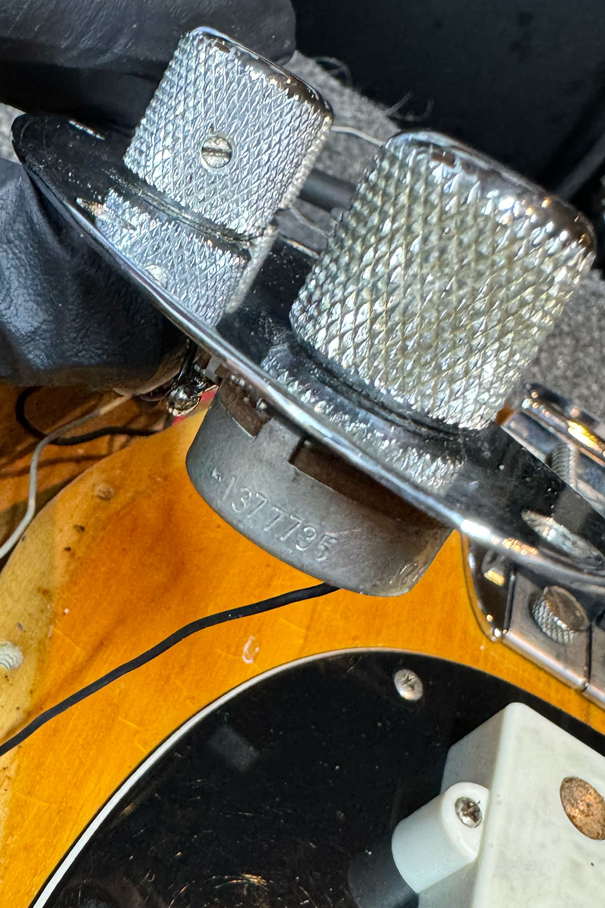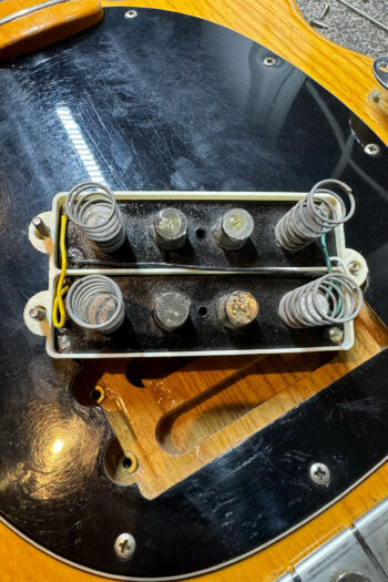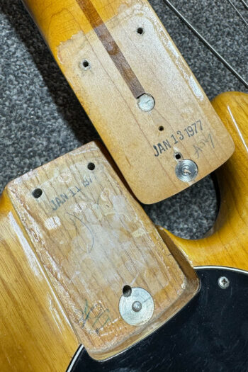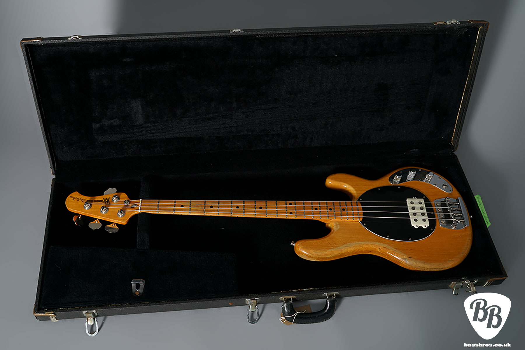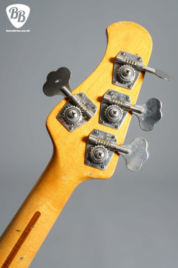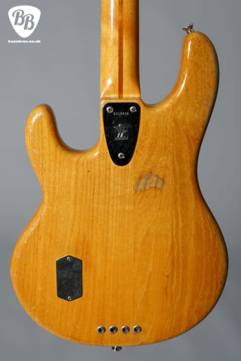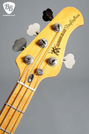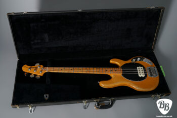 The holy grail of Pre Ernie Ball Ernie Ball Musicman Stingray basses! This is a vert rare opportunity to own an early Stingray with the original white pickup cover, this one from early 1977. This is in the stunning bass with the rare white pickup cover and longer pole pieces. The body dates to early 1977, as well as the neck. Two of the pots date to 1977 and one has been replaced with a 1979 pot which is quite likely to have happened back in 1979. There are some signs of wear, such as some matting in the finish, and checking throughout. There is also a small ding on the back of the neck at the 2nd fret, but for its age it is in very good condition. It has also had a refret at some point with larger frets. Everything is in good working order including the electronics and the trussrod. Included is a hardcase.