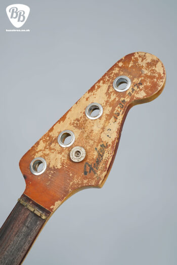 1978 Fender Precision Bass fretless neck with rosewood fretboard. In working condition with heavy age wear to the headstock and some missing finish, a ding on the back of the neck.