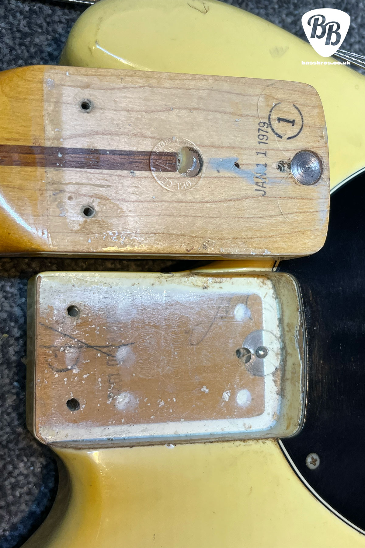 Here we have a sweet Pre Ernie Ball Music Man Stingray from 1979, all original. Body stamped 1978 and neck stamped 1979. The pots are dated 1978. This bass sounds absolutely amazing. There are plenty signs of play wear, throughout the instrument, lots of wear to finish and small dings to the back of the neck but for its age it is in good shape and plays very well with a good action. Everything is in good working order including the electronics and the trussrod.