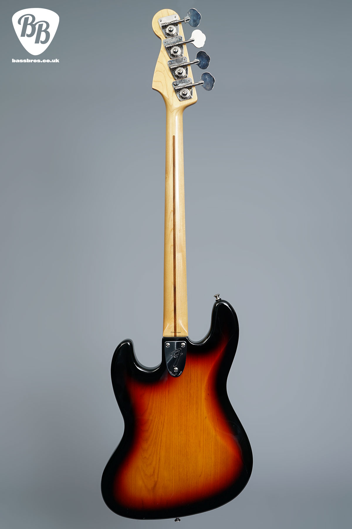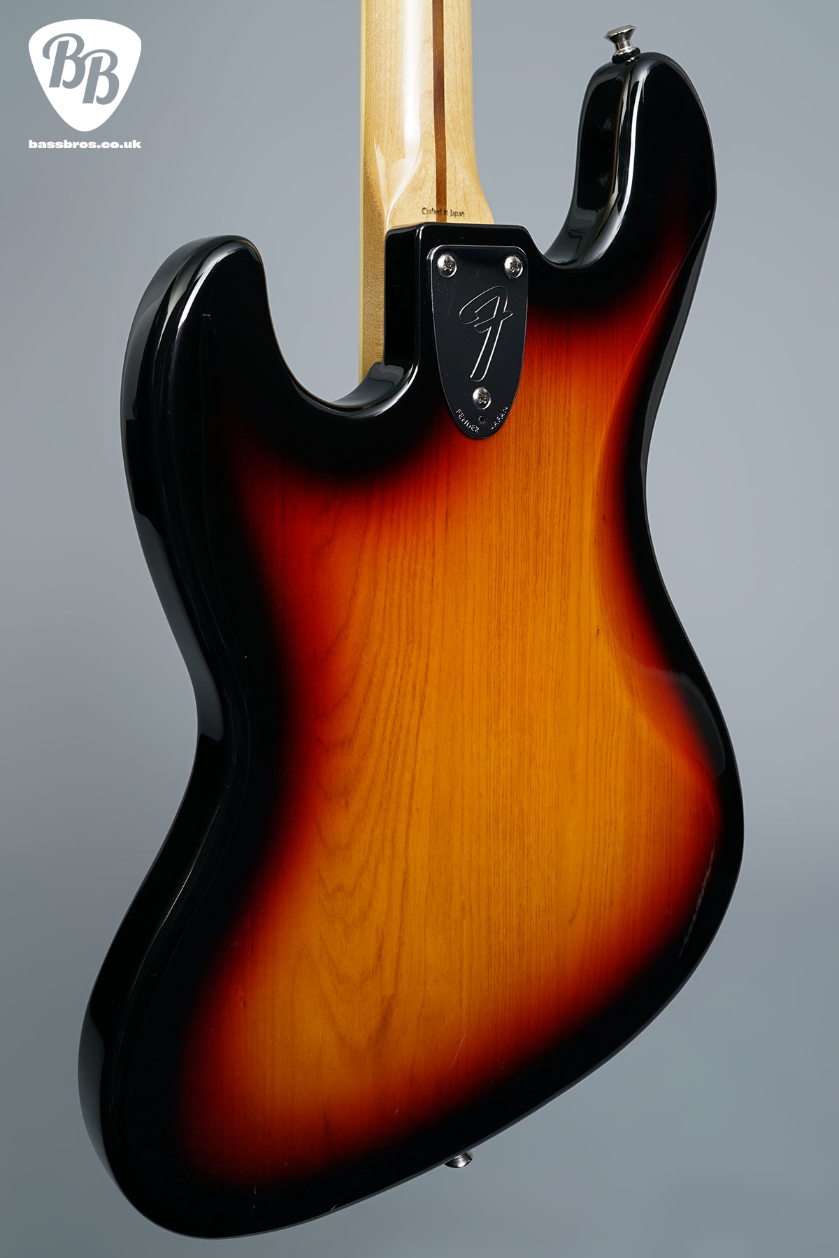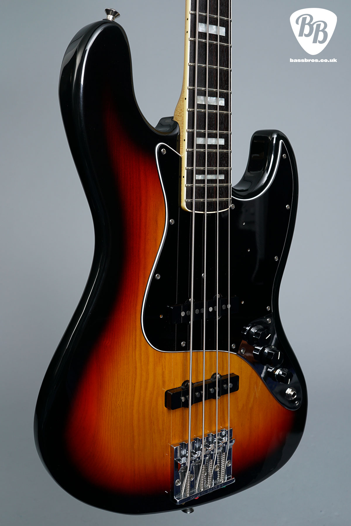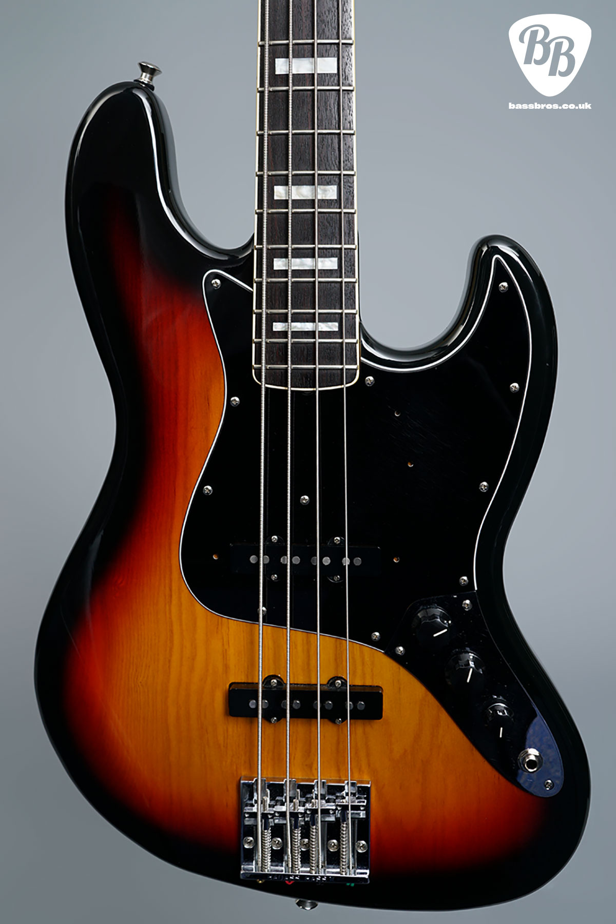 These are superb basses! This being a fantastic ’70s reissue Jazz Bass with added build quality from the Japanese!! This one finished in sunburst with an awesome wood grain, and check out that super dark rosewood board. This would make a great gigging bass and attention detail is second to none as you would expect from a Japanese made bass. It is in very good condition for its age, with some wear throughout. The bridge has been upgraded to a badass bridge, and there is some visible wear to the pickguard from being played with a pick. The rest of the bass is in great shape.We have fully checked over the bass and everything is working perfectly as it should. Included is a gigbag.