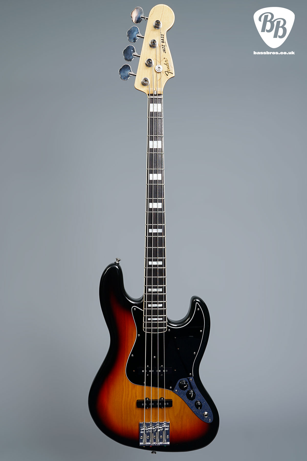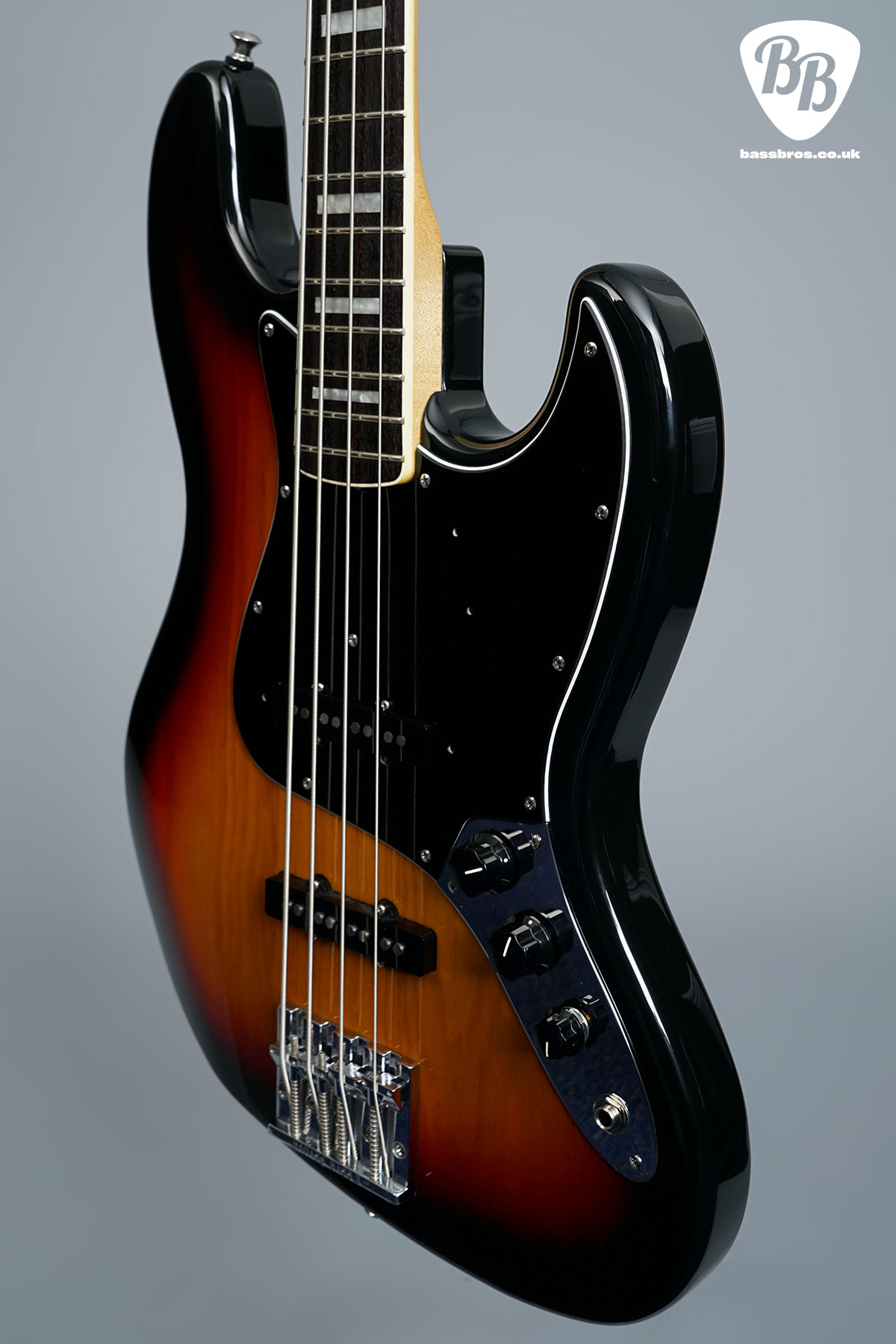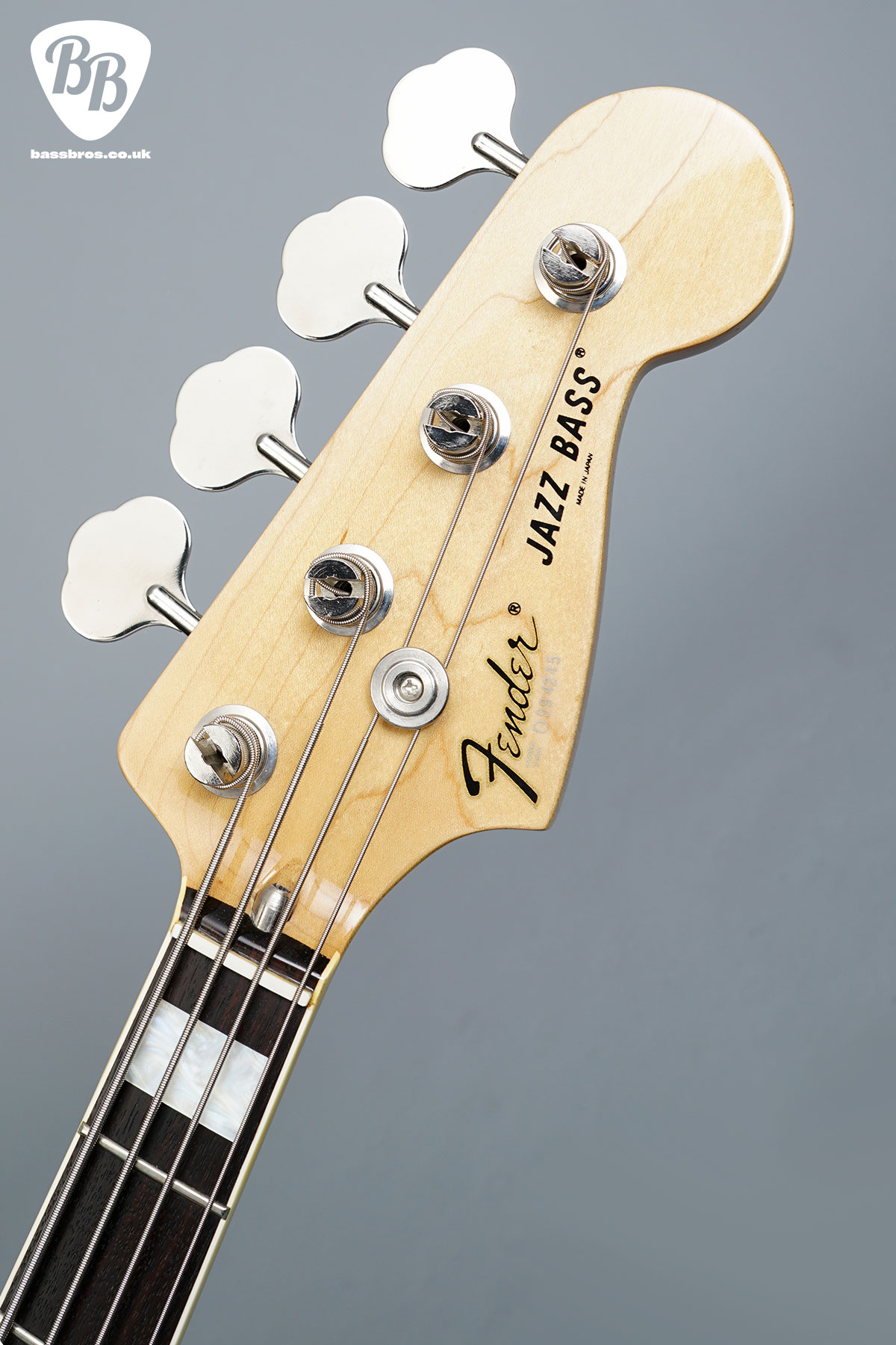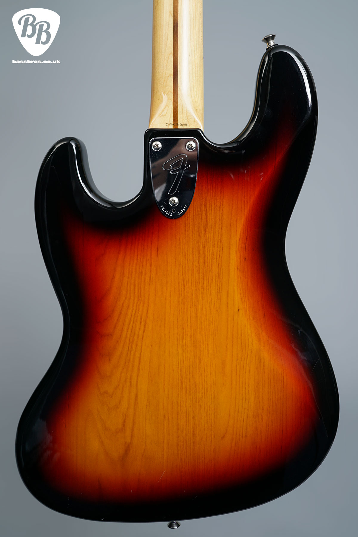These are superb basses! This being a fantastic ’70s reissue Jazz Bass with added build quality from the Japanese!! This one finished in sunburst with an awesome wood grain, and check out that super dark rosewood board. This would make a great gigging bass and attention detail is second to none as you would expect from a Japanese made bass. It is in very good condition for its age, with some wear throughout. The bridge has been upgraded to a badass bridge, and there is some visible wear to the pickguard from being played with a pick. The rest of the bass is in great shape.We have fully checked over the bass and everything is working perfectly as it should. Included is a gigbag.