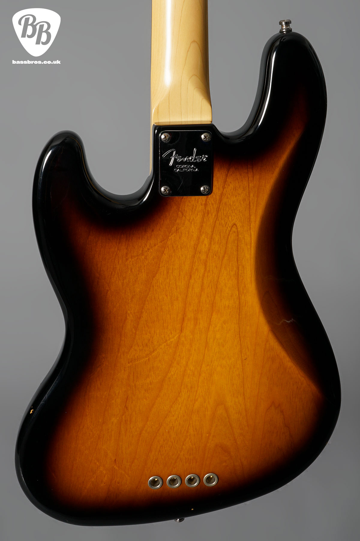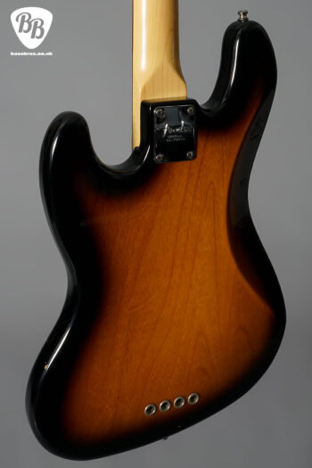 A classic 2002 American Standard Jazz bass in two tone sunburst finish. Classic Jazz tones with a modernised feel! It is in excellent condition with only a few small marks throughout. We have given the bass a full health check including checking trussrod, electronics, etc. Everything works perfectly as it should. Included is the original hard case.