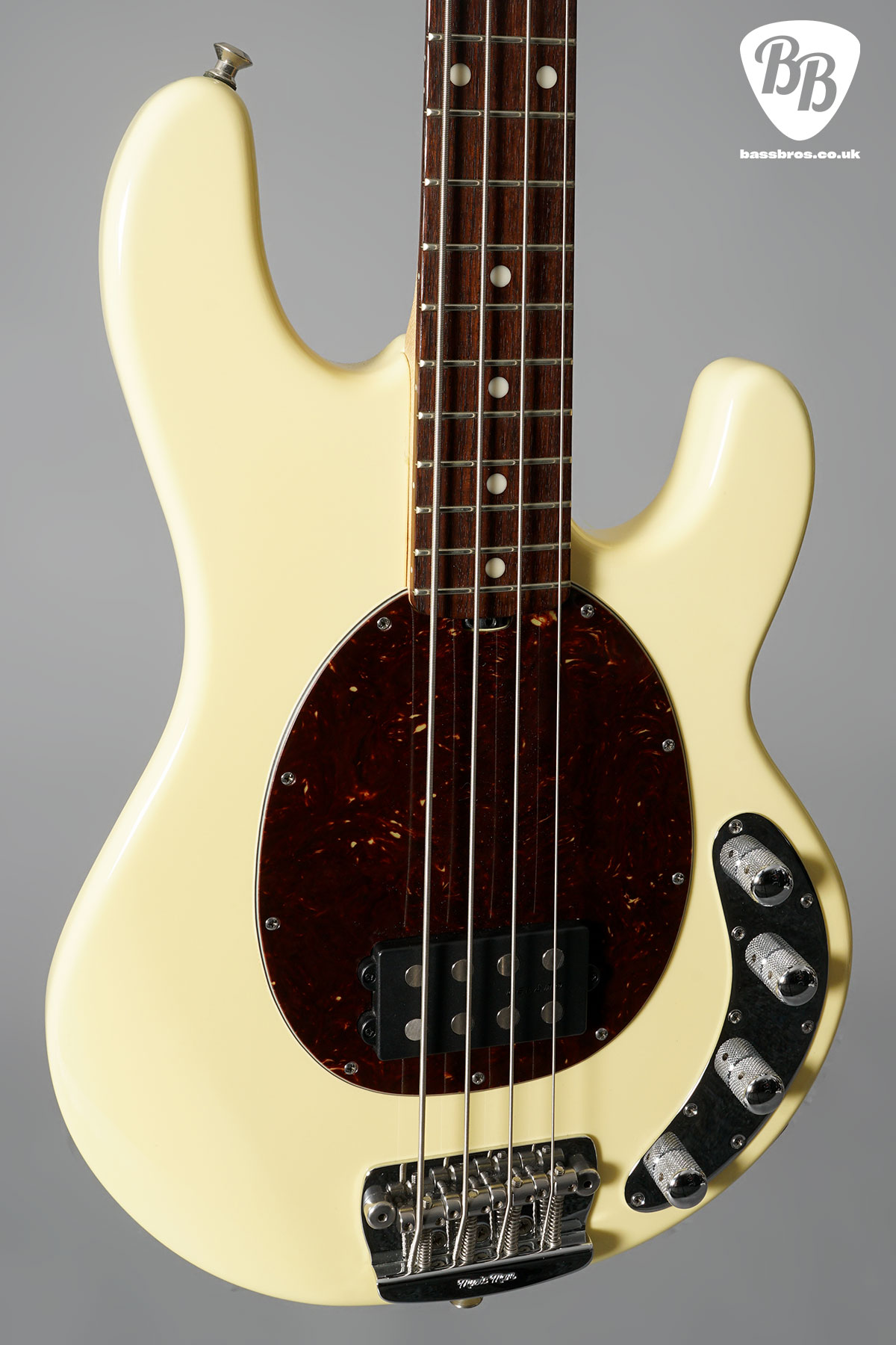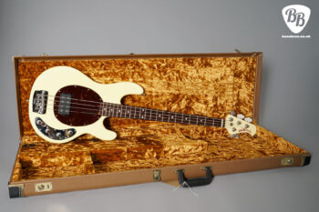 Here we have an Ernie Ball Musicman Stingray Ltd Ed 3EQ from 2005. This is in the wonderful buttercream finish! This bass is in excellent condition for its age with little signs of wear. This one has been fitted with a Delano pickup and Aguilar OBP-3 preamp which sounds amazing! Everything is in good working order including the electronics and the trussrod. Included is the original ltd ed hardcase.
