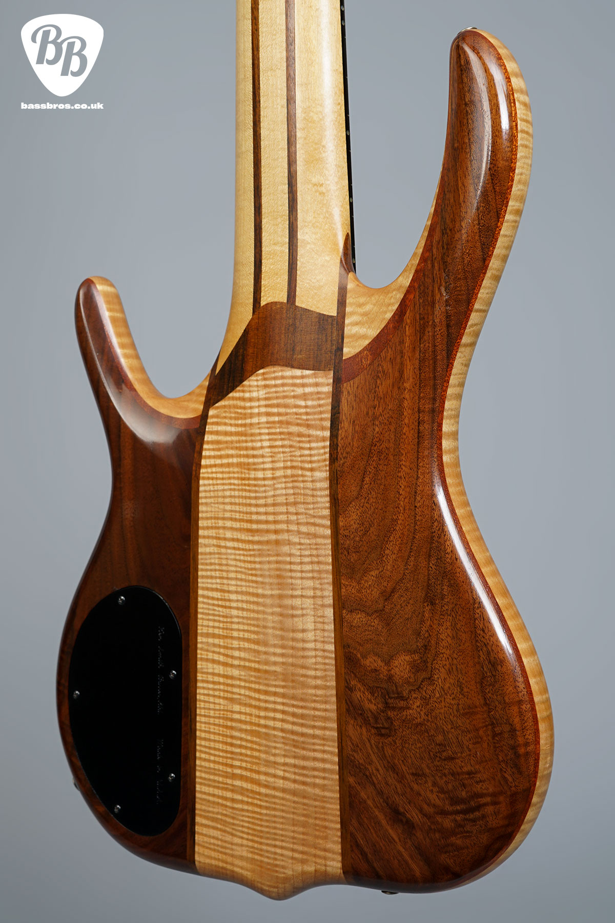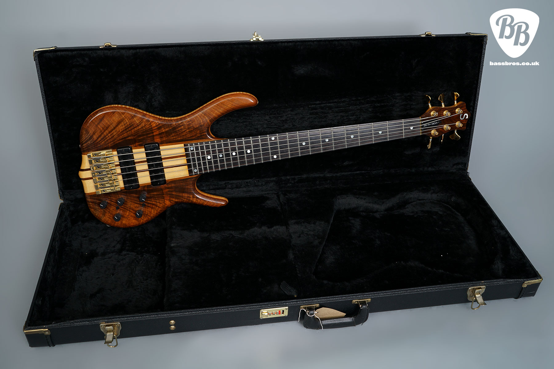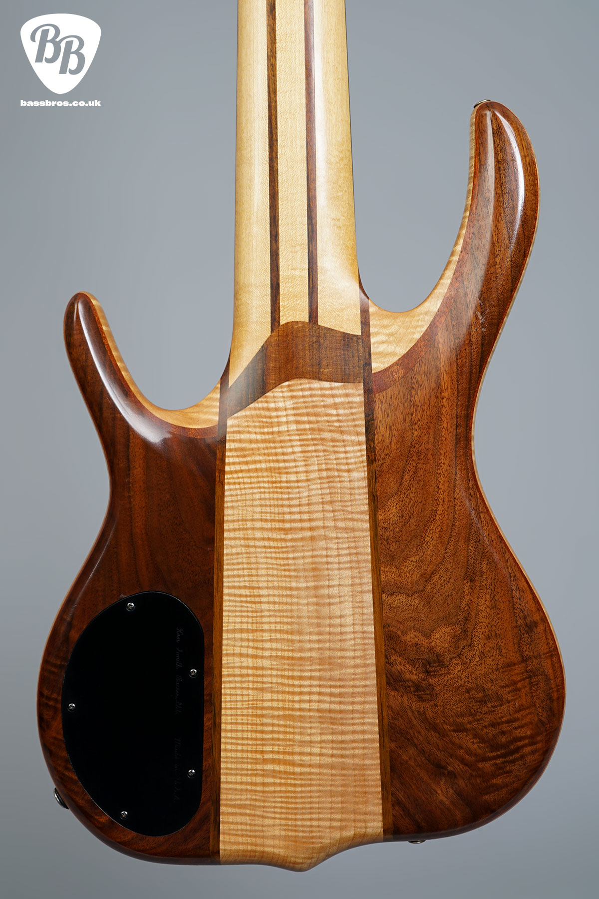 What a stunner! 2011 Ken Smith BSR6-TNE with beautiful claro walnut facings! This is a great opportunity to get hold of one of these basses on the secondhand market which rarely come up! This bass is in excellent condition, with only small marks to finish on either side of headstock from being in a stand, small ding and graze to back of body on top horn, small mark to finish on back of body in the middle. Everything is in good working order including the electronics and the trussrod. Included is the original hardcase.