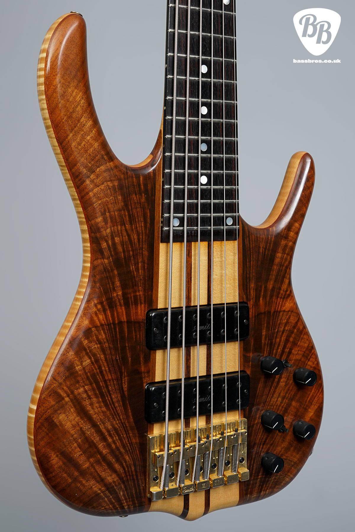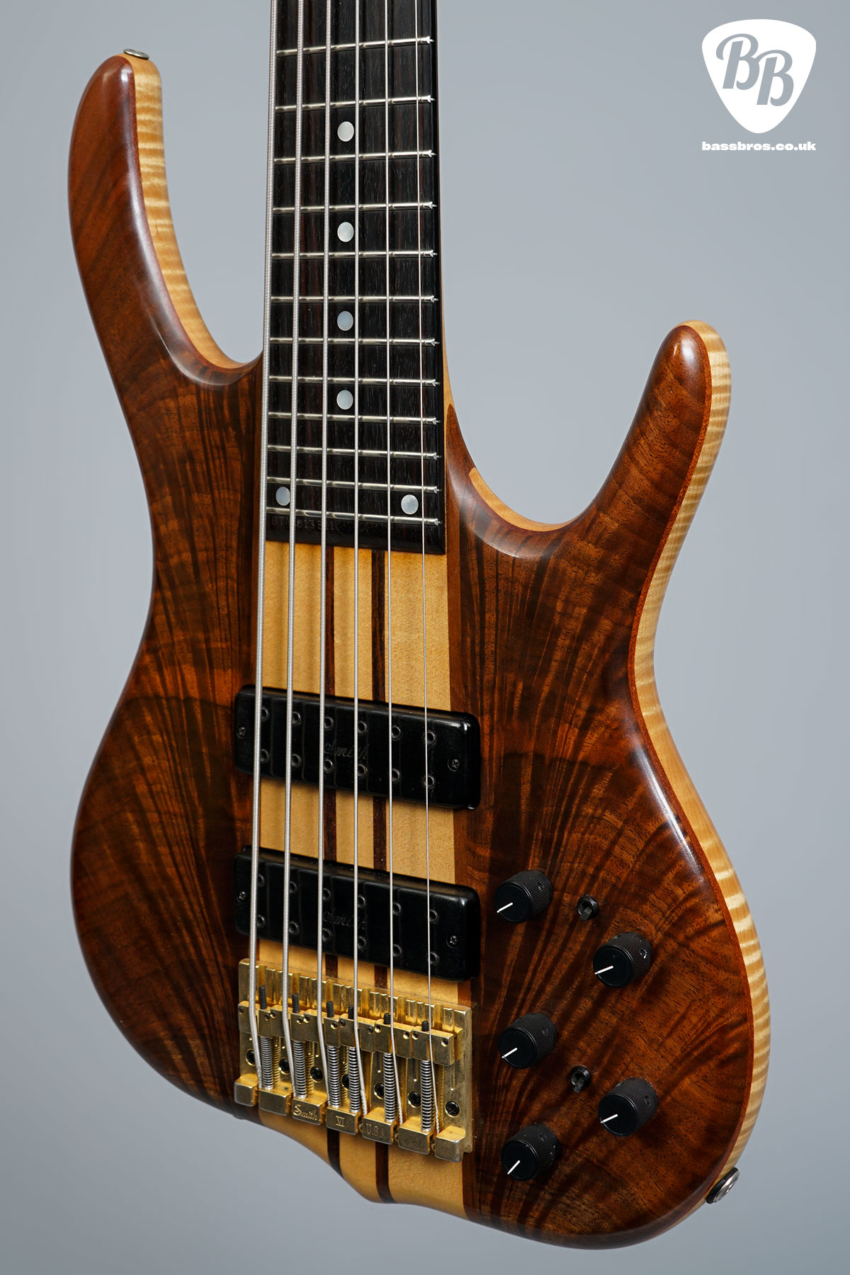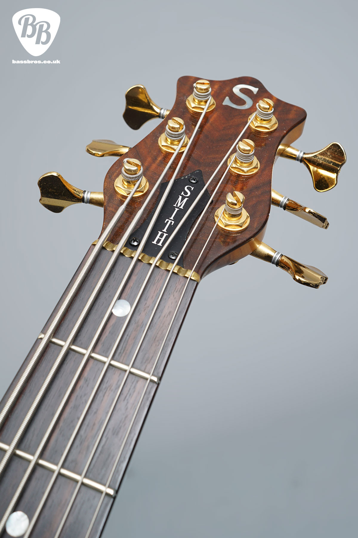 What a stunner! 2011 Ken Smith BSR6-TNE with beautiful claro walnut facings! This is a great opportunity to get hold of one of these basses on the secondhand market which rarely come up! This bass is in excellent condition, with only small marks to finish on either side of headstock from being in a stand, small ding and graze to back of body on top horn, small mark to finish on back of body in the middle. Everything is in good working order including the electronics and the trussrod. Included is the original hardcase.