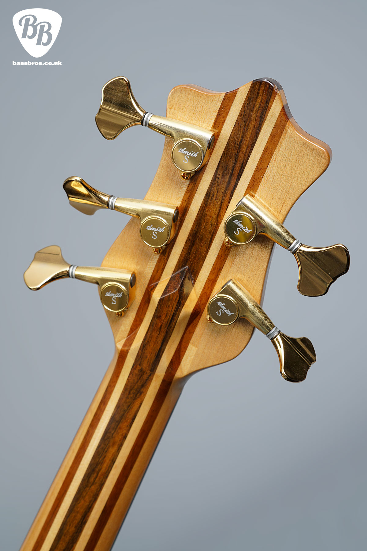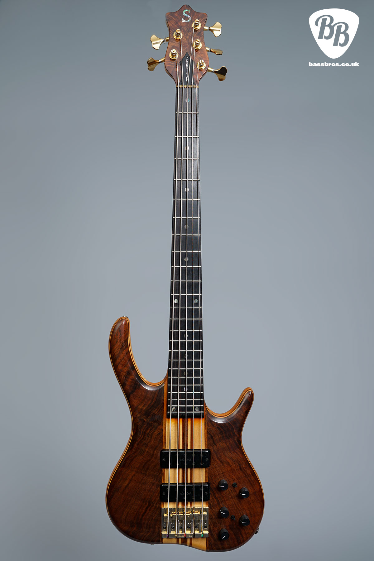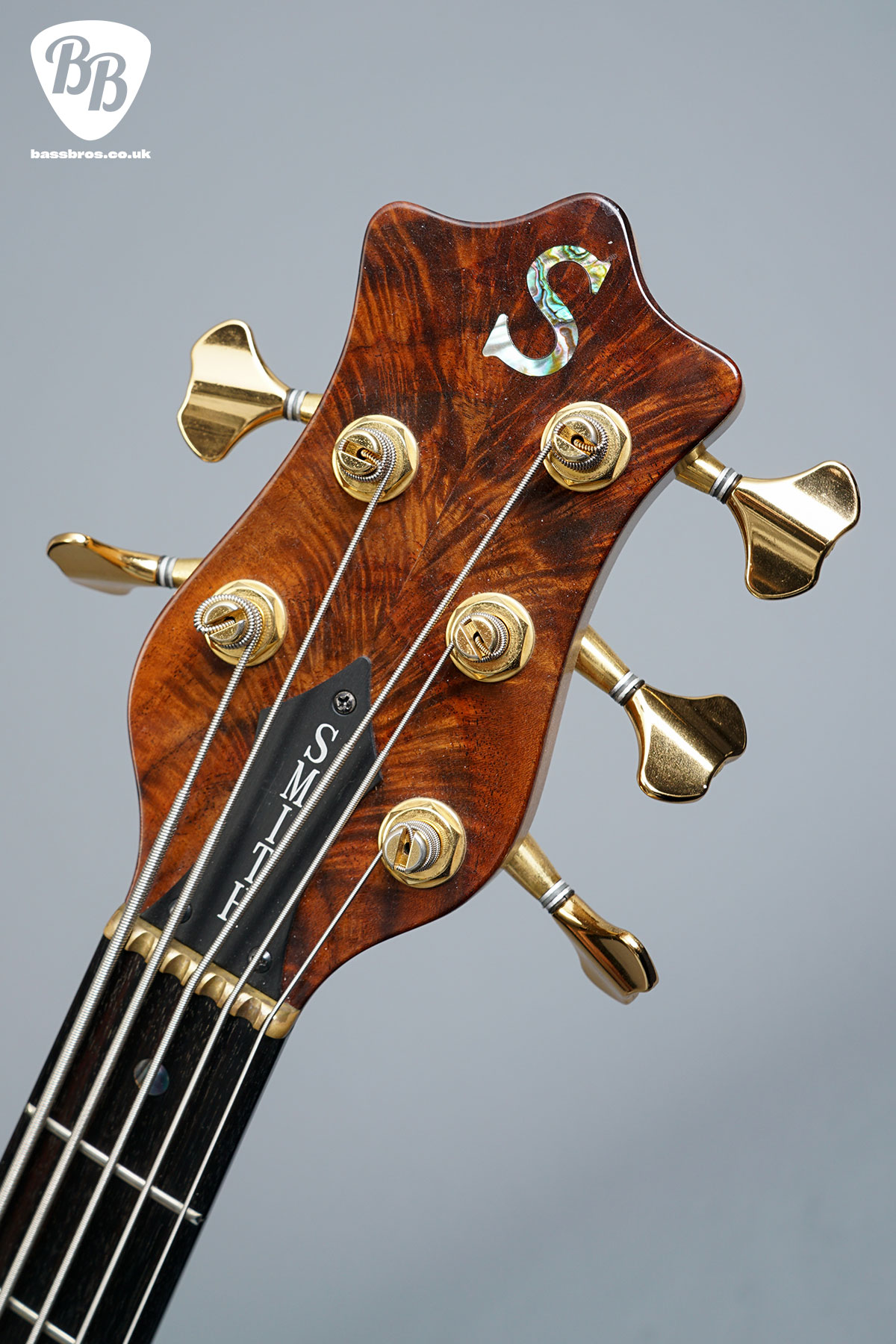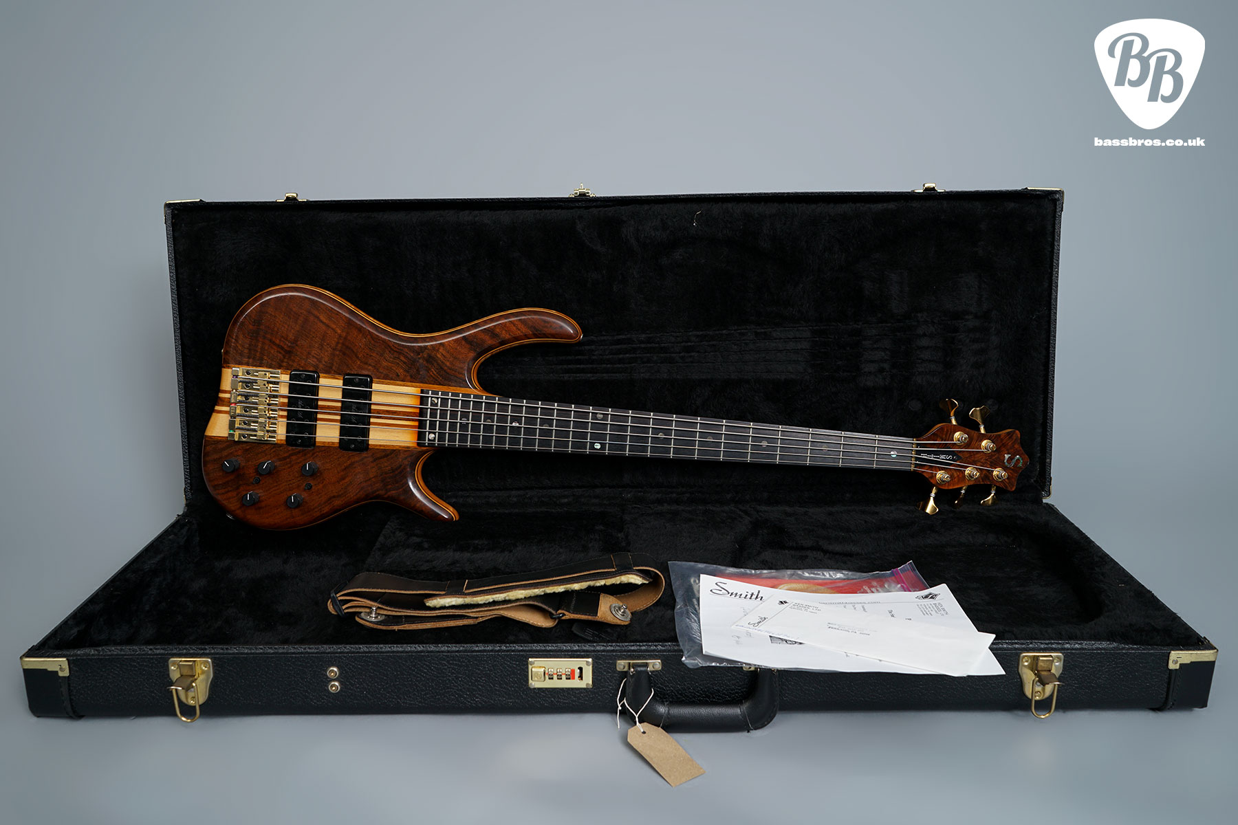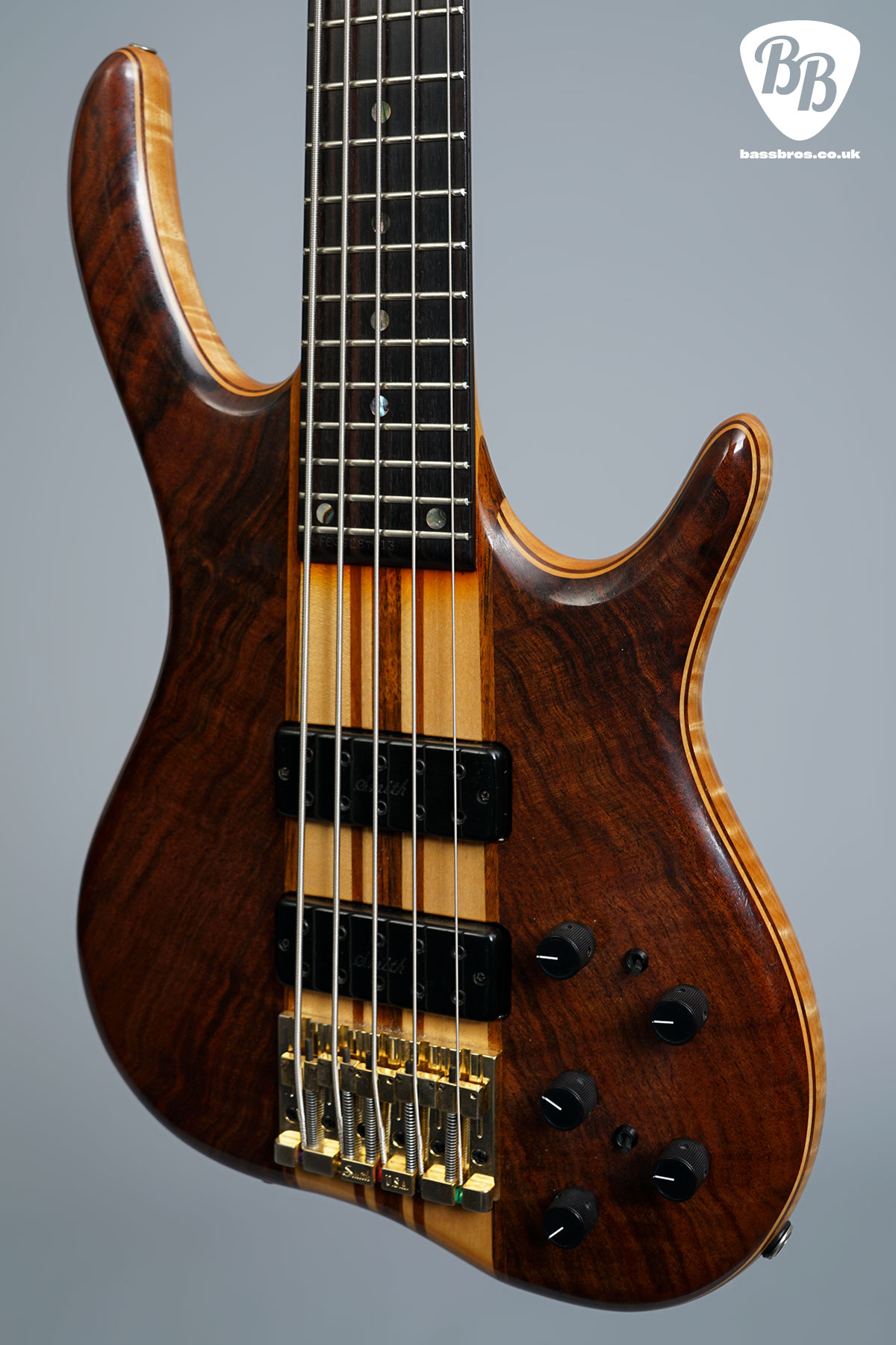 Here we have a stunning 2013 Ken Smith BSR5 Elite 7/7 with beautiful Crotch Walnut facings! This is a great opportunity to get hold of one of these basses on the secondhand market which rarely come up! These basses feature a 7 piece maple and bubinga neck, and 7 piece maple and walnut body. This one is in excellent condition with some tiny marks and signs of use, and a tiny spot of lacquer peel on the back of the neck on the 6th fret, but it is not very noticeable. The oiled finish has slightly glossed up after years of use. Everything is in good working order including the electronics and the trussrod. Included is the original hardcase.