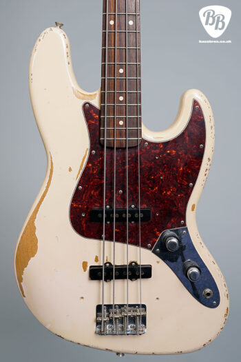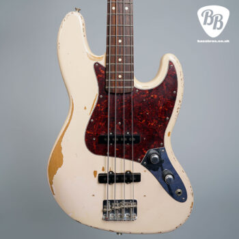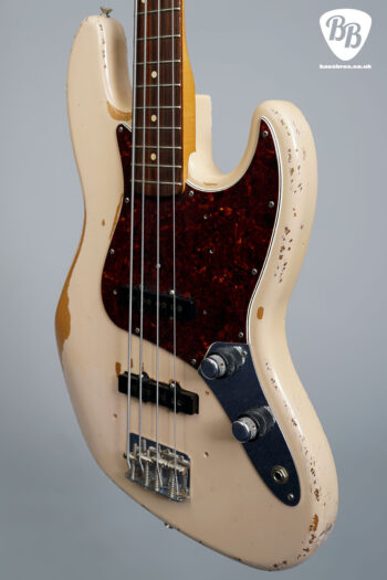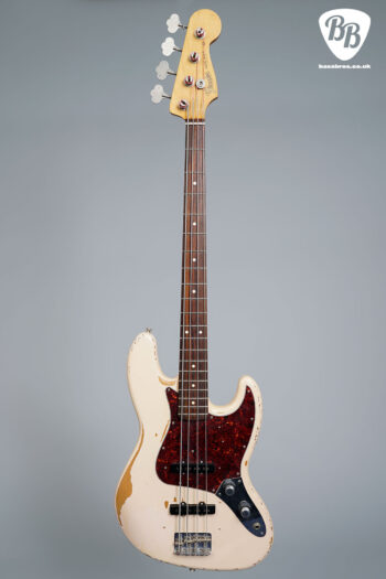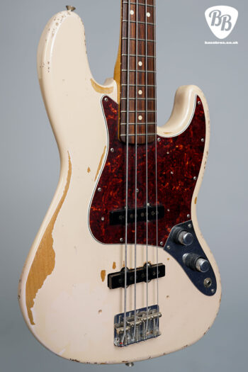 What classic yet stunning jazz bass! Shell pink, rosewood fretboard with tortoiseshell pickguard! This is a fantastic, traditional sounding jazz bass with a sweet fast neck! The bass is in as new condition (ignoring the ‘roadworn’ bit from Fender!) we have checked the electronics and trussrod and everything works exactly as it should. Included is a gigbag.