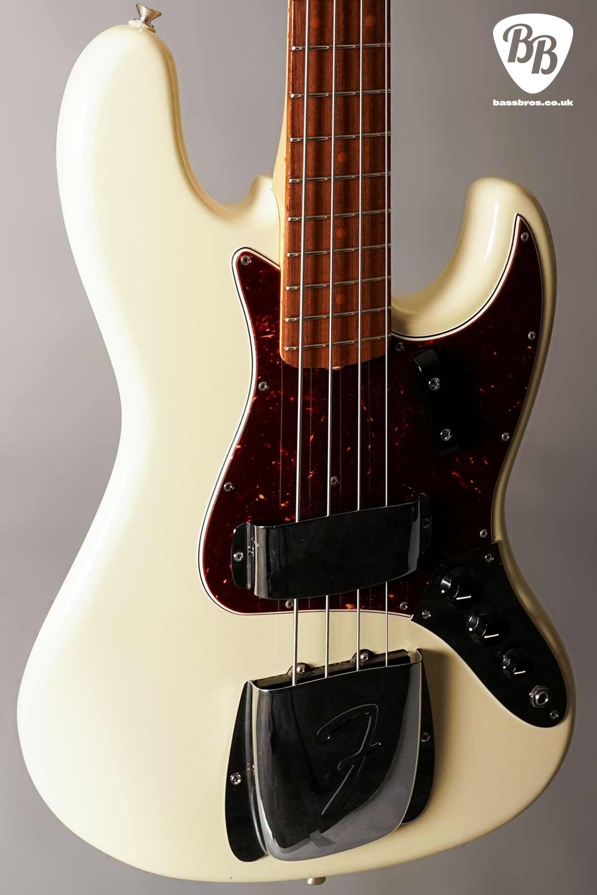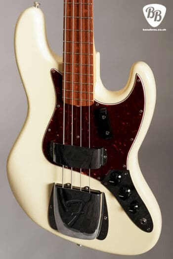 Here we have a Fender American Original ’60s Jazz Bass in the Olympic White with the Tortoise shell pickguard. This bass is in great condition with some marks on the body and some of the usual marks around the pickup cover screw holes. This is a real beauty! Included is the original hardcase, etc.