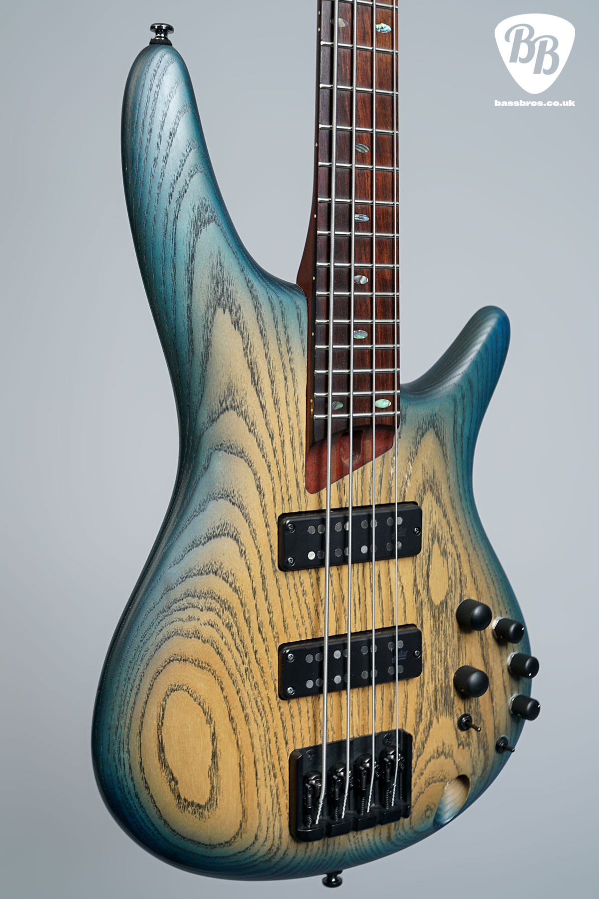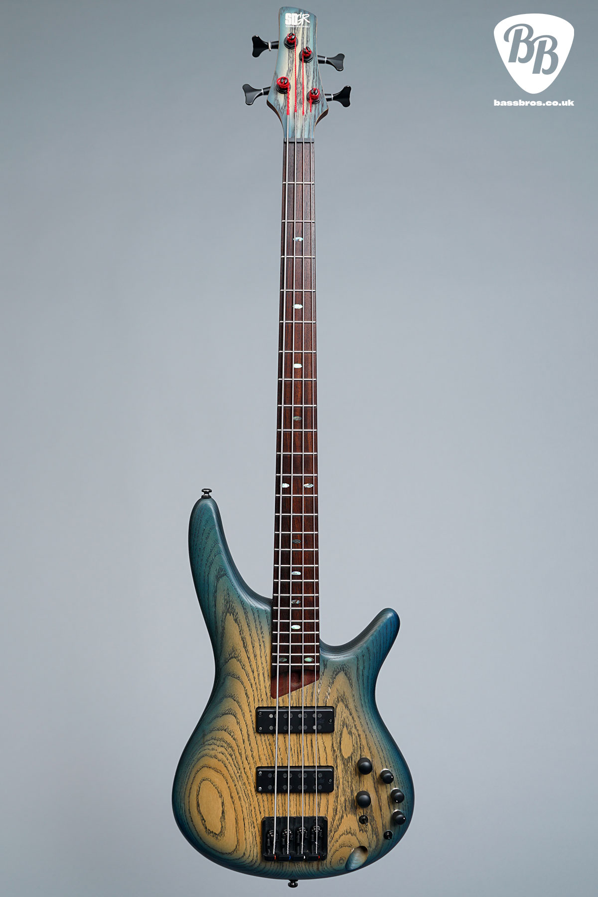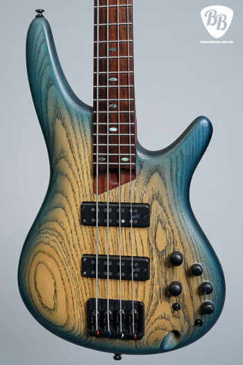 The SR600E features a double-cutaway ash body bolted to a jatoba and walnut neck with a 24-fret rosewood fingerboard with abalone oval position markers. Components include a pair of Nordstrand Big Break passive pickups channeled through an Ibanez custom preamp with a bypassable three-band EQ, an Accu-cast bridge with 19mm string spacing, a plastic nut, and Ibanez tuning machines. The bass is in very god overall condition, with some small marks throughout. The preamp has been changed to an Aguilar OBP3, and the original is included. We have given the bass a full checkover and everything is working correctly including trussrod, electronics.