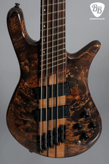 The NS Dimension Series reimagines Spector’s iconic design with multi-scale construction and offers players a new level of playability and tonality. In addition to the multi-scale, neck-thru construction, NS Dimension models also feature a variety of premium tonewoods and cutting-edge Fishman Fluence electronics. The fully curved body is carved from lightweight Swamp Ash and features a highly figured Poplar Burl top. The 5-piece neck is constructed from Maple and Wenge for enhanced stability and eye-catching looks. The 24 fret Wenge fingerboard also features illuminating side dots, allowing players to expertly navigate the fingerboard. We have given the bass a full check over and everything works perfectly as it should, including trussrod/electronics.