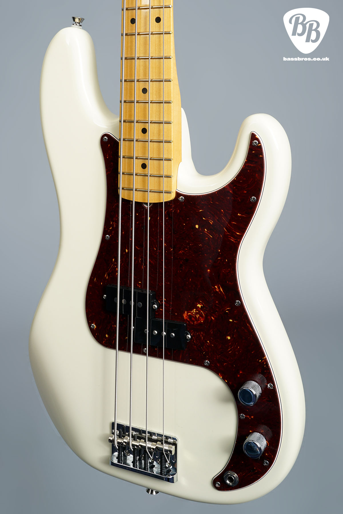 This fantastic 2023 Fender American Professional II Precision Bass in olympic white with a maple fingerboard, has that all important iconic Precision bass tone but with satin neck, uprated hardware, etc. It is in excellent condition with very little sign of wear. We have given the bass a full health check including checking trussrod, electronics, etc. Everything works perfectly as it should. Included is the original hard case.