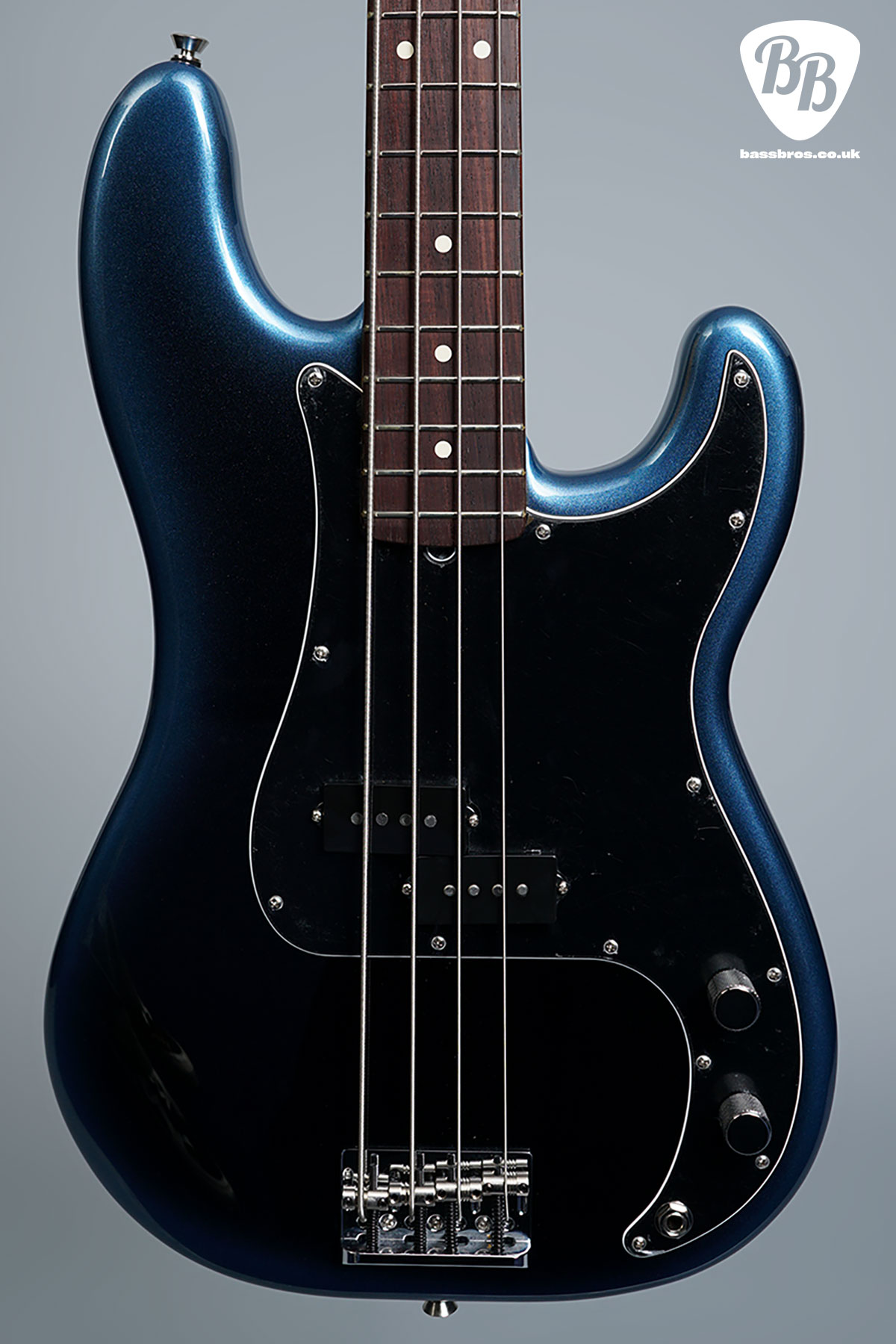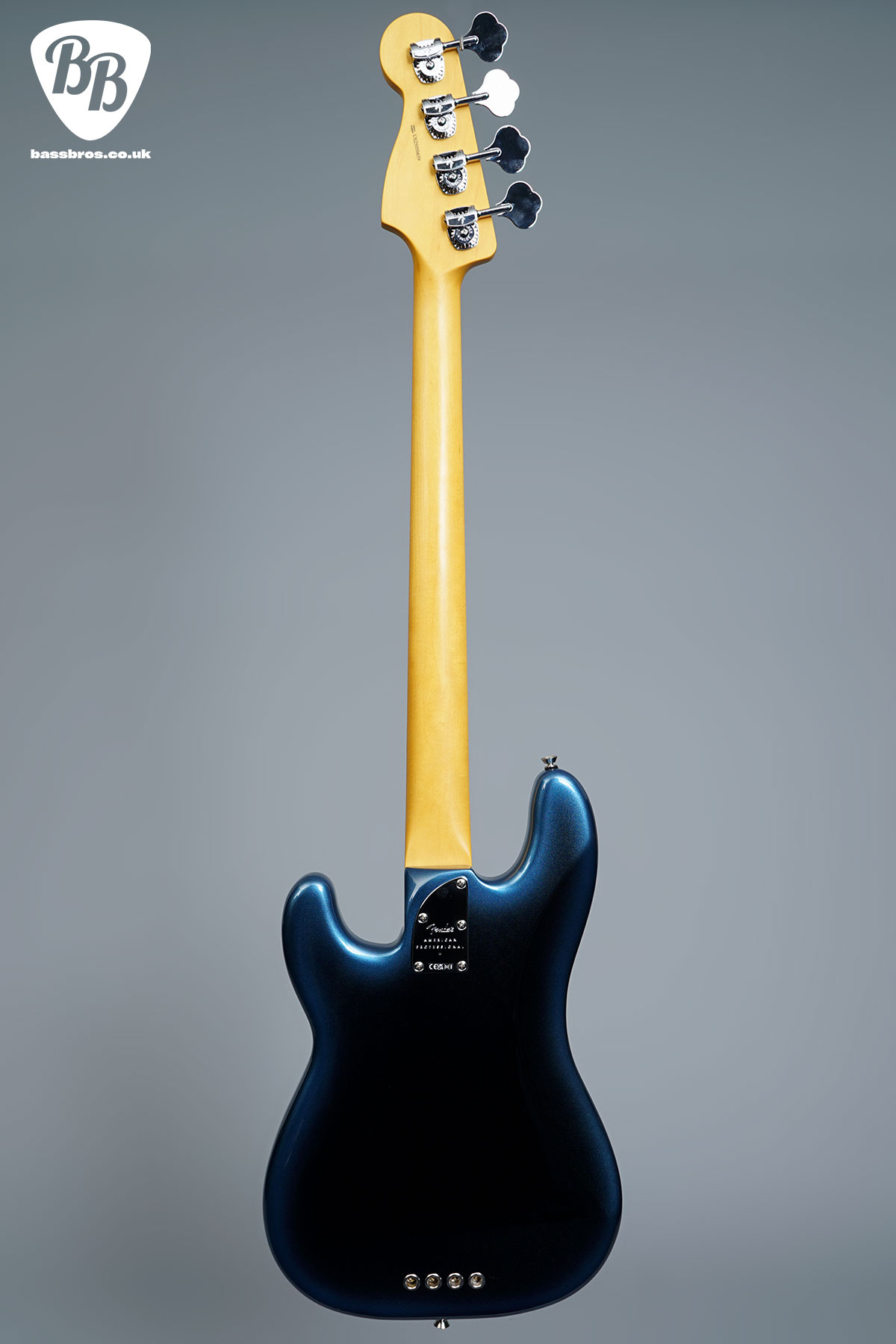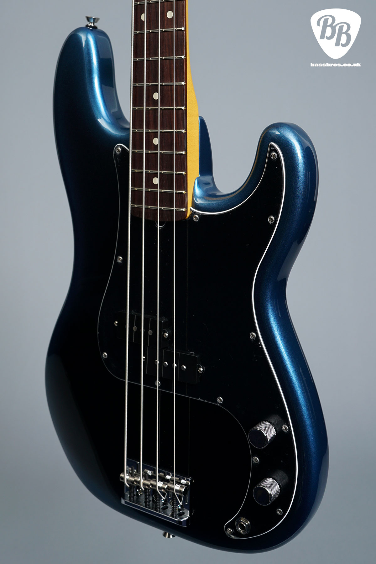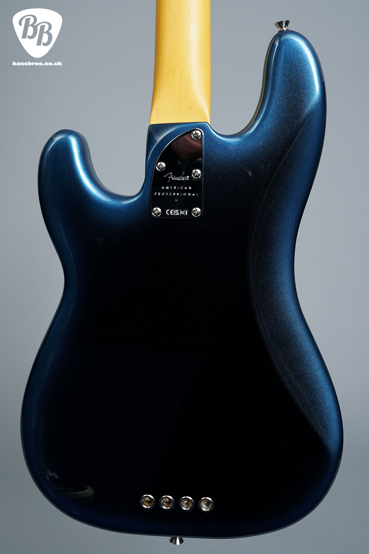 This fantastic 2025 Fender American Professional II Precision Bass in dark night finish with a rosewood fingerboard, has that all important iconic Precision bass tone but with satin neck, uprated hardware, etc. It is in excellent condition with very little sign of wear. We have given the bass a full health check including checking trussrod, electronics, etc. Everything works perfectly as it should. Included is the original hard case.
