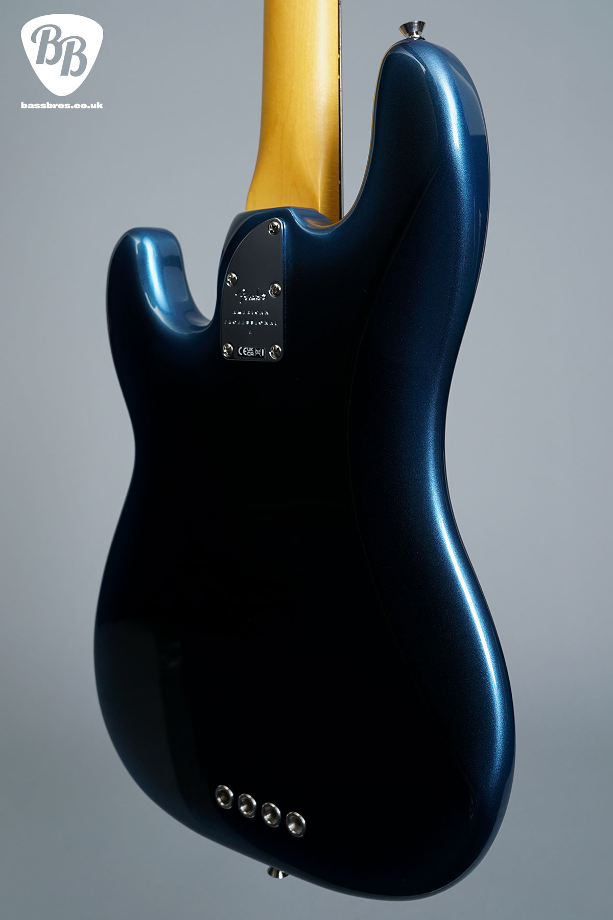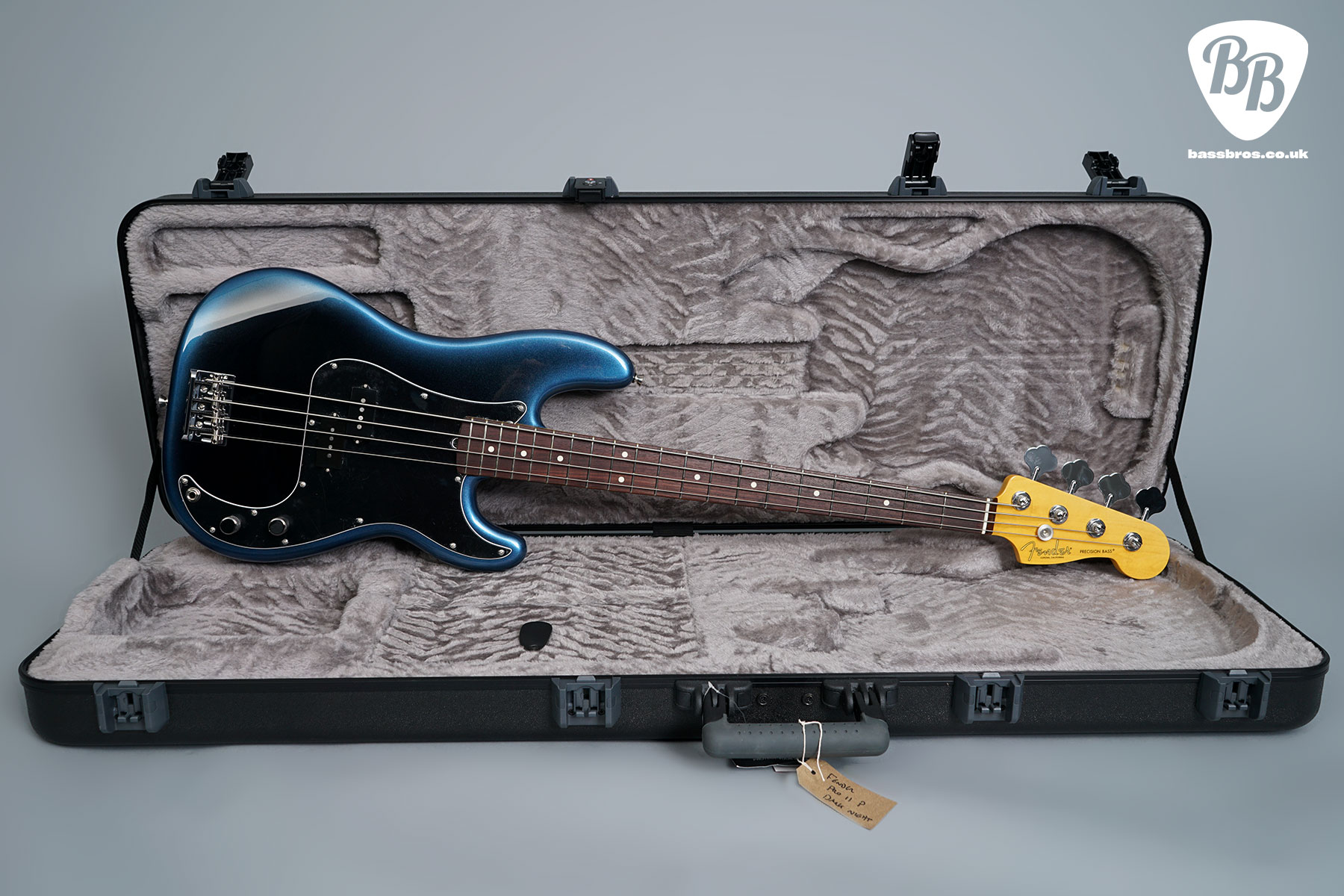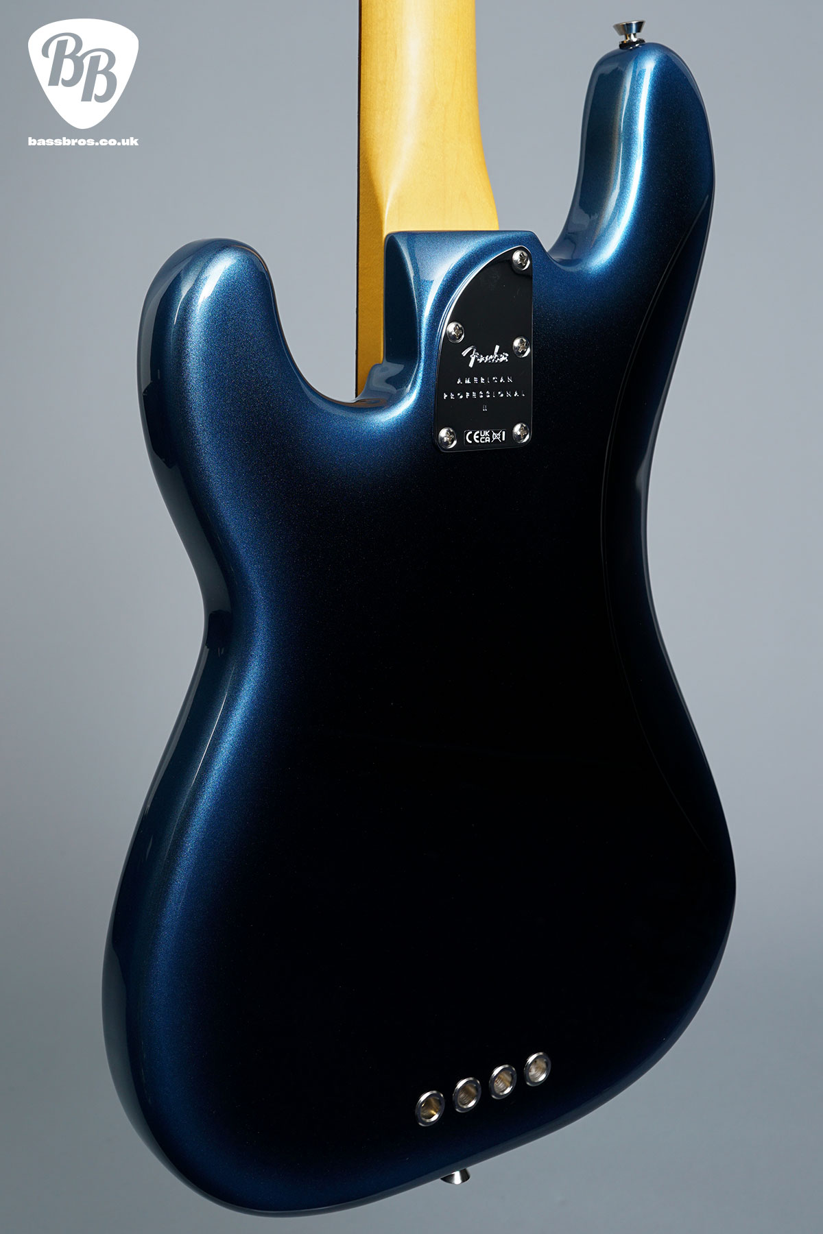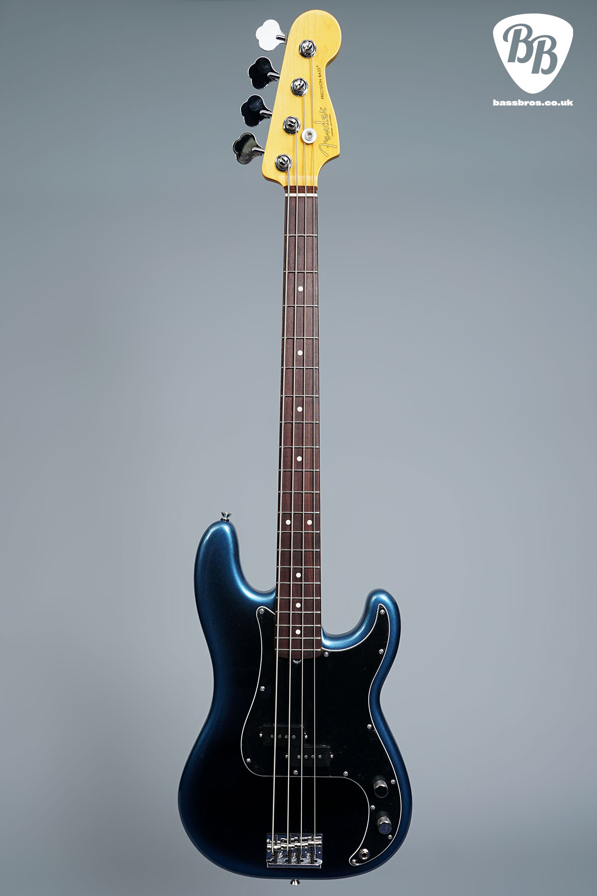 This fantastic 2025 Fender American Professional II Precision Bass in dark night finish with a rosewood fingerboard, has that all important iconic Precision bass tone but with satin neck, uprated hardware, etc. It is in excellent condition with very little sign of wear. We have given the bass a full health check including checking trussrod, electronics, etc. Everything works perfectly as it should. Included is the original hard case.