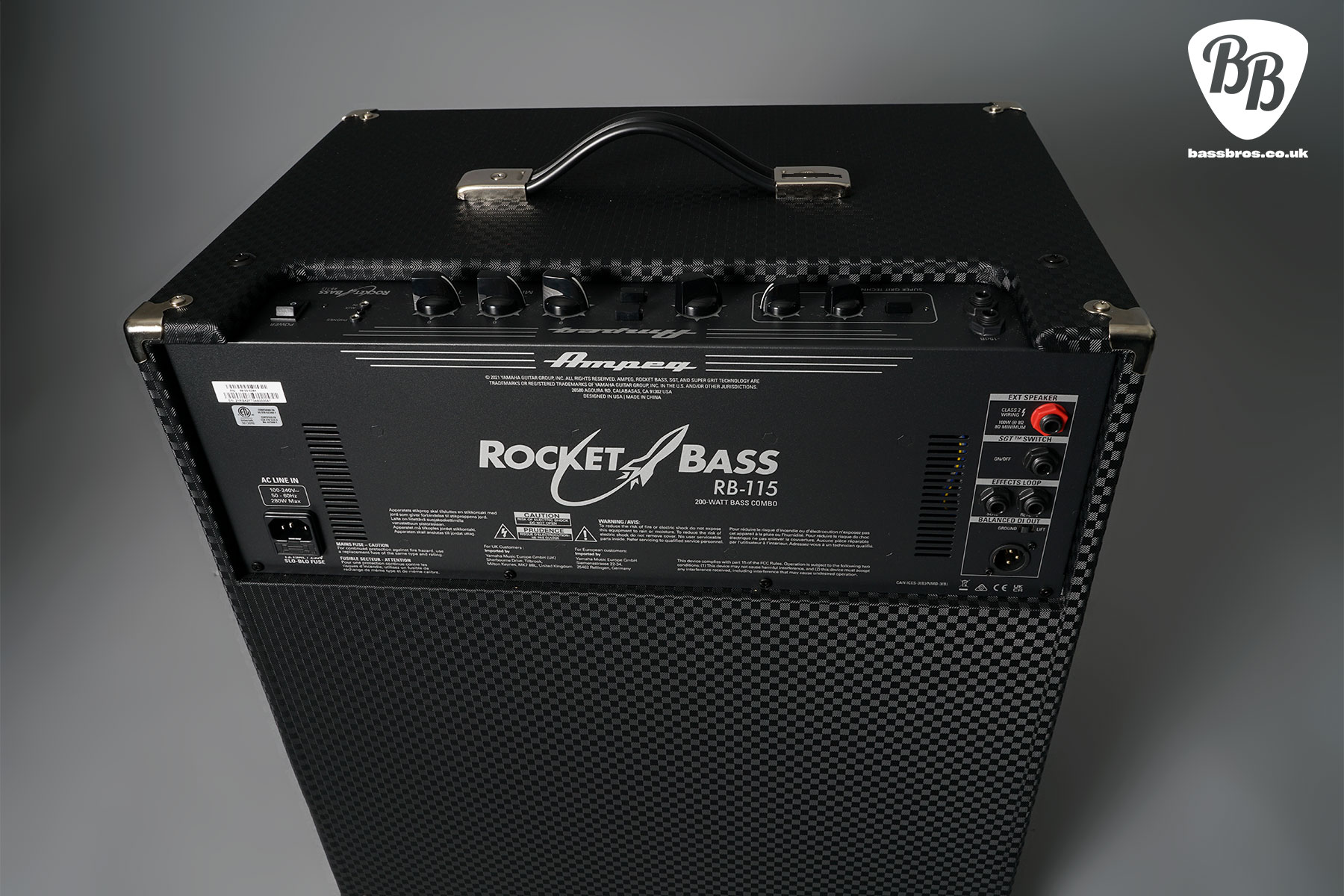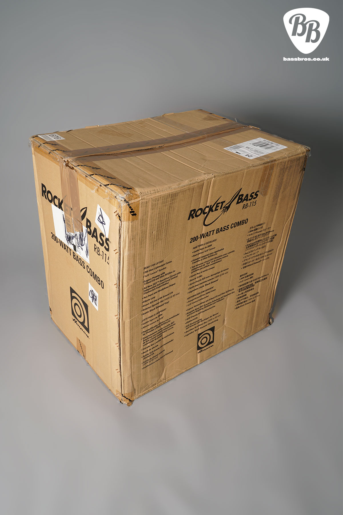 The 200-watt RB-115 is an exceptional gigging and recording amplifier with a custom 15″ Lavoce® speaker. Classic Ampeg 3-band EQ and Ultra Hi/Ultra Lo switches combine with the new Super Grit Technology overdrive circuit to deliver legendary Ampeg tone. Additional features include an auxiliary input, a headphone output, an effects loop, an extension speaker output, and an XLR output that provides a professional connection to a P.A. or recorder.