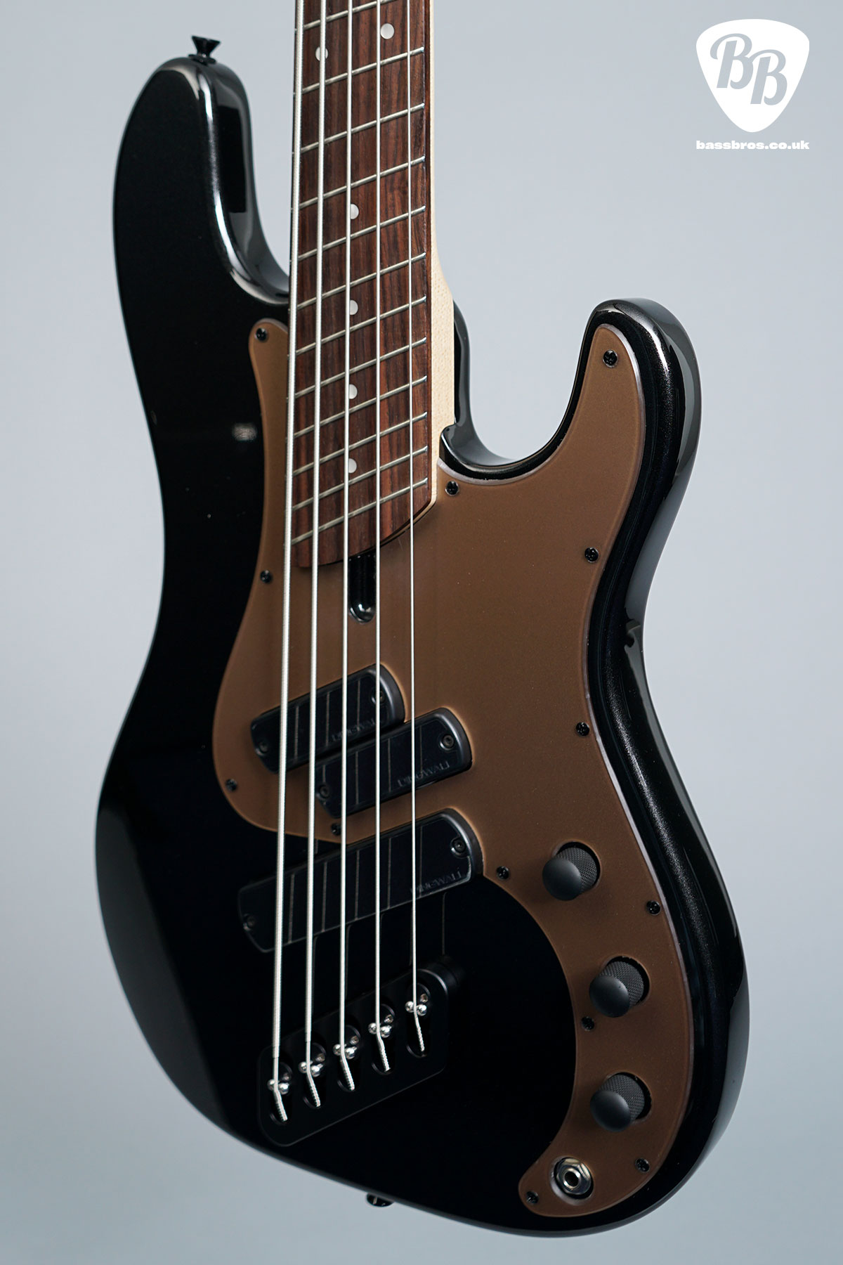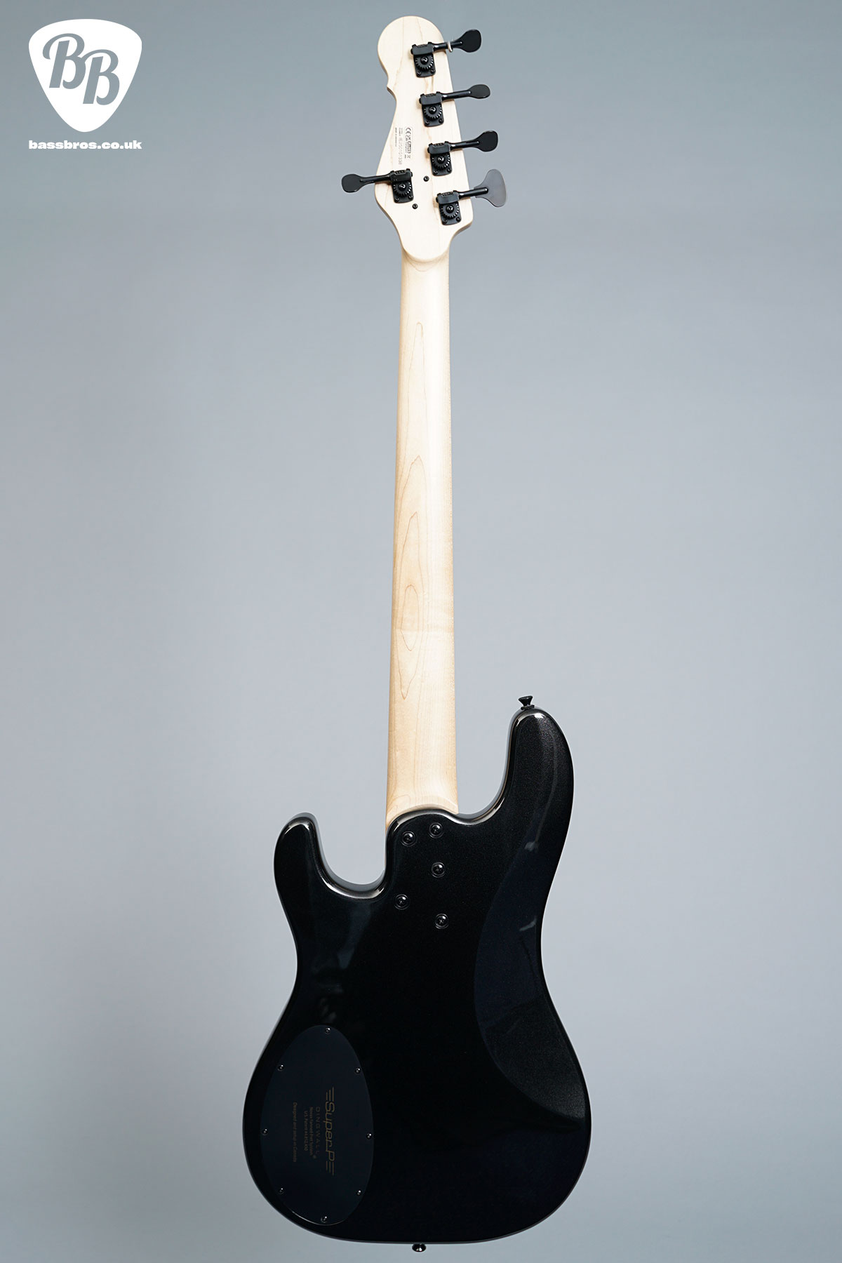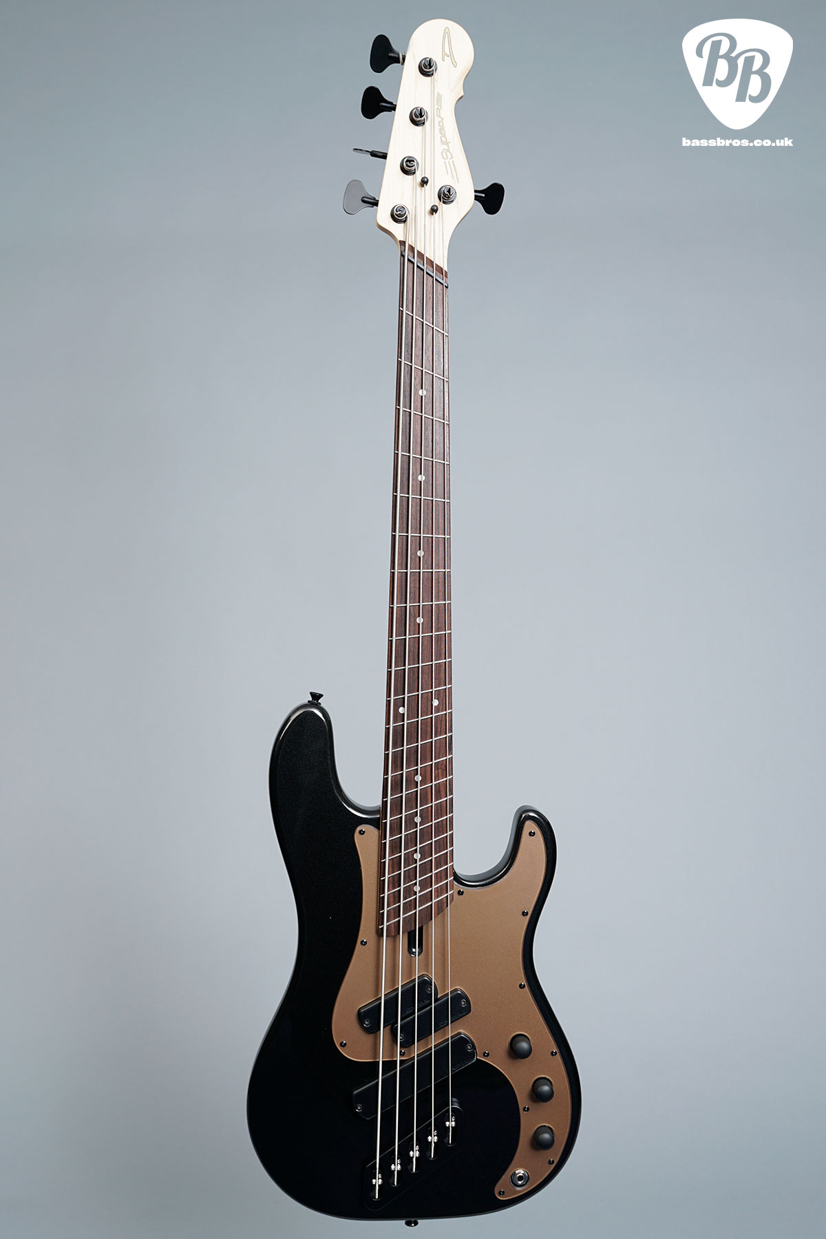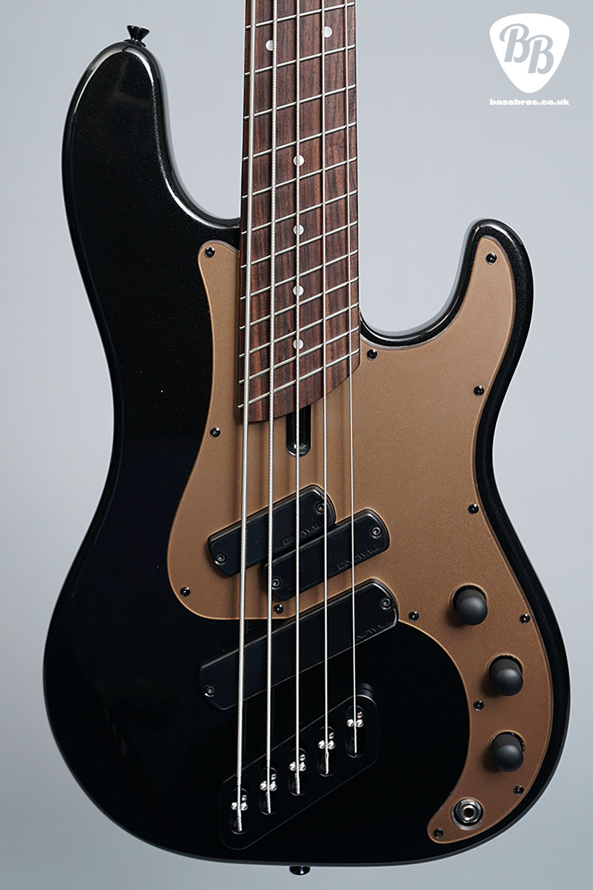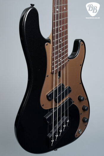 The Dingwall SP-1 embodies the body style of more classic bass guitars, yet is equipped with intuitive modern features such as the multi-scale neck for a more ergonomic playing style, a rotary pickup selector for simple tonal changes and a versatile set of DPn & FD3n Dingwall pickups. This one is in the metallic black finish and is in mint condition with plastic still on the pickups. Original gigbag is also included.