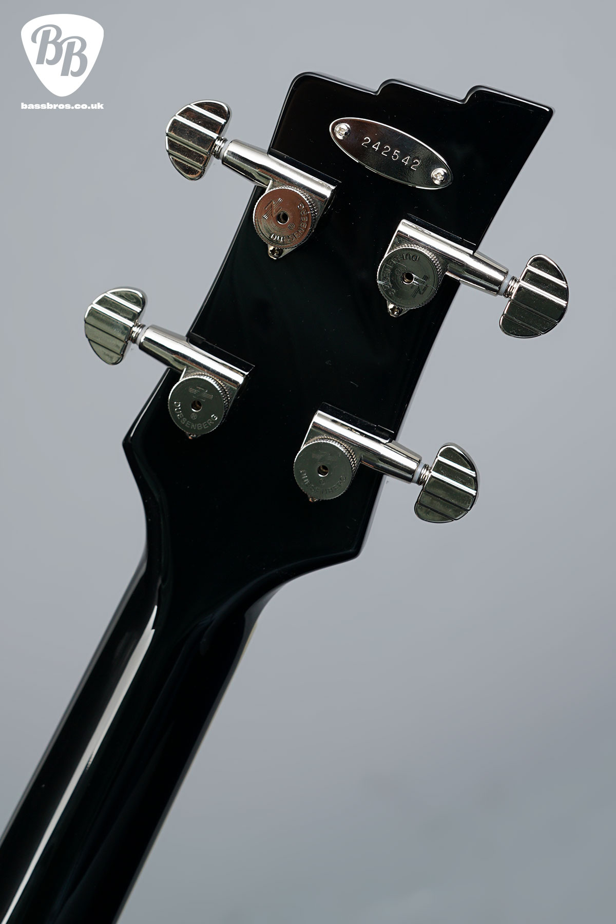 Based on the Starplayer bass design, this customized version has been refined to capture the sound envisioned by Dave. The neck position houses the acclaimed Duesenberg Alnico-Blade Bass Single-coil in a custom noiseless version under the new Gold-Foil style cover. This pickup brings the transparency associated with a classic Single-coil but cancels any unwanted noise on stage. Noise-cancelling can be switched on or off via a small switch on the pickguard. In the bridge position, you’ll find the latest Duesenberg Gold-Foil Bass Single-coil beneath a Phonico cover. This configuration offers exceptional transparency and clarity, while also providing ample low-end power to fill the venue with rich tones. Each pickup has a separate volume control, as well as a master tone, allowing Dave to blend both pickups seamlessly. This one is in mint condition and has no signs of wear. Included is the original hardcase + paperwork.