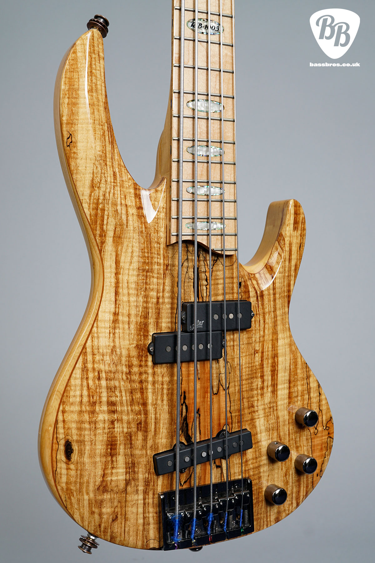 The ESP LTD RB-1005SM 5-String Bass Guitar is part of the LTD RB Series and features a Swamp Ash body with Solid Spalted Maple top, Maple and Walnut neck, a Maple fingerboard with 22J frets, finished in Natural. The 34″ scale bass has a bolt-on-neck construction, Grover tuners and a Gotoh Bridge. It is in excellent condition and plays fantastically. We have given the the bass a full check over, the trussrod and electronics all work perfectly. Included is a gigbag.