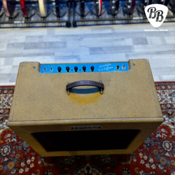• Features: 2 Inputs (Input 2 -6dB Pad), XLR Output with Ground Lift, Rear Ported Cabinet, Lacquered Tweed Covering, 12AX7 Tube Preamp/Efficient Class D Power Amp, Passive Tone Stack, Comfortable Dog Bone Handle, Removable Casters, Chrome Control Panel, Chicken Head-Style Knobs, TV Panel Cosmetics with Modern Upgrades