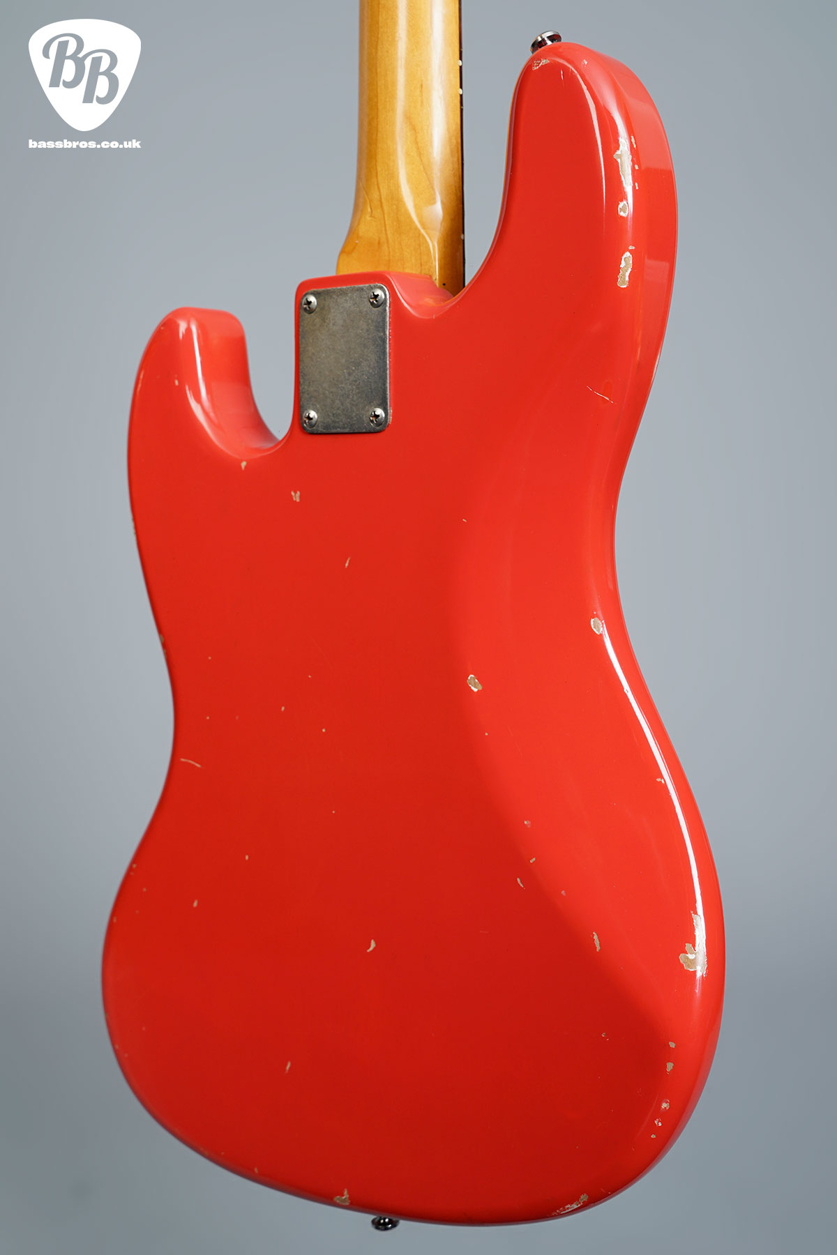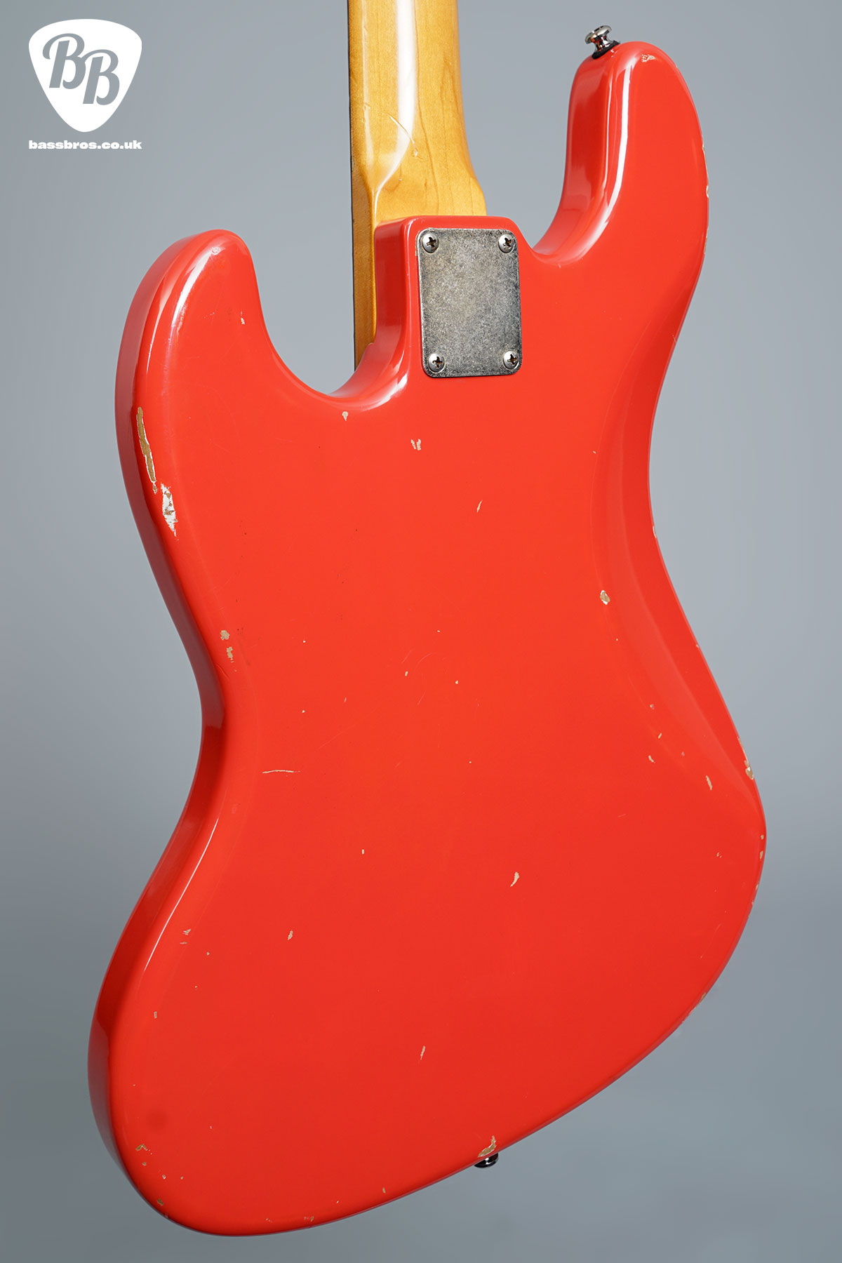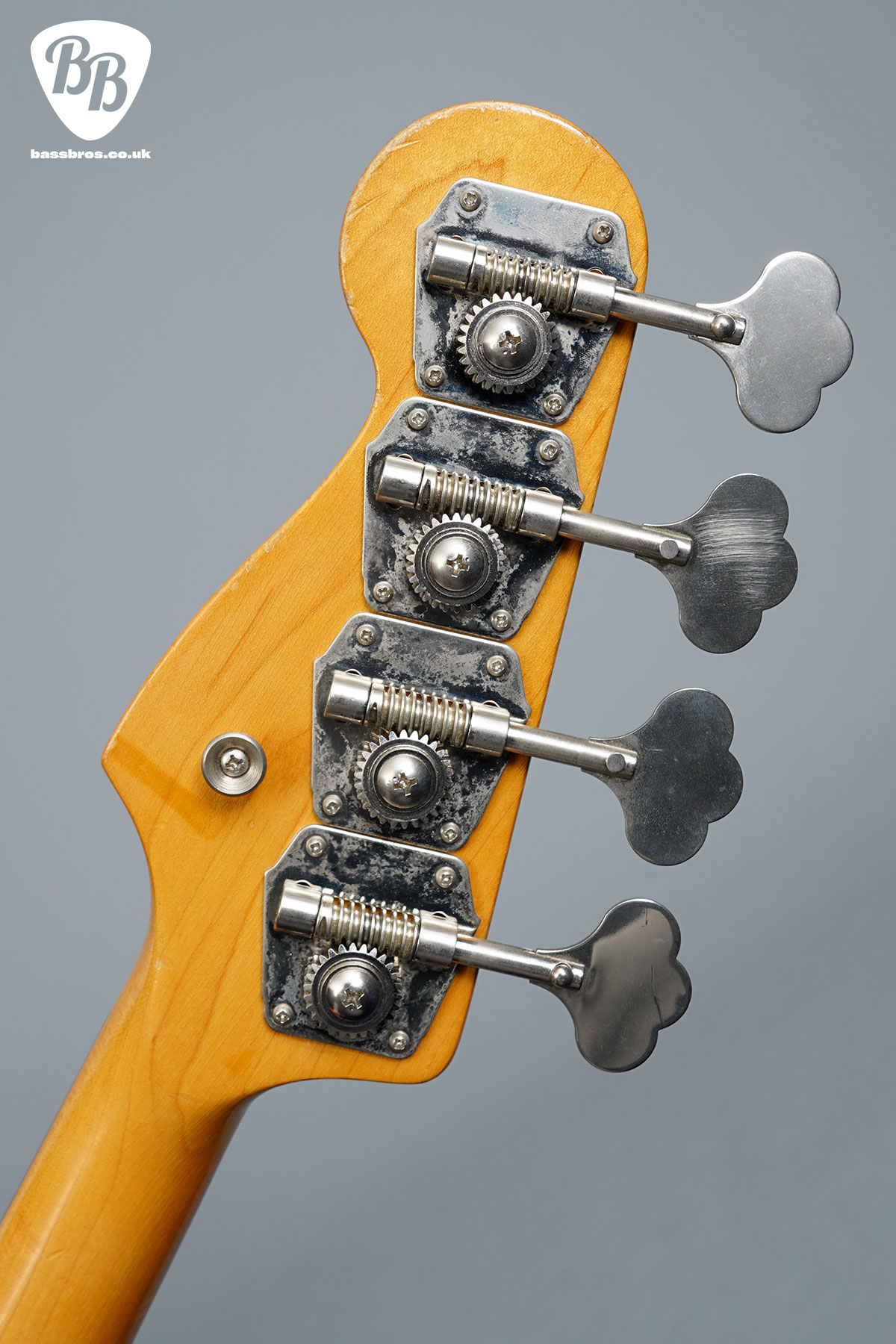 Here we have another cool bitsa bass! This one featuring a 2003 Fender American Vintage Jazz Bass neck, with a custom relic precision style body. This bass is in good condition, with a lot of marks to the back of the neck throughout, and the obvious relic finish to the body. It has a Bloodstone wiring loom, and an unknown jazz pickup, which sounds great. We have checked the trussrod and electronics and everything functions perfectly as it should.