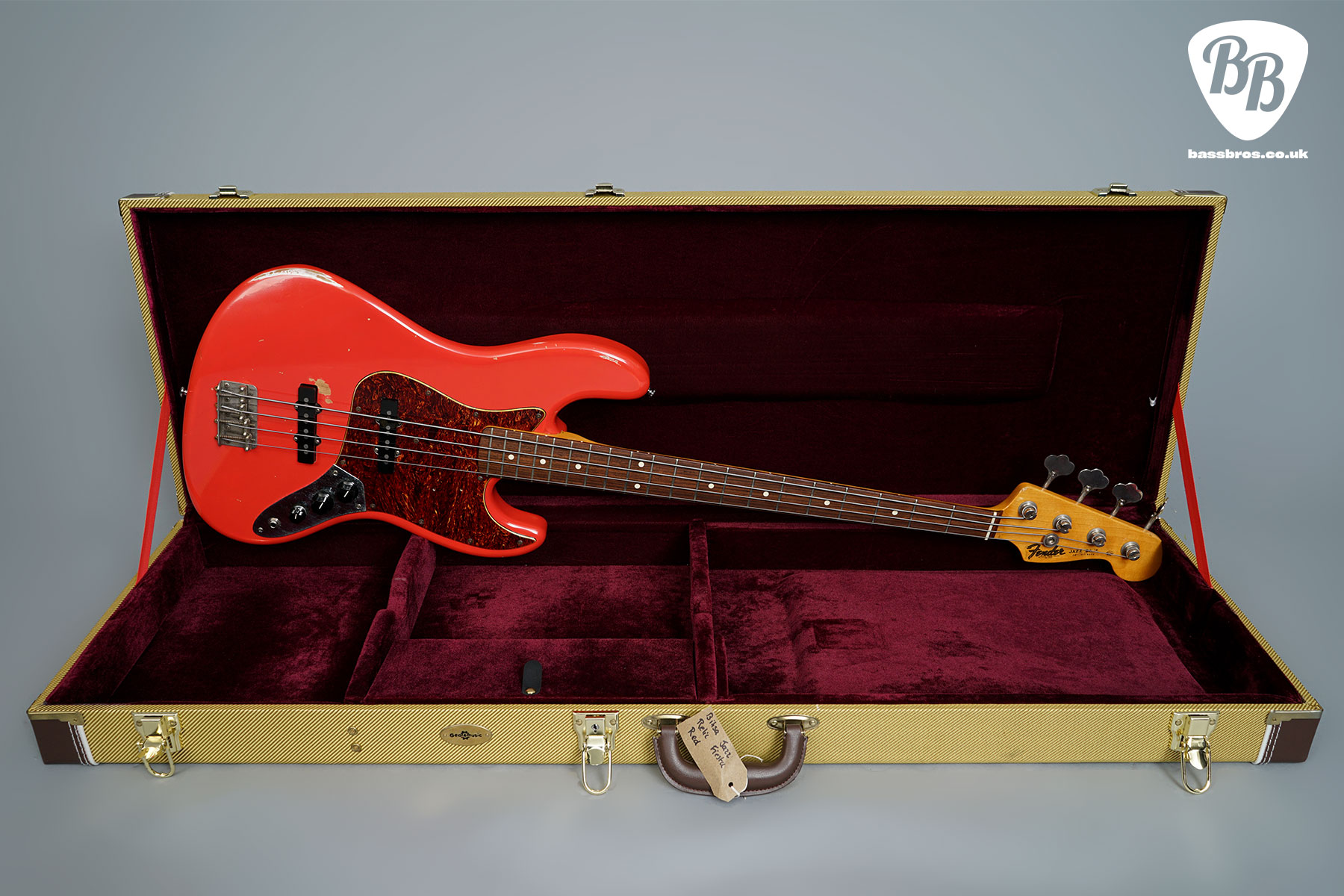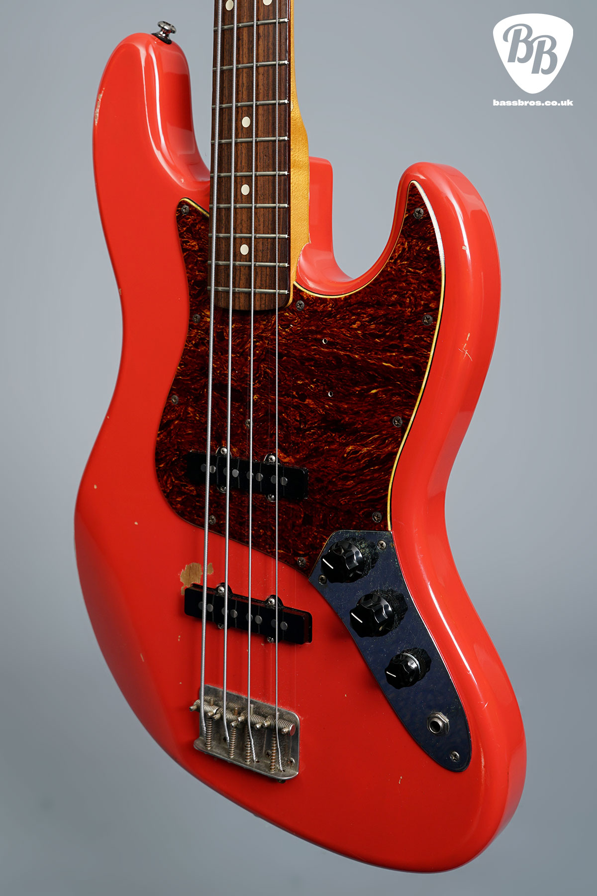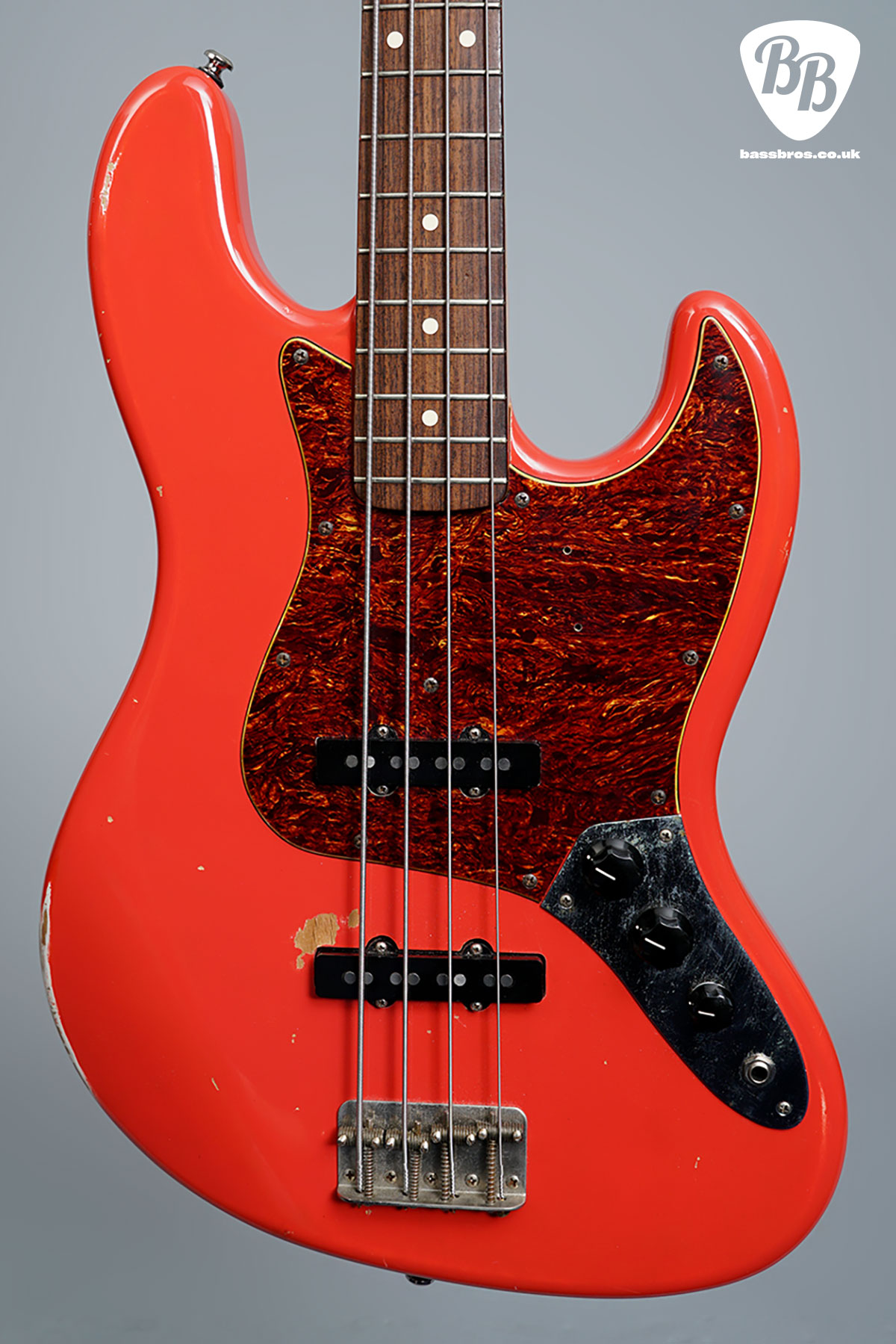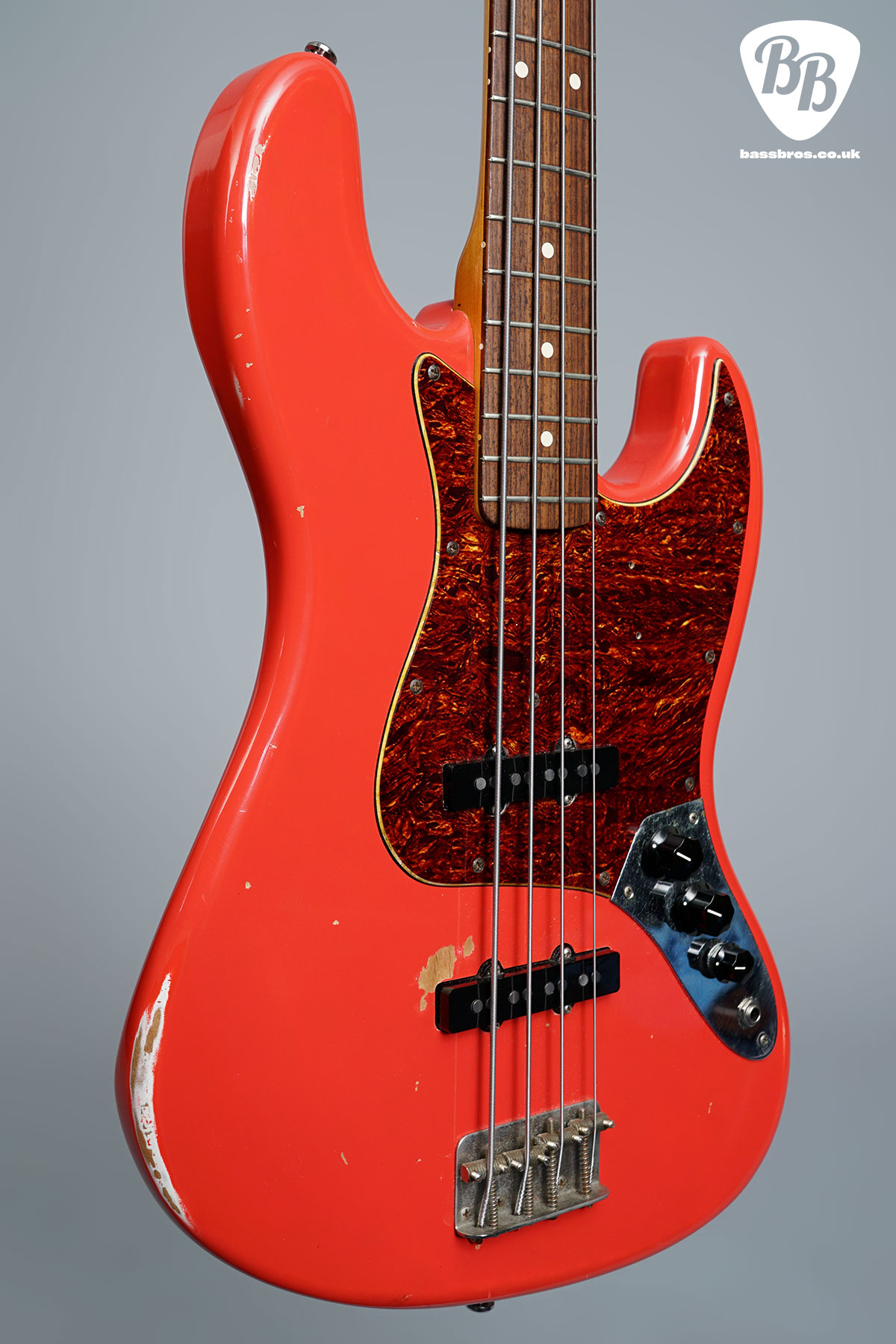 Here we have another cool bitsa bass! This one featuring a 2003 Fender American Vintage Jazz Bass neck, with a custom relic precision style body. This bass is in good condition, with a lot of marks to the back of the neck throughout, and the obvious relic finish to the body. It has a Bloodstone wiring loom, and an unknown jazz pickup, which sounds great. We have checked the trussrod and electronics and everything functions perfectly as it should.