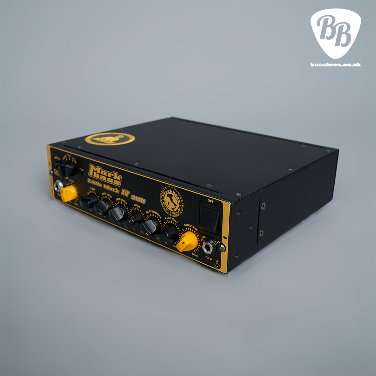 The Little Mark IV amps add some amazing features to our flagship Markbass Little Mark III amplifier, an industry standard for tone, portability and value. The new bi-band limiter featured on this amp responds faster and more dynamically to your playing. Its paired with a 500 watt power amp providing impeccable bass frequency reproduction thanks to our MPT proprietary amp specifically designed for bass. In addition the Little Mark IV features a mute switch, and the 3 way switch that that includes the options of a Flat, Scooped or FSW (Footswitchable) EQ options.