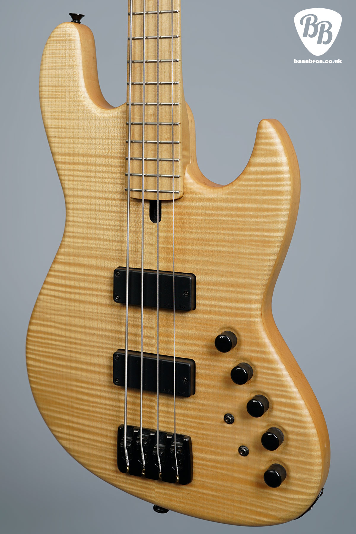 Check out this stunning Flame Maple Maruszczyk Elwood 4a! It’s a fantastic player! This bass is also very lightweight at just 3.6kg / 7lb 15oz. We have given the bass a full checkover and everything works perfectly, including the trussrod and electronics. Included is a gigbag.