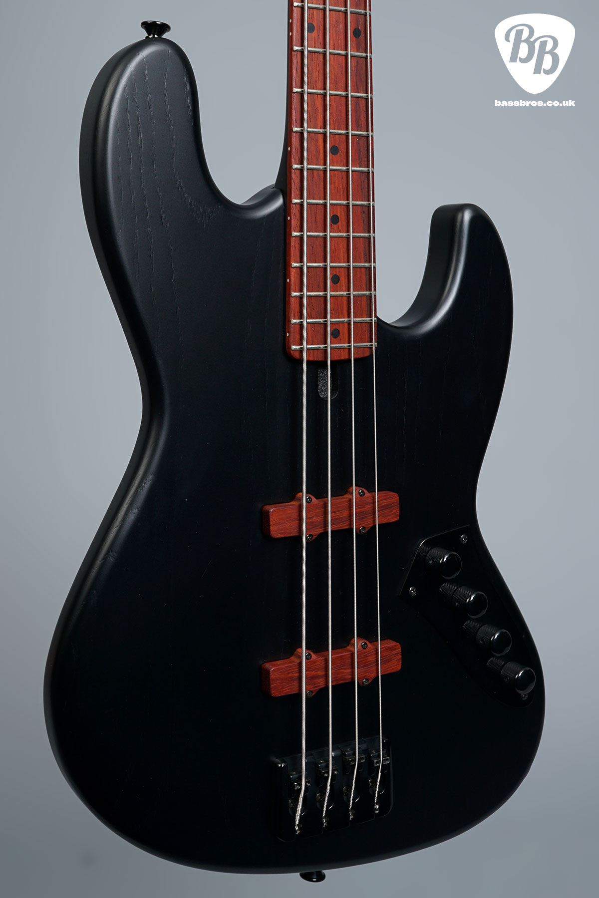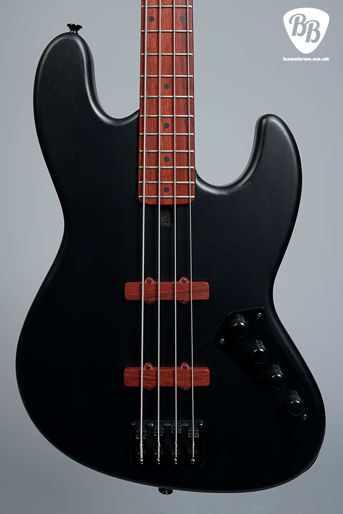 The Hellwood is based on the Elwood, the pun comes from the special colour arrangement with padouk fretboard and pickup covers over black matt body and neck. It is fitted with Delano Preamp and Häussel Pickups. This one is in excellent condition, a great player with the traditional jazz bass sound. We have given the bass a full checkover and everything works perfectly, including the trussrod and electronics. Included is a gigbag.