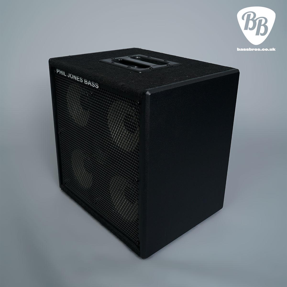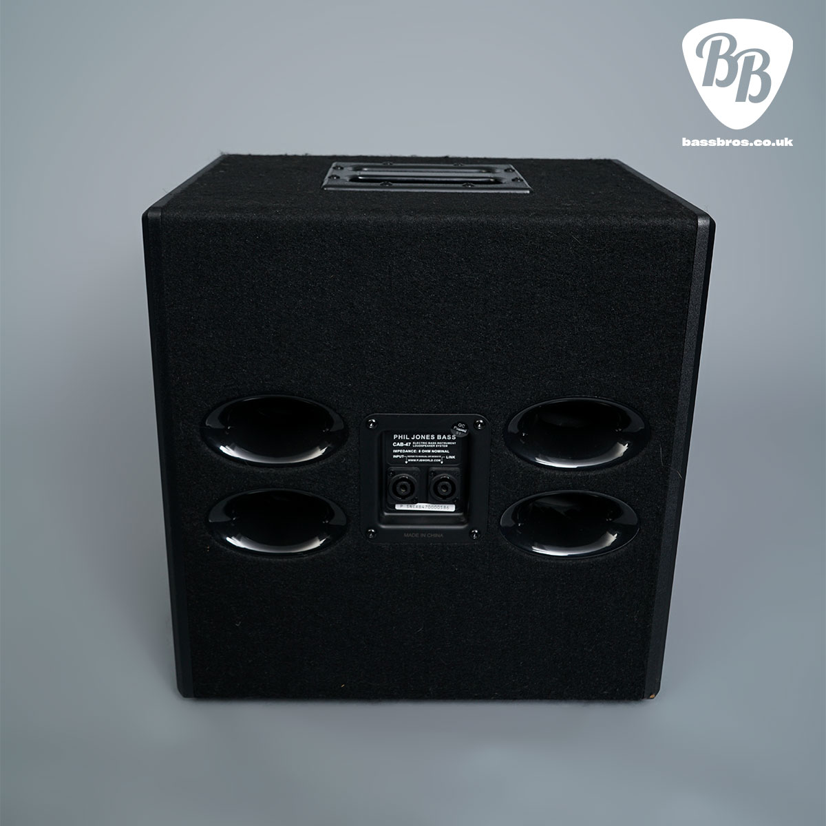 The CAB 47’s are equipped with 4 x 7” proprietary PJB woofers and 2” tweeter specially designed and manufactured exclusively by Phil Jones Bass. They are rated at 8 ohms and 300 watts. The dimensions are 16” x 13” x 17” and it weighs in at 39lbs/17kg. Frequency response: 30Hz to 15kHz