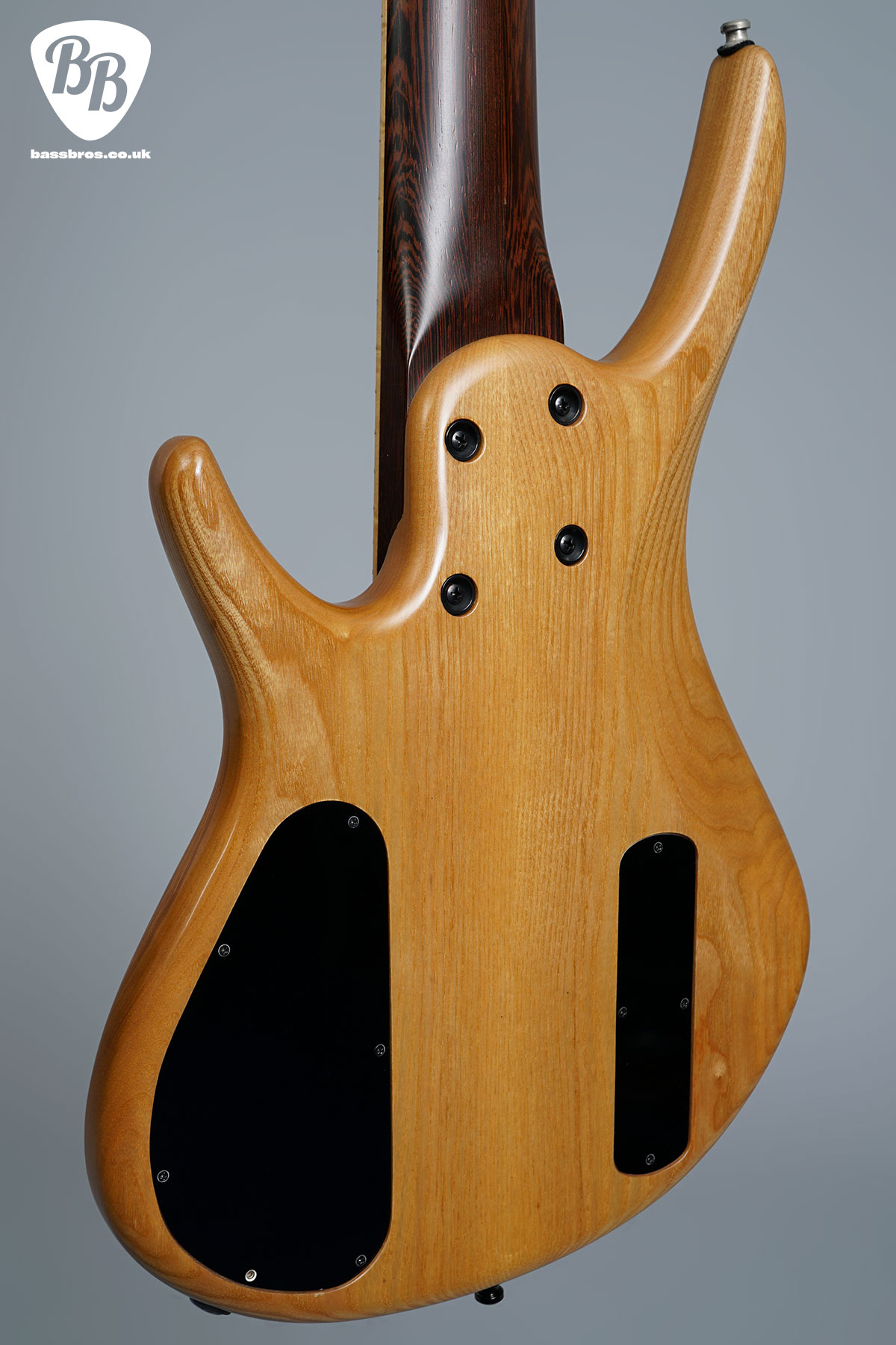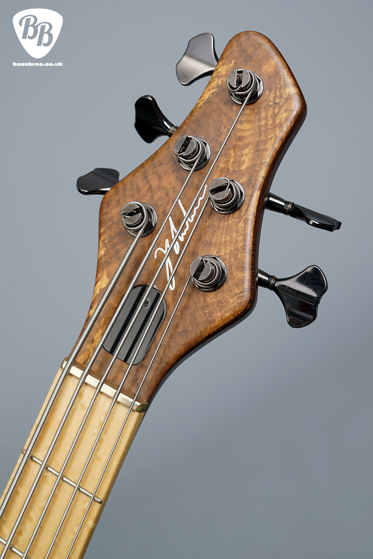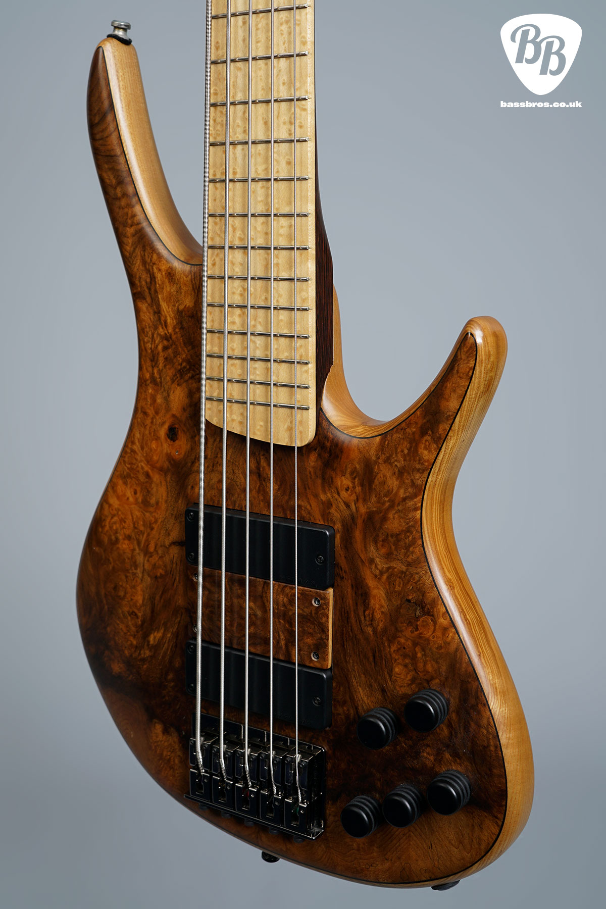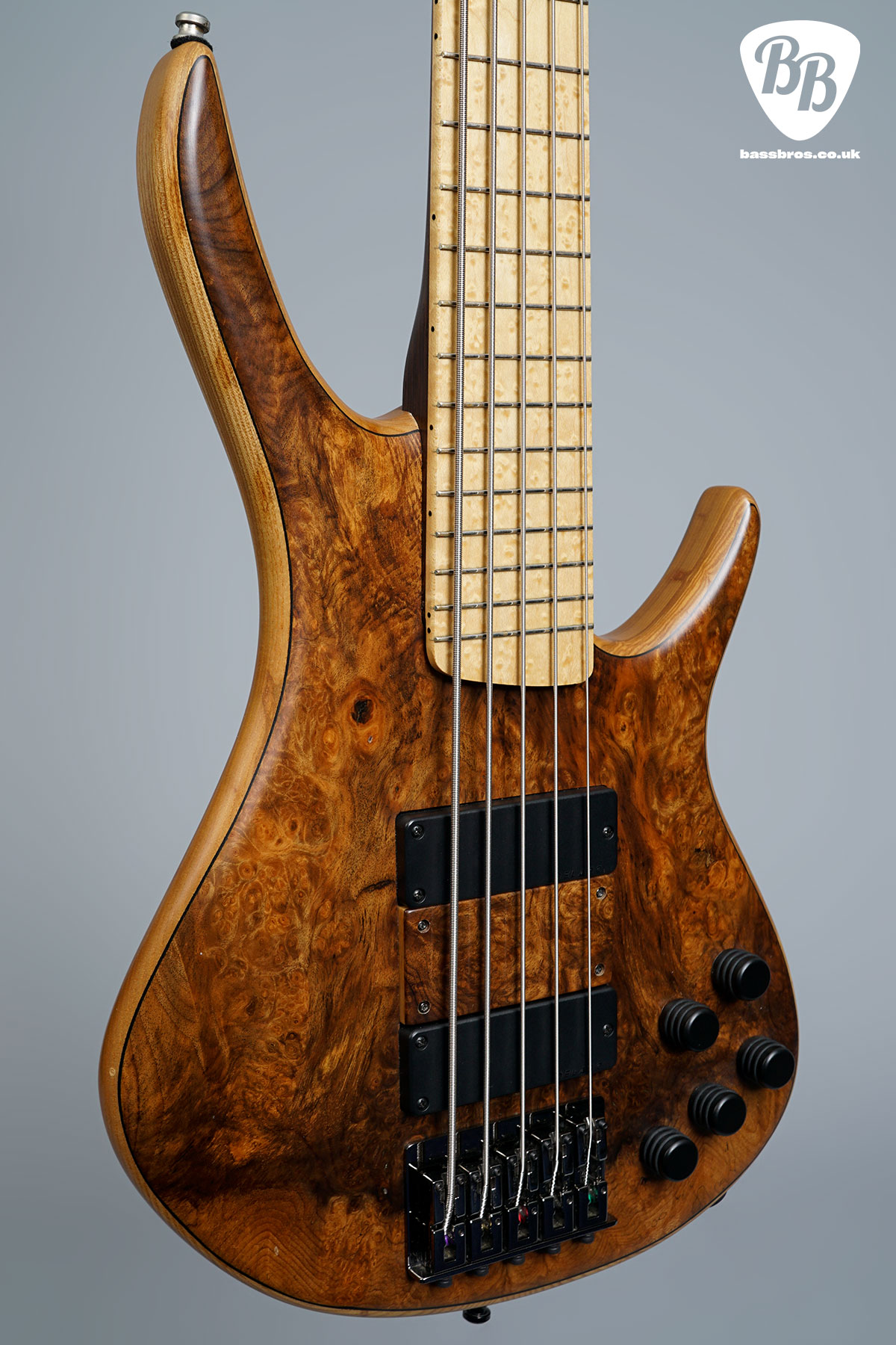 A wonderful 33″ scale custom bass from Shuker! This one features a gorgeous walnut burl top. Also fitted are a set of Delano pickups, and preamp with the adjustable mid switch. The switch is currently in the backplate of the bass, but is wired in like normal. The stunning woods used make this bass a real head turner. All in excellent condition with very little signs of wear. Included is a hardcase.