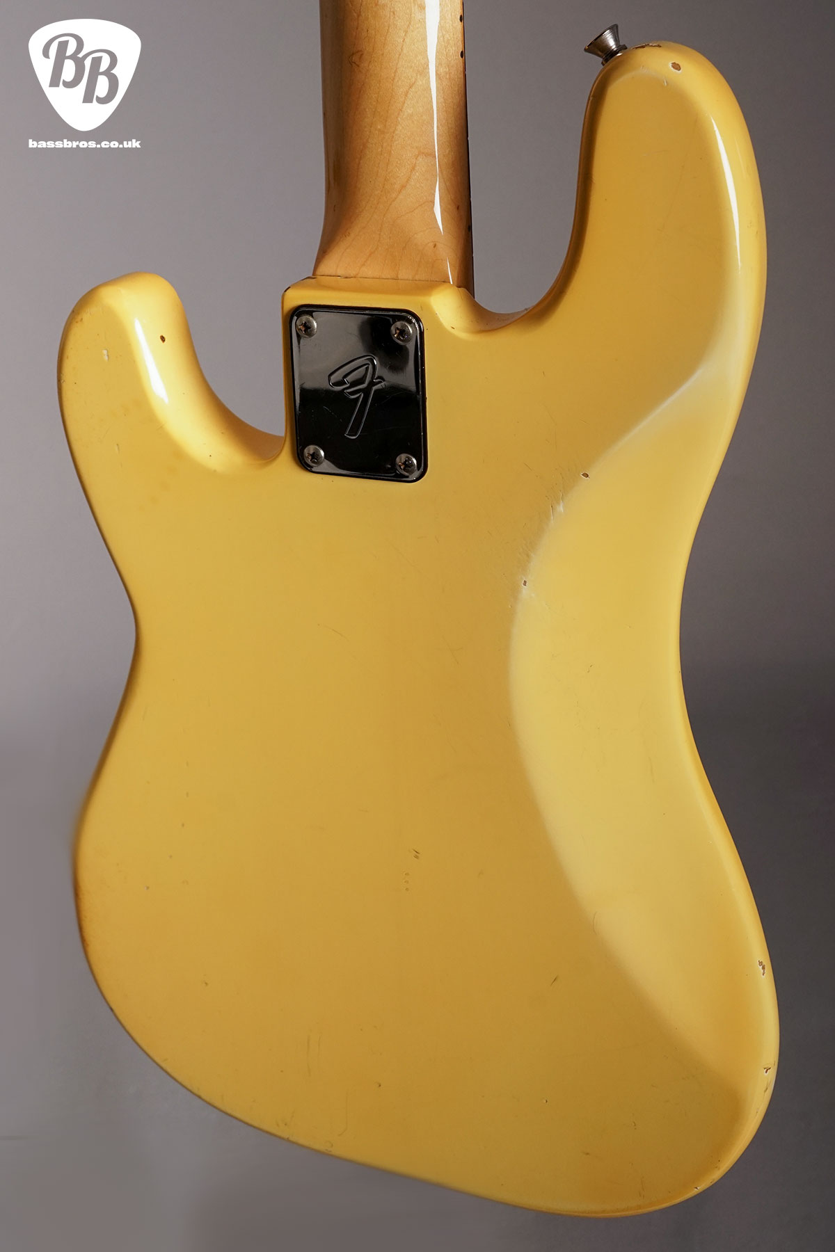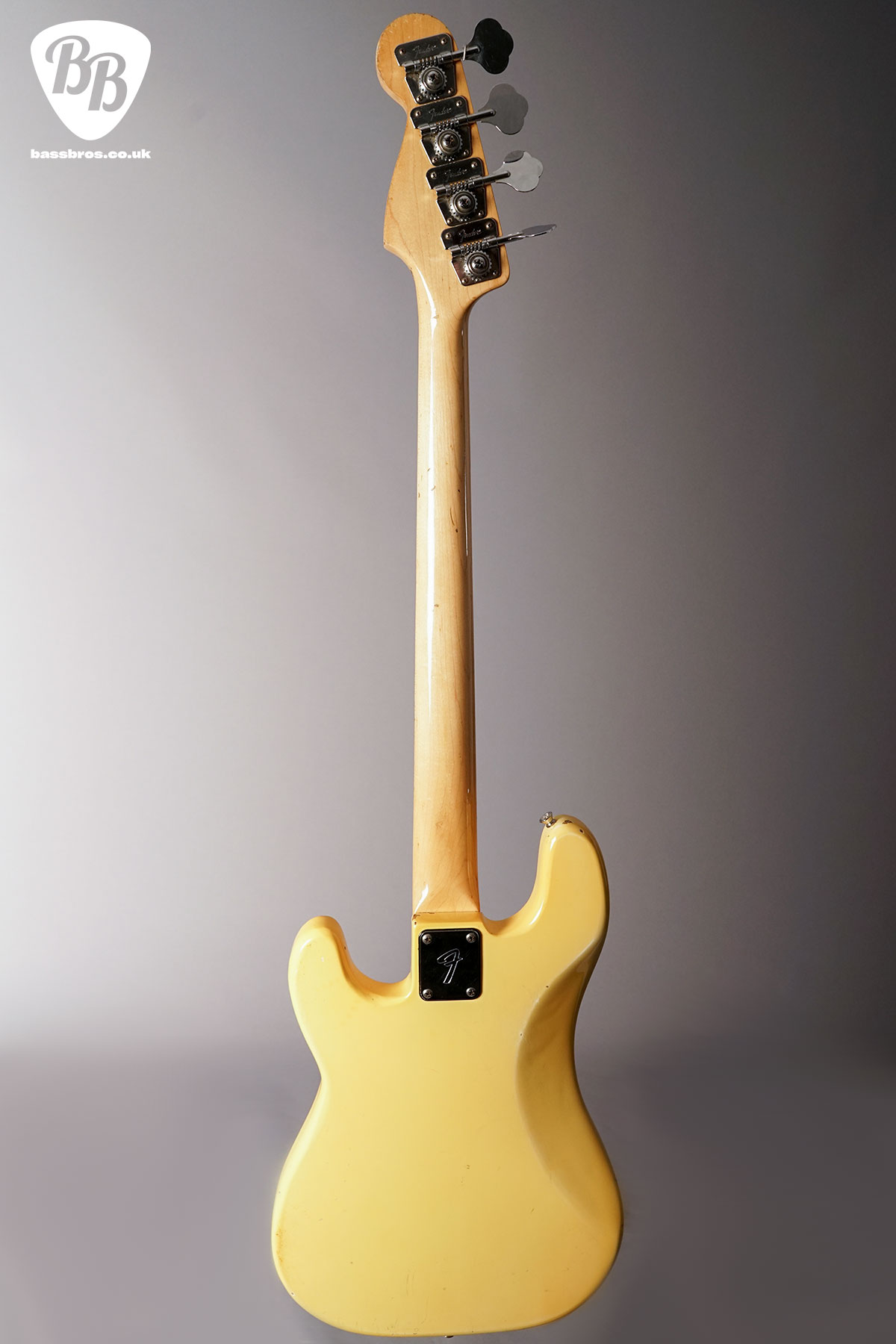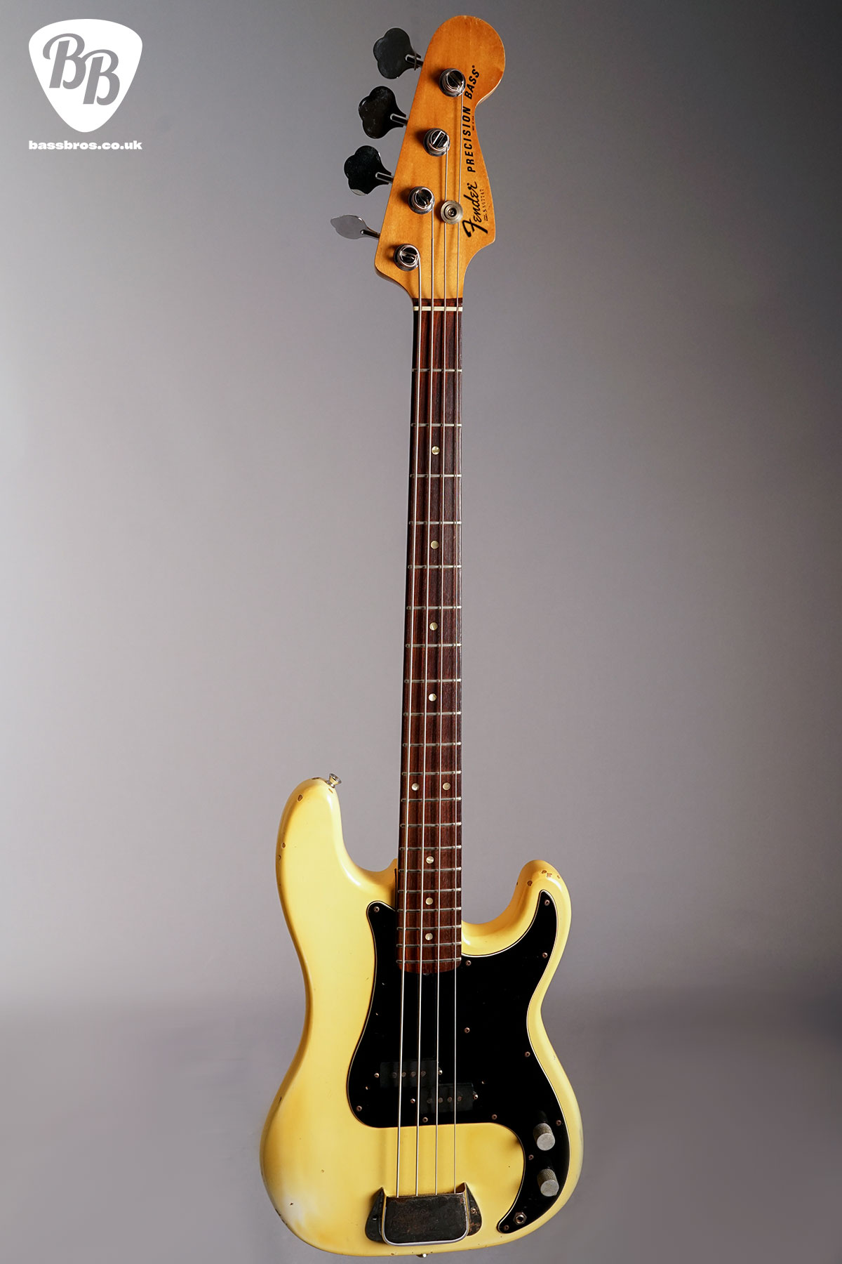 What a fantastic example of a late 70’s Fender Precision bass! This bass features an olympic white finish which has aged very nicely! The original bridge cover is included also. The condition of this instrument is good, there are some areas of chips and dings on the body and neck as expected on a bass of this age that’s been used. We have checked the trussrod and electronics and everything functions perfectly as it should.