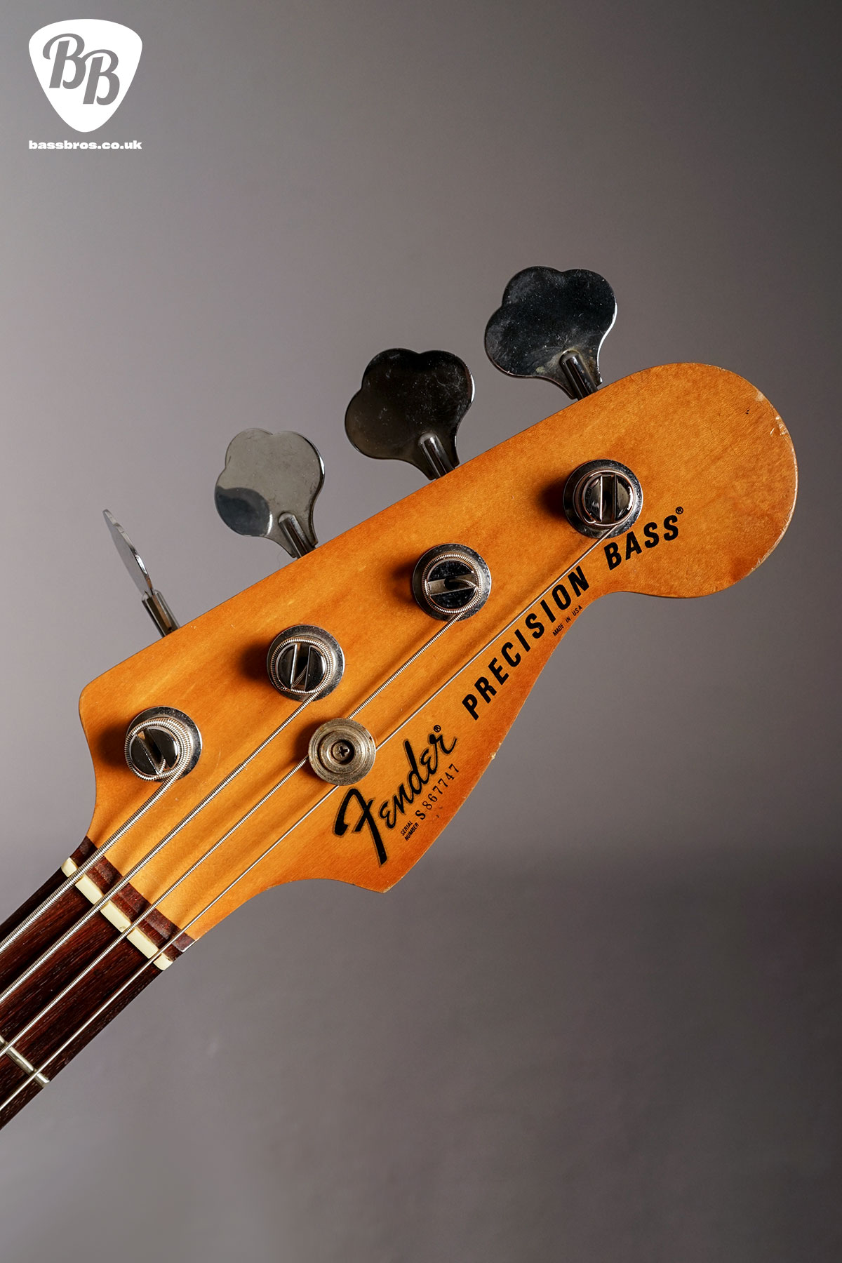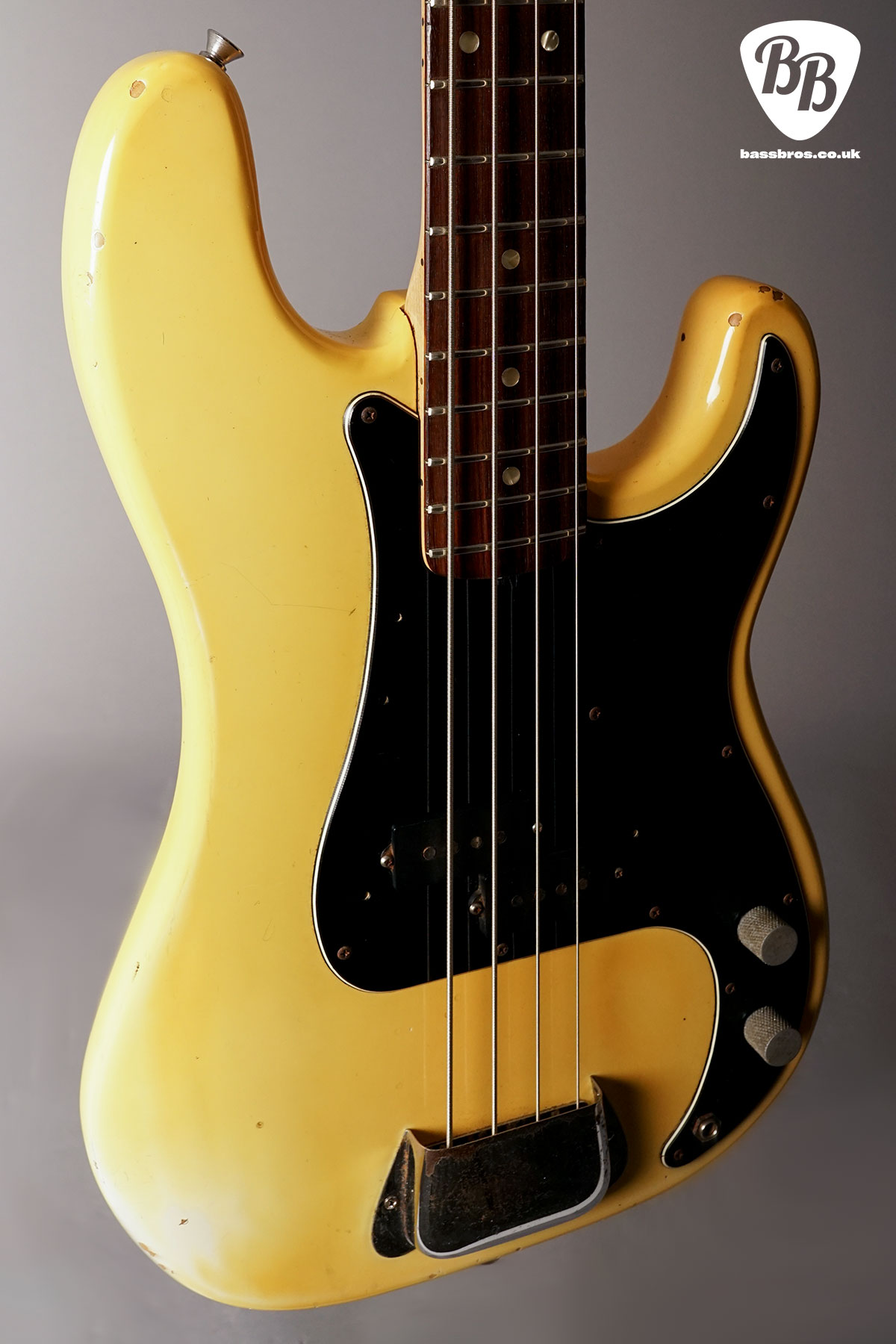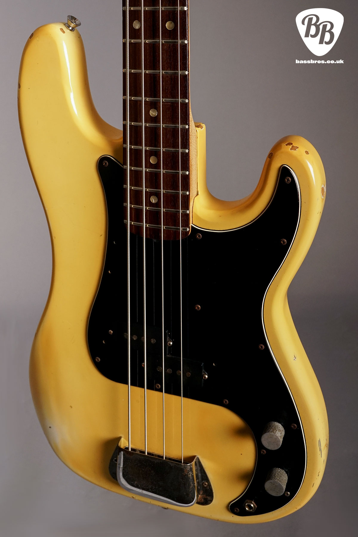 What a fantastic example of a late 70’s Fender Precision bass! This bass features an olympic white finish which has aged very nicely! The original bridge cover is included also. The condition of this instrument is good, there are some areas of chips and dings on the body and neck as expected on a bass of this age that’s been used. We have checked the trussrod and electronics and everything functions perfectly as it should.