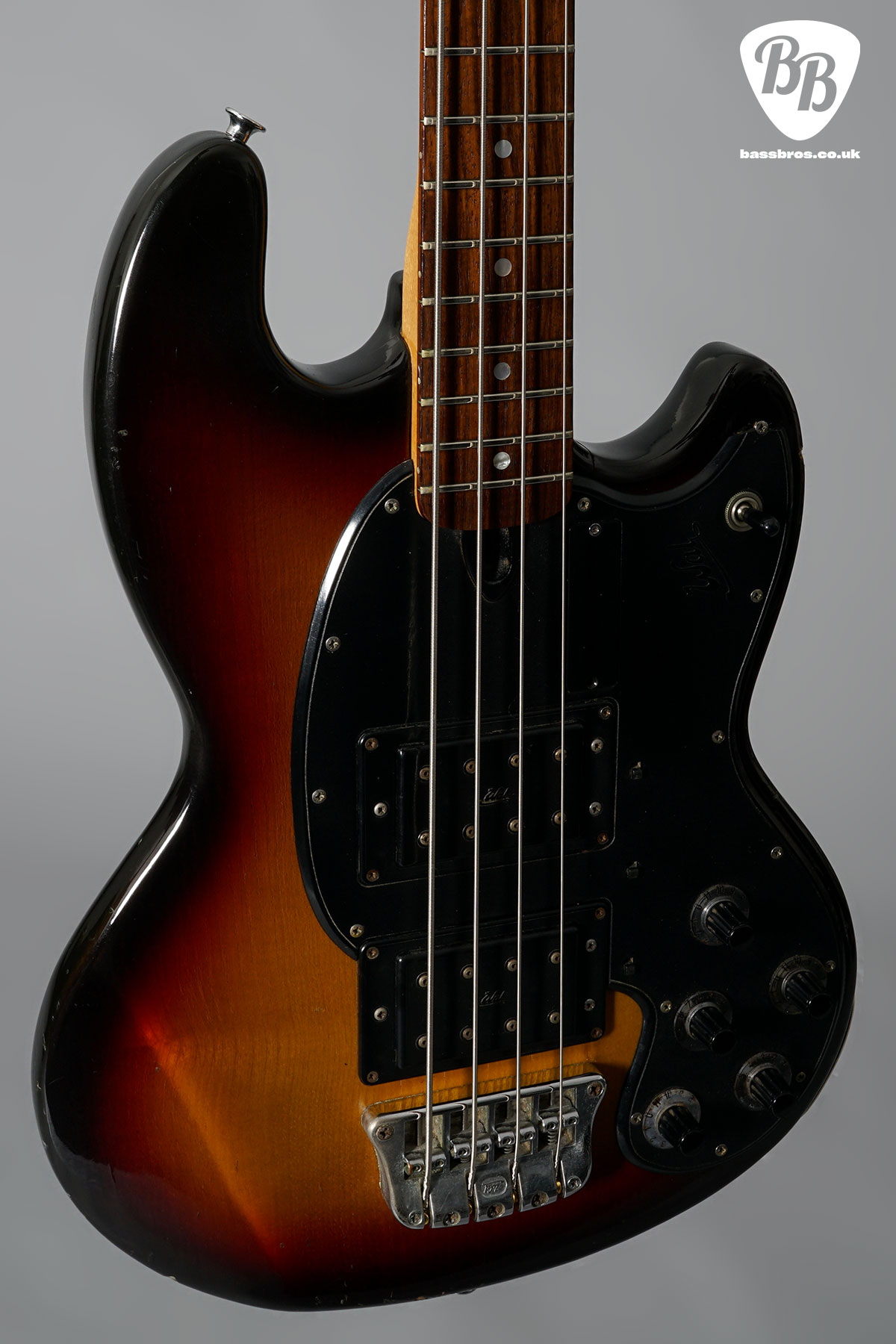 If you know, you know! These basses are a fantastic example of UK built basses, now very sought after and ever increasing in value! This one is a real beauty with its English Ash facings. We have fully checked over the bass and everything works perfectly including electronics and truss rod. It is in good condition overall with some marks and lots of signs of wear throughout. There are a lot of cracks throughout the finish. The corner of the pickguard is cracked also. Included is the original hardcase.