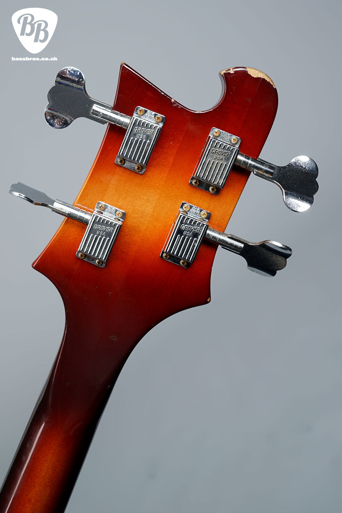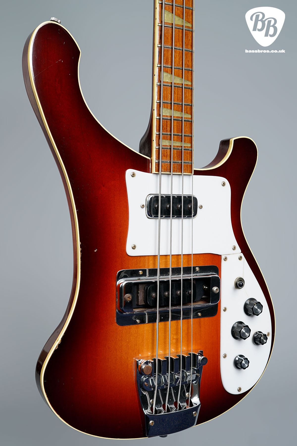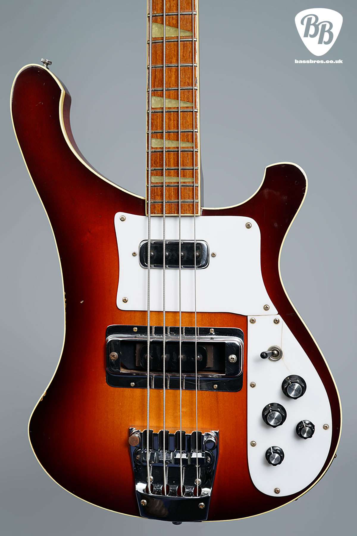 Here we have a fantastic 1982 Rickenbacker 4003 in fireglo! This bass plays a dream with low action and sounds amazing. The bass is in good overall condition, there are a few chips to the finish throughout, mostly to the back of the body and the top of the headstock. Two of the knobs have been replaced, and the pickguard has a crack in it and an extra screw. We have given the bass a full check over, including the truss rod and electrics, all works perfectly. Included is a hardcase.