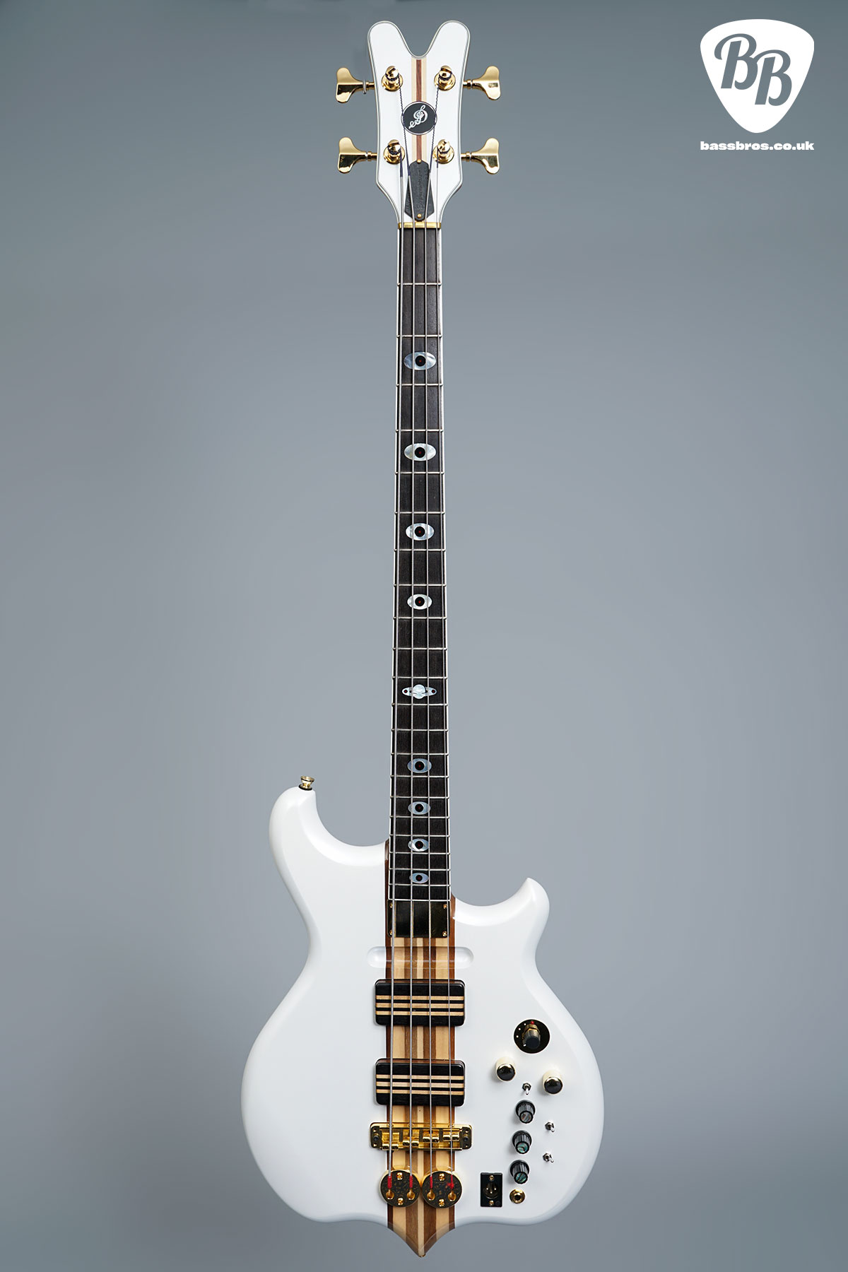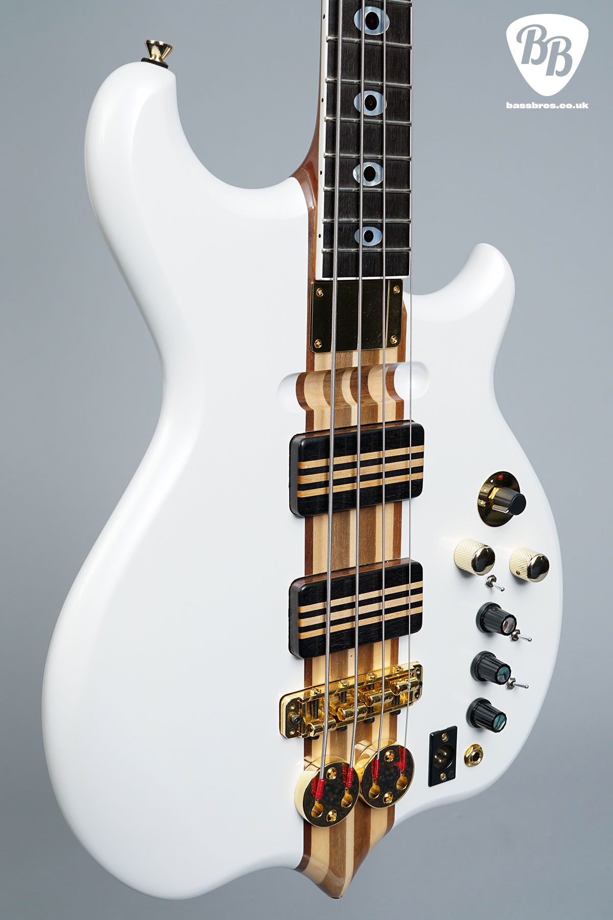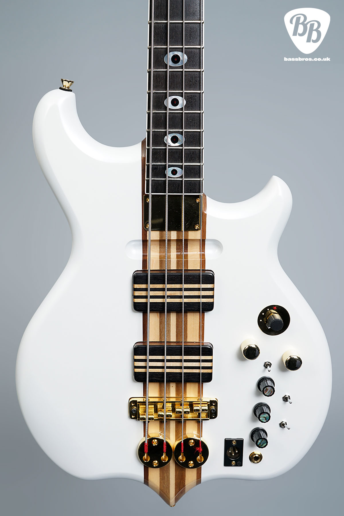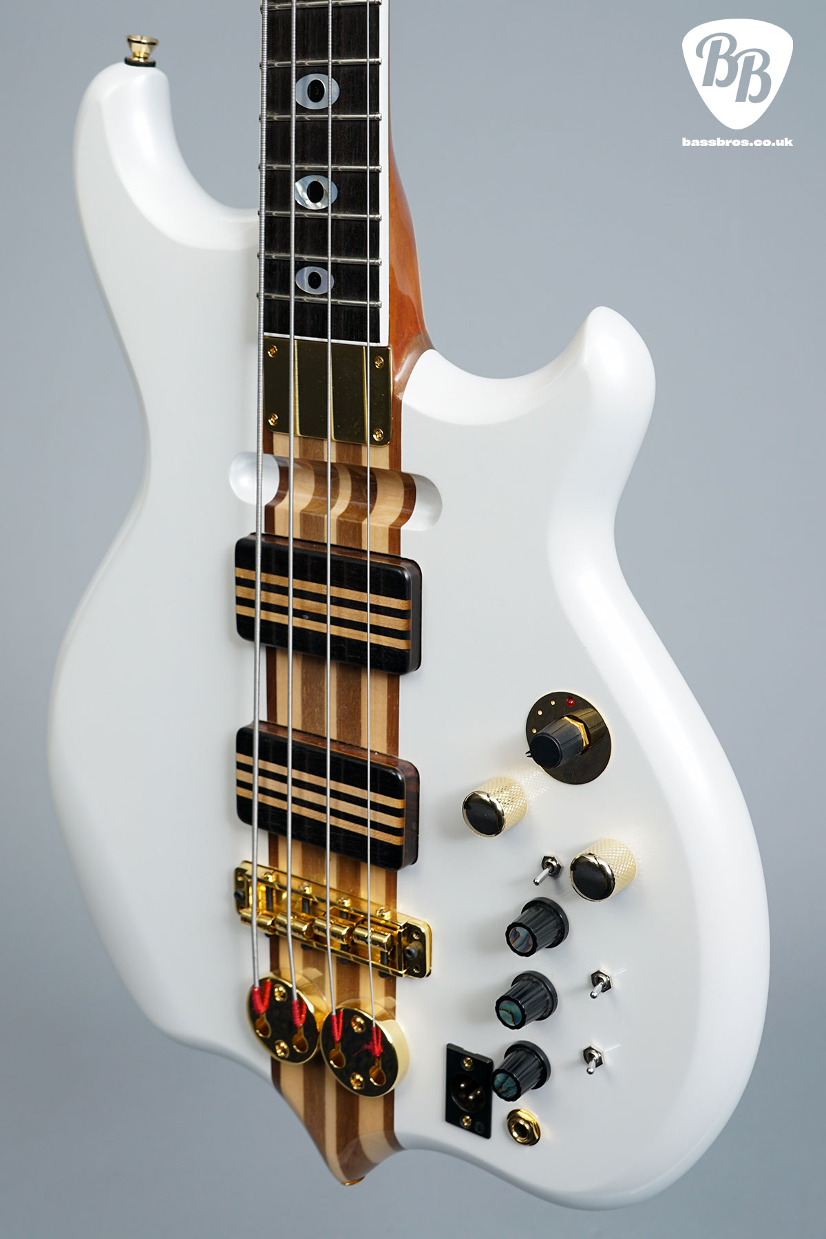 Here we have a stunning, much sought after Jaydee GA24! Although this one has had the top frets removed by Jaydee and it is now 21 fret. These are fantastic basses that are increasingly hard to come by. This one has had a refinish at Jaydee, and looks like a new bass. The bottom strap pin has been relocated to the back of the body, as seen in the pictures, and a brass filling has been put into the old strap pin hole. The bass has a redundant LED switch on the body, but the LEDs are not connected. It is in fantastic condition and plays amazingly well. Included is a new Hiscox hardcase.