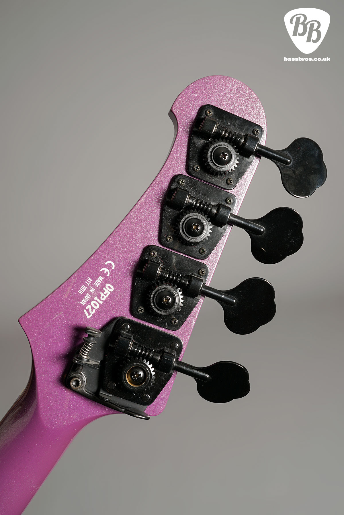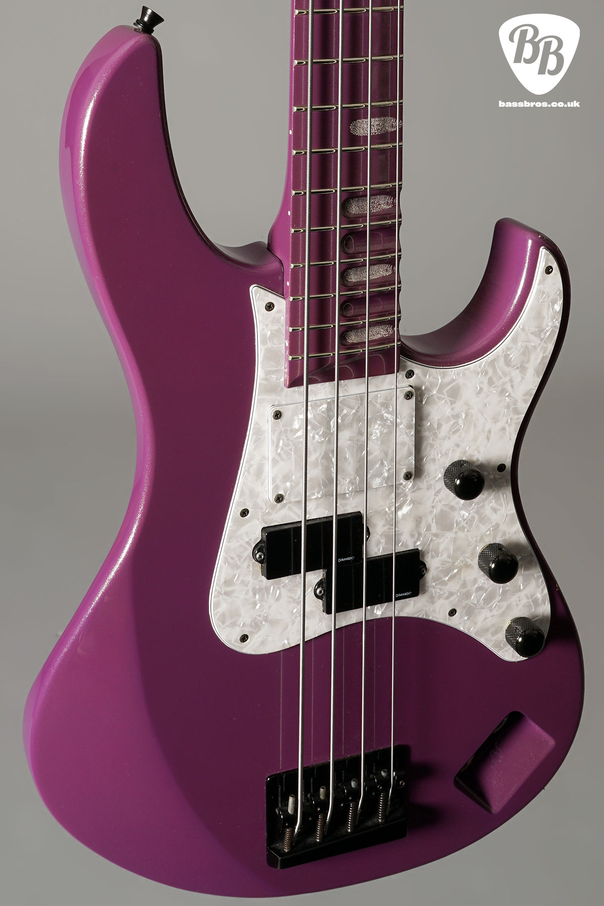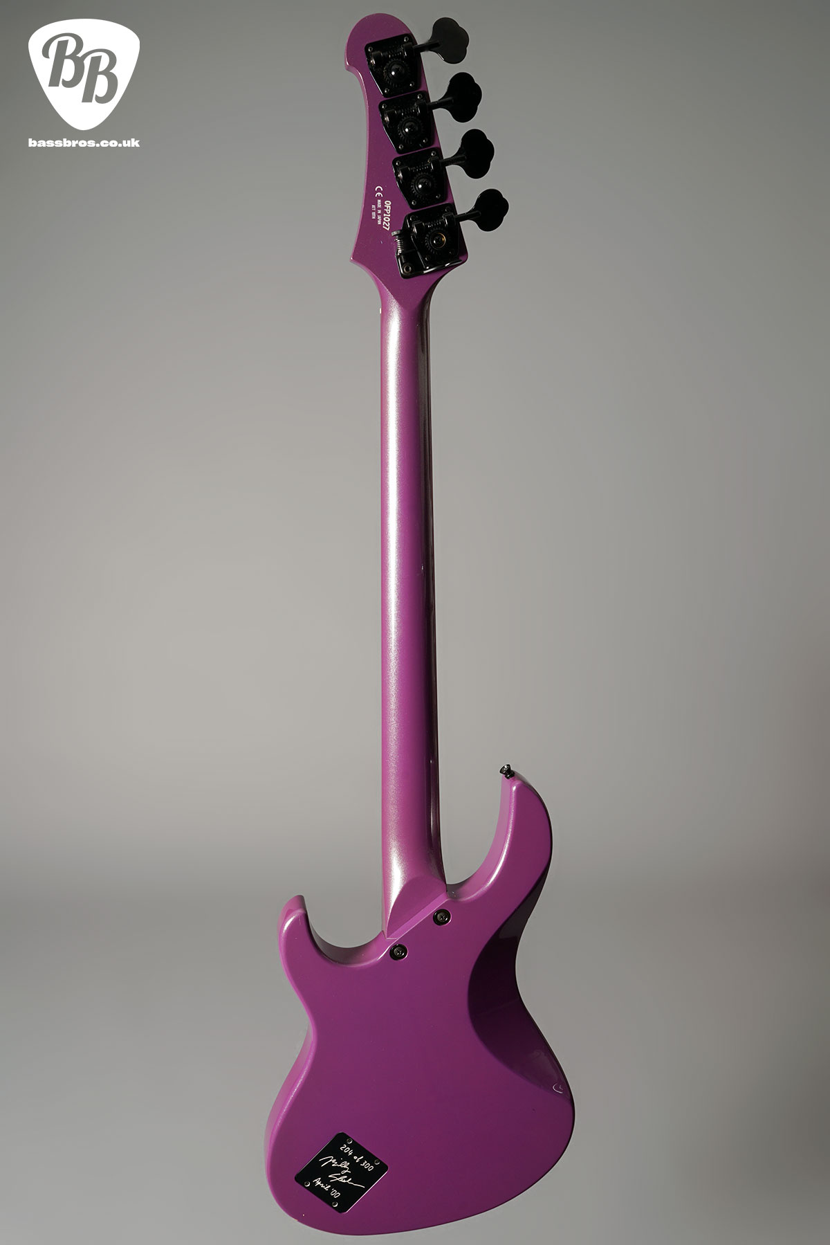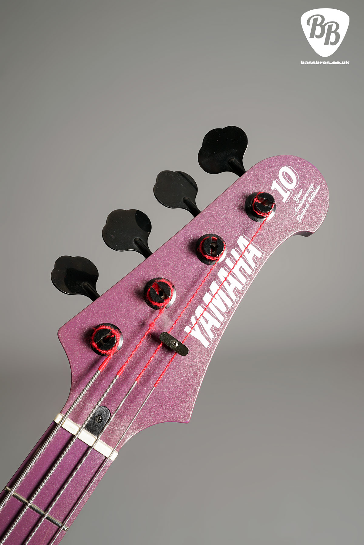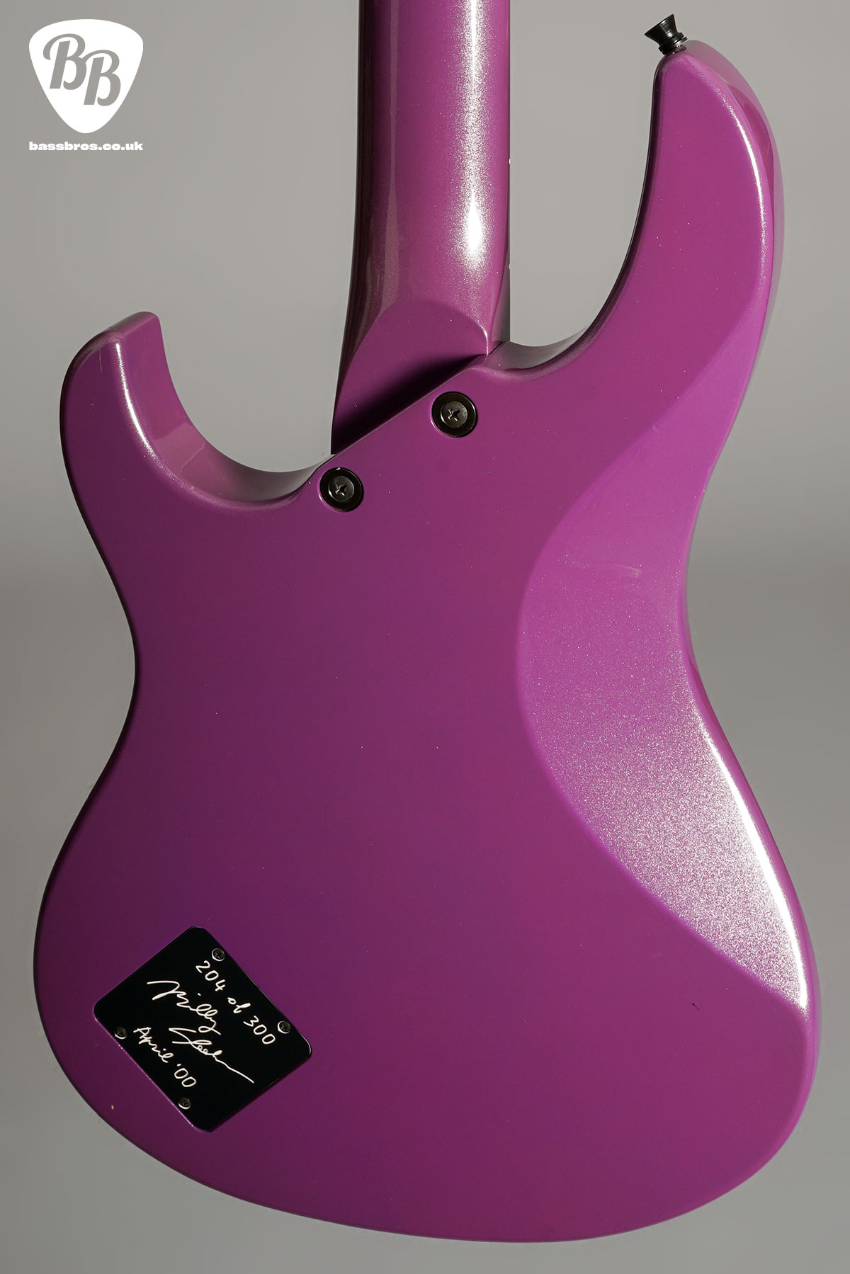 To commemorate the 10th anniversary of collaboration between Billy Sheehan and Yamaha, in 2000 Yamaha built 300 pieces of the Attitude 10th Anniversary Billy Sheehan signature in 2 colours, based on the precision-style Yamaha Attitude II model; 150 pieces in purple metallic and the other half in black metallic. All-over-coloured body and neck, very unique fretboard with inlays of Billy’s fingerprint, white pearloid pick guard and black hardware. The sound section is supported with two Dimarzio pickups and two outputs to accommodate separate pickup wiring. The bass is in great condition with 1 small ding on the bottom of the body.  We have given this bass a full checkover and everything works as it should, including the trussrod and electronics. Included is a hardcase.