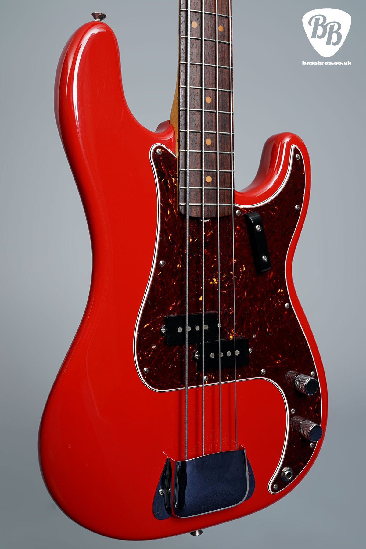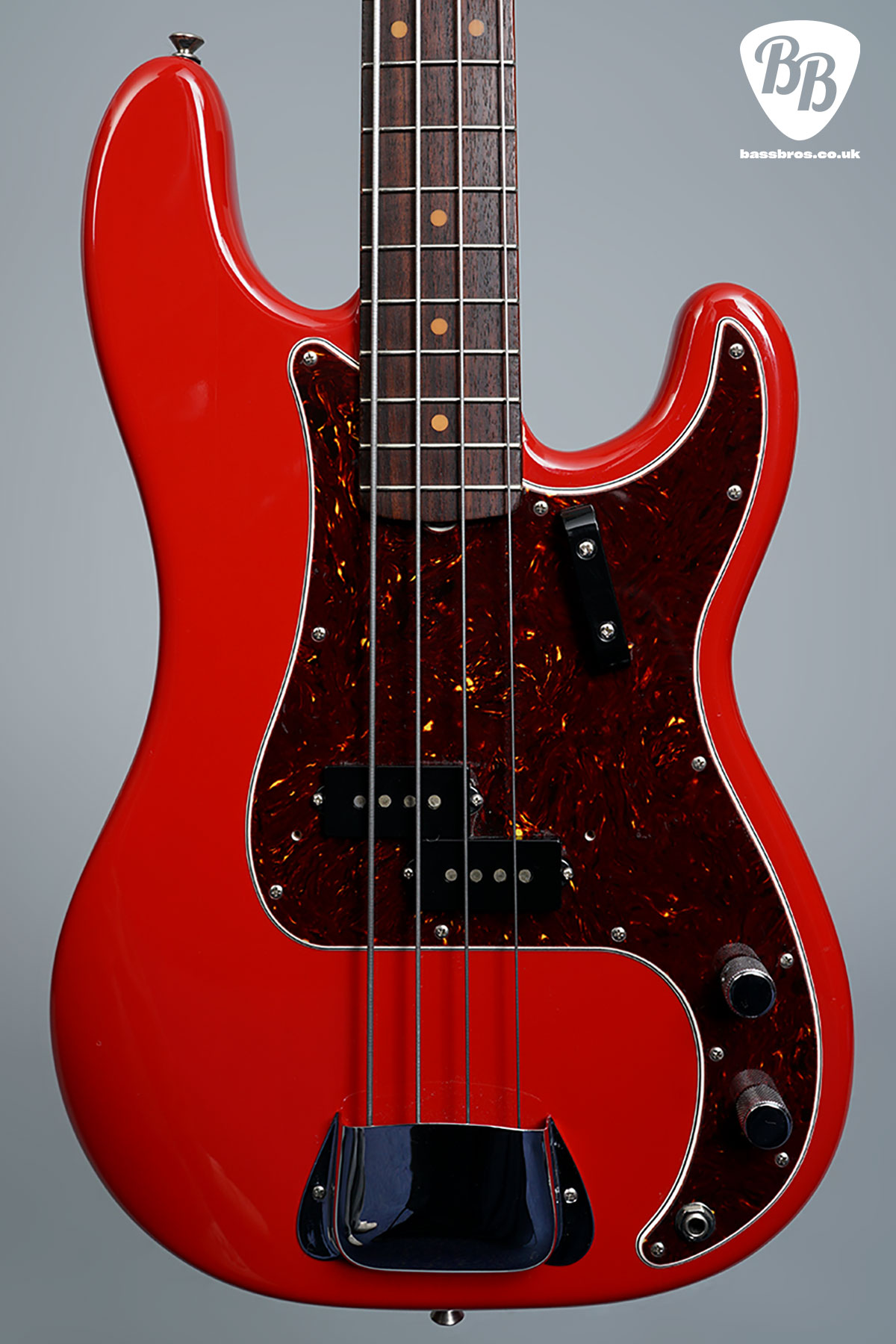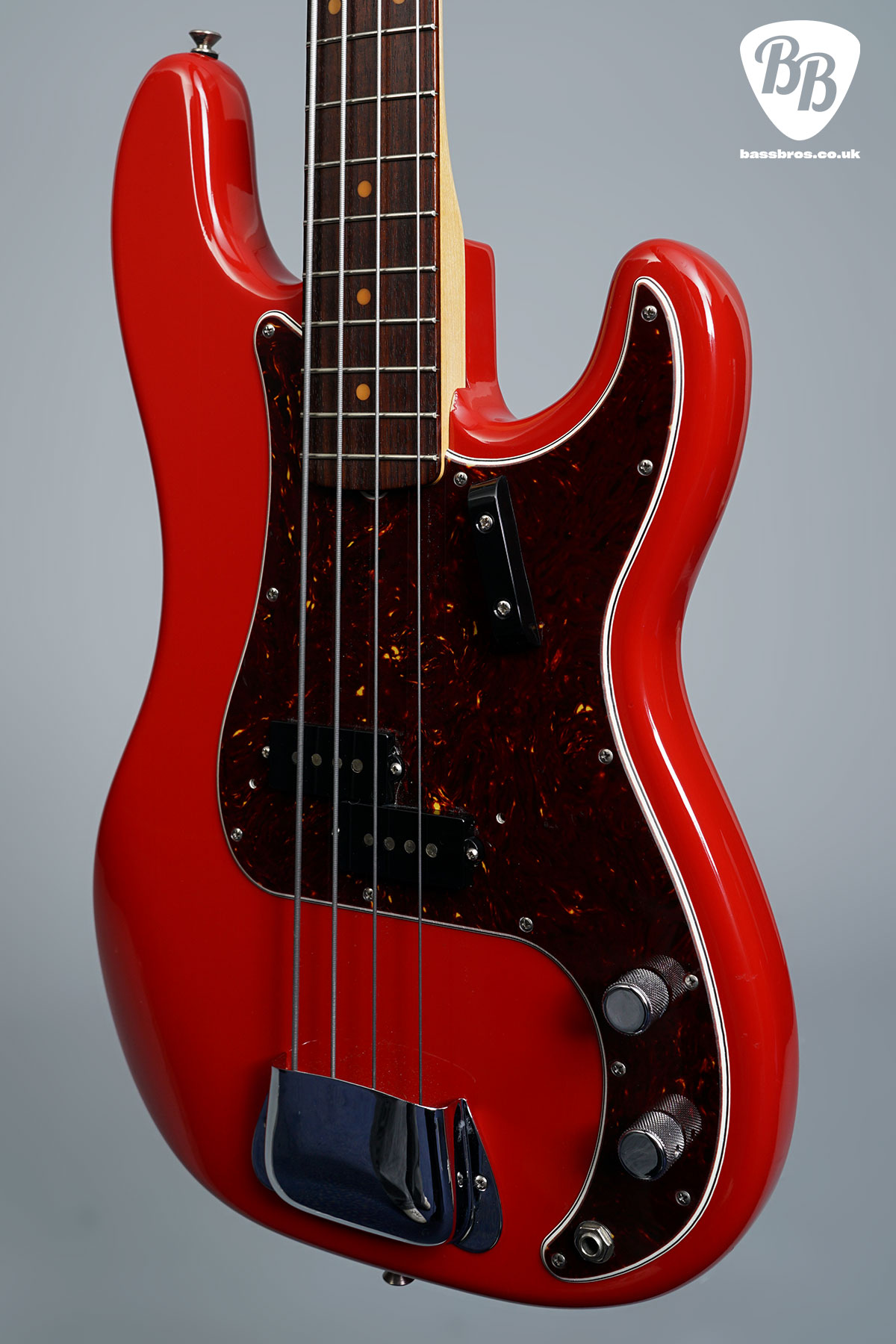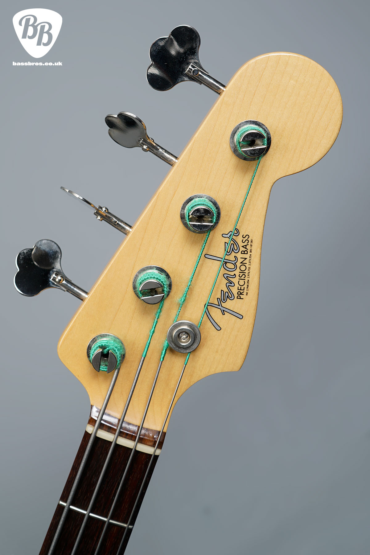 This fantastic 2014 Fender ’63 American Vintage Reissue Precision Bass really nails the ’60s vibe with the tortoiseshell pickguard, rosewood fingerboard and ’60s profile neck. It sounds as good as it looks! It is in excellent condition with a few small marks throughout, mostly to the bottom of the body. This one has had the back of the neck finish removed, and has also had luminlay side dots added. The pickguard has been replaced but the original is included. We have given the bass a full check over and everything works perfectly as it should, including trussrod and electrics. Included is the original hardcase and paperwork, as well as covers.
