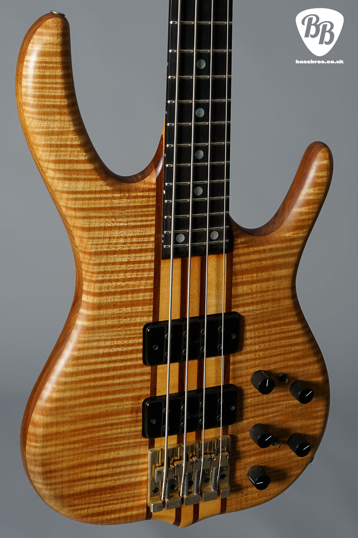 Here we have a stunning 2014 Ken Smith BSR4WT with stunning 4A Tiger Maple facings! This is a great opportunity to get hold of one of these basses on the secondhand market which rarely come up! This one is in excellent condition with some very light signs of use. This one has a super low action and sounds immense! Everything is in good working order including the electronics and the trussrod. Included is the original hardcase, as well as hang tag and paperwork.