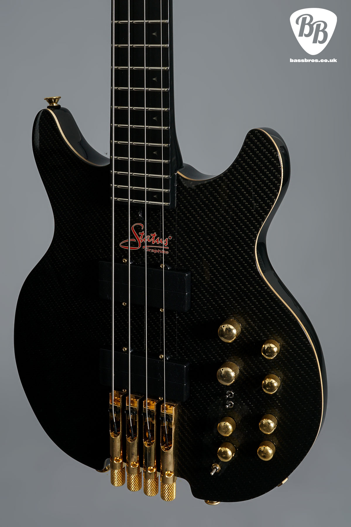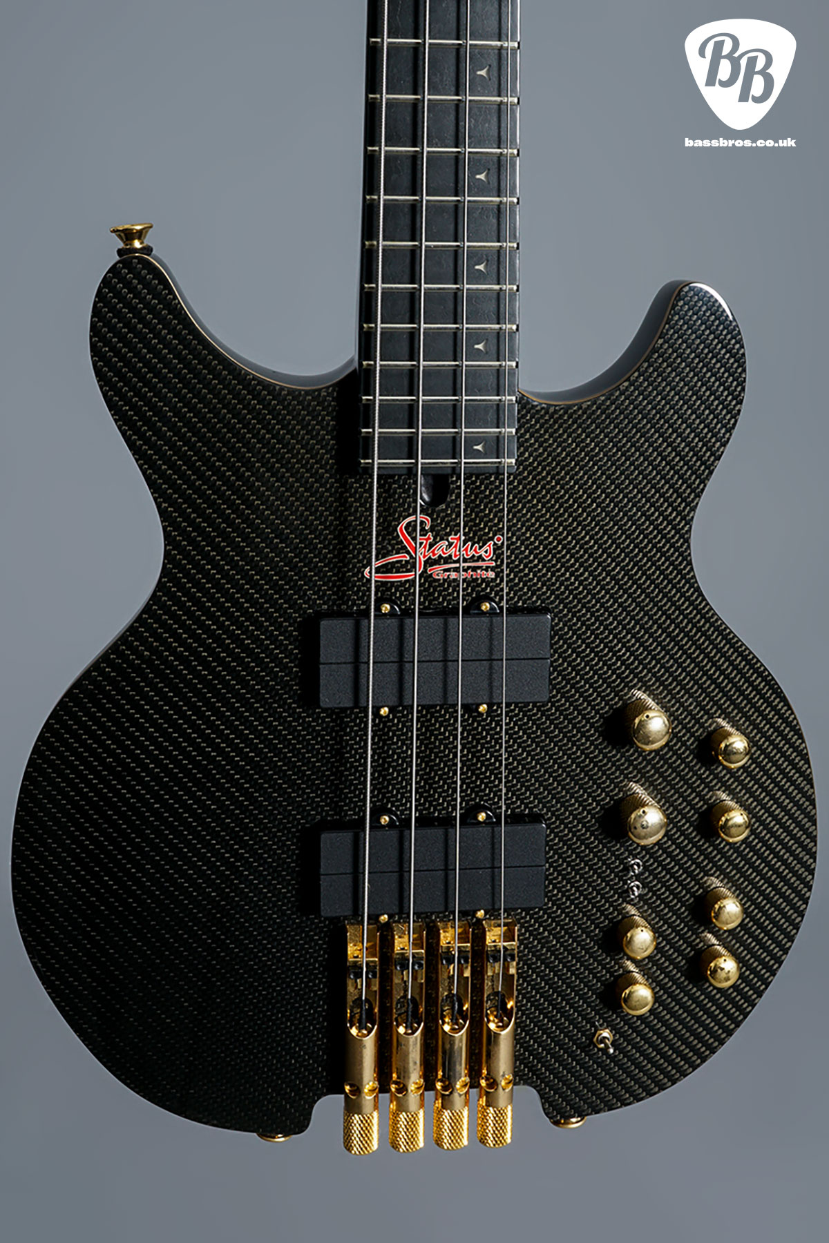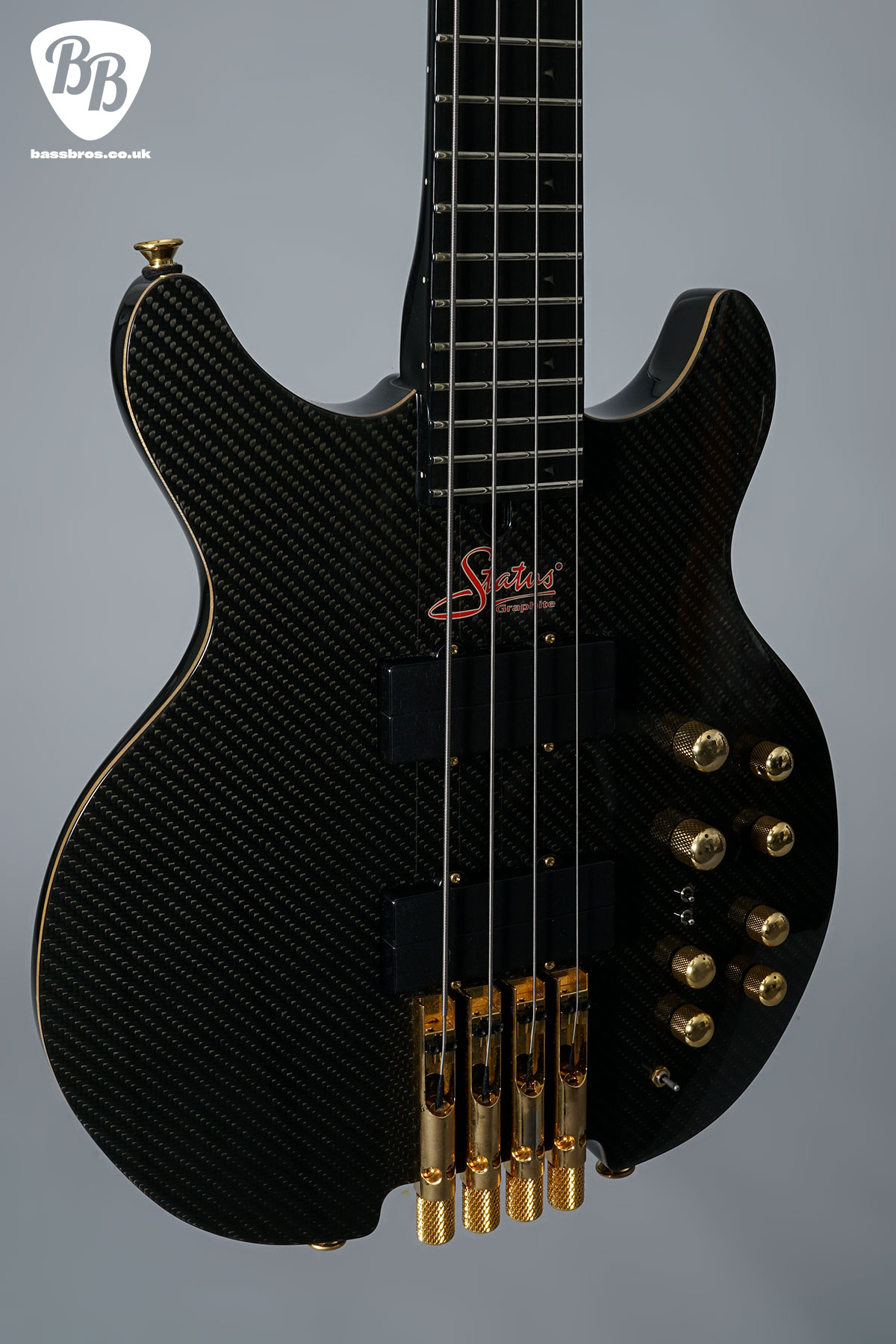Certainly another a stunning Status Kingbass right here! This one features 19mm string spacing and an alder core with woven carbon graphite shell. Also featured are blue tri-star front LEDS and blue side LEDS. This bass certainly has the looks as well as the playability. In fantastic condition with hardly any signs of use. Some very slight tarnishing to the gold hardware but nothing out of the ordinary. Original hardcase included.
