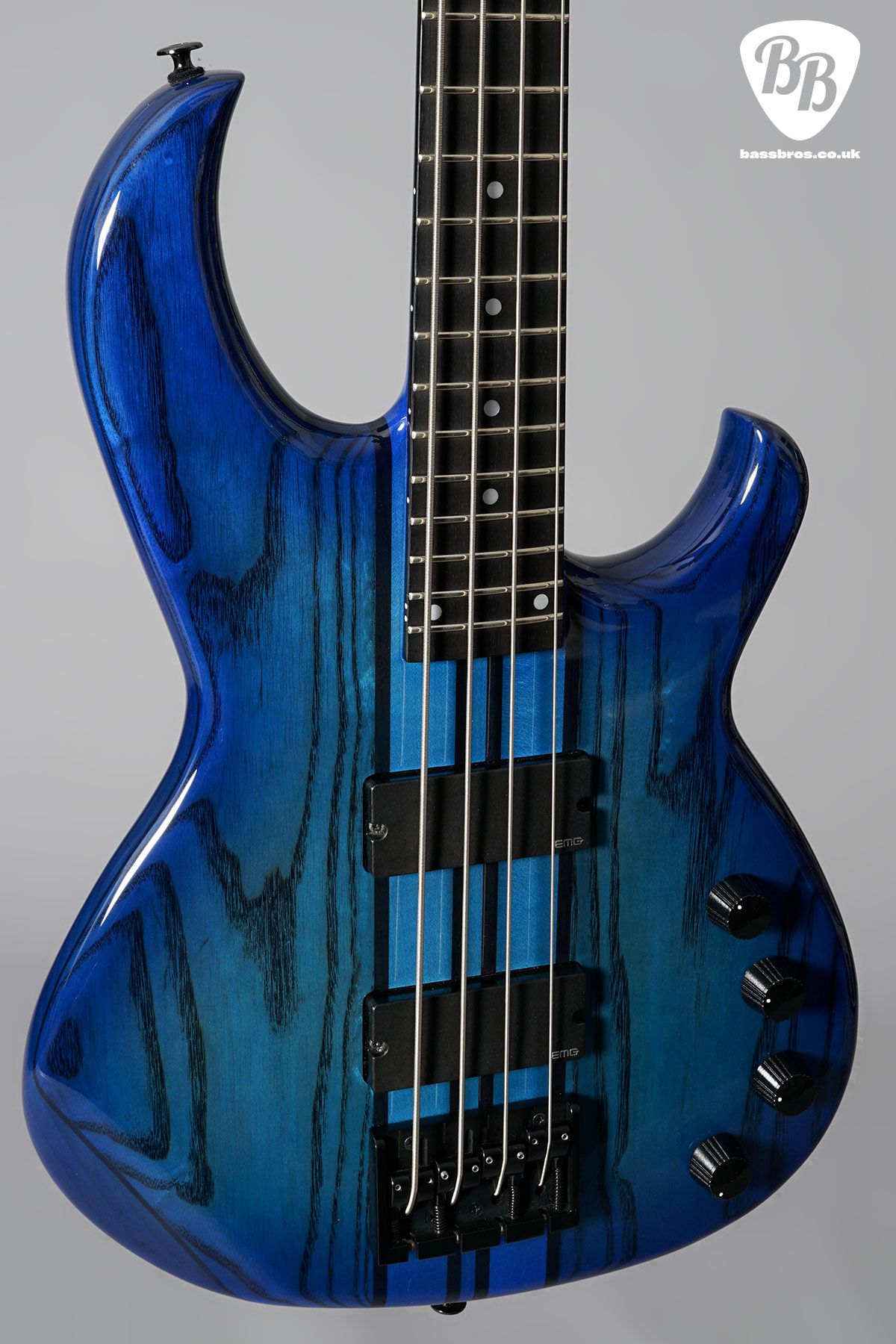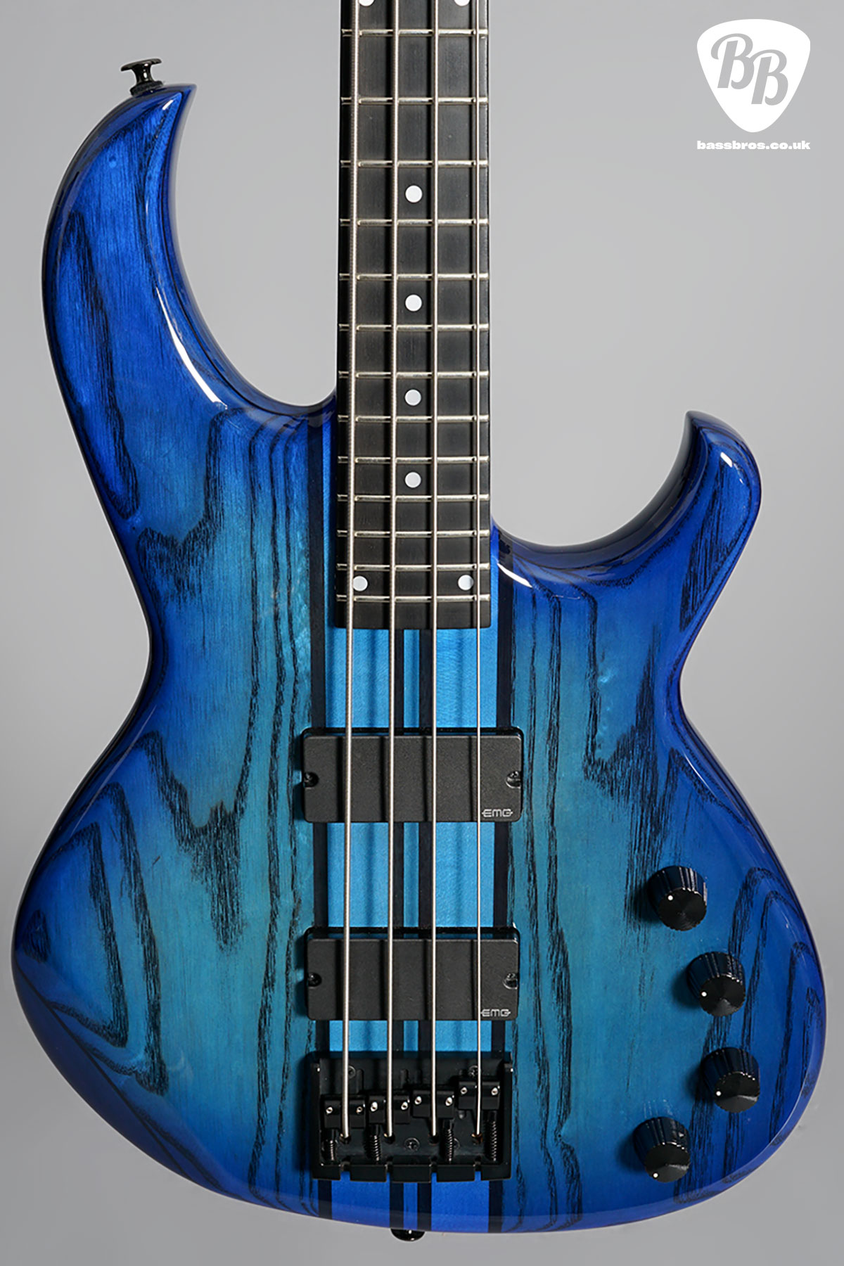 The SB-J110, a seriously fantastic Japanese made Aria SB Bass. This bass is a very rare limited edition Japan only model, and is almost impossible to find. The maple + walnut through neck and the body are slightly thinner than the traditional SB. The EMG-35J is a pickup with a J-type single coil in a 35 series housing. Its solid low end and rich midrange give it a distinctive jazz bass tone that everyone will recognise, but it also boasts a low-frequency expression capability that goes beyond that. This one is in immaculate condition and has no signs of wear. The control knobs have been changed, but the originals are included. We have given the bass a full check over and everything works as it should, including the trussrod and electronics.
