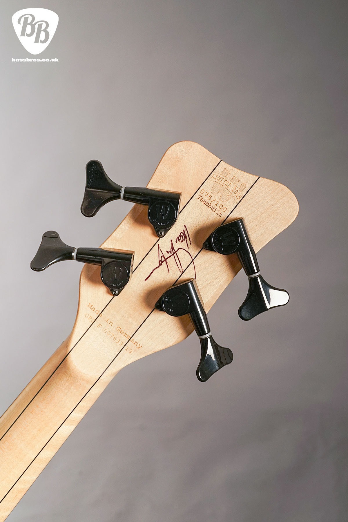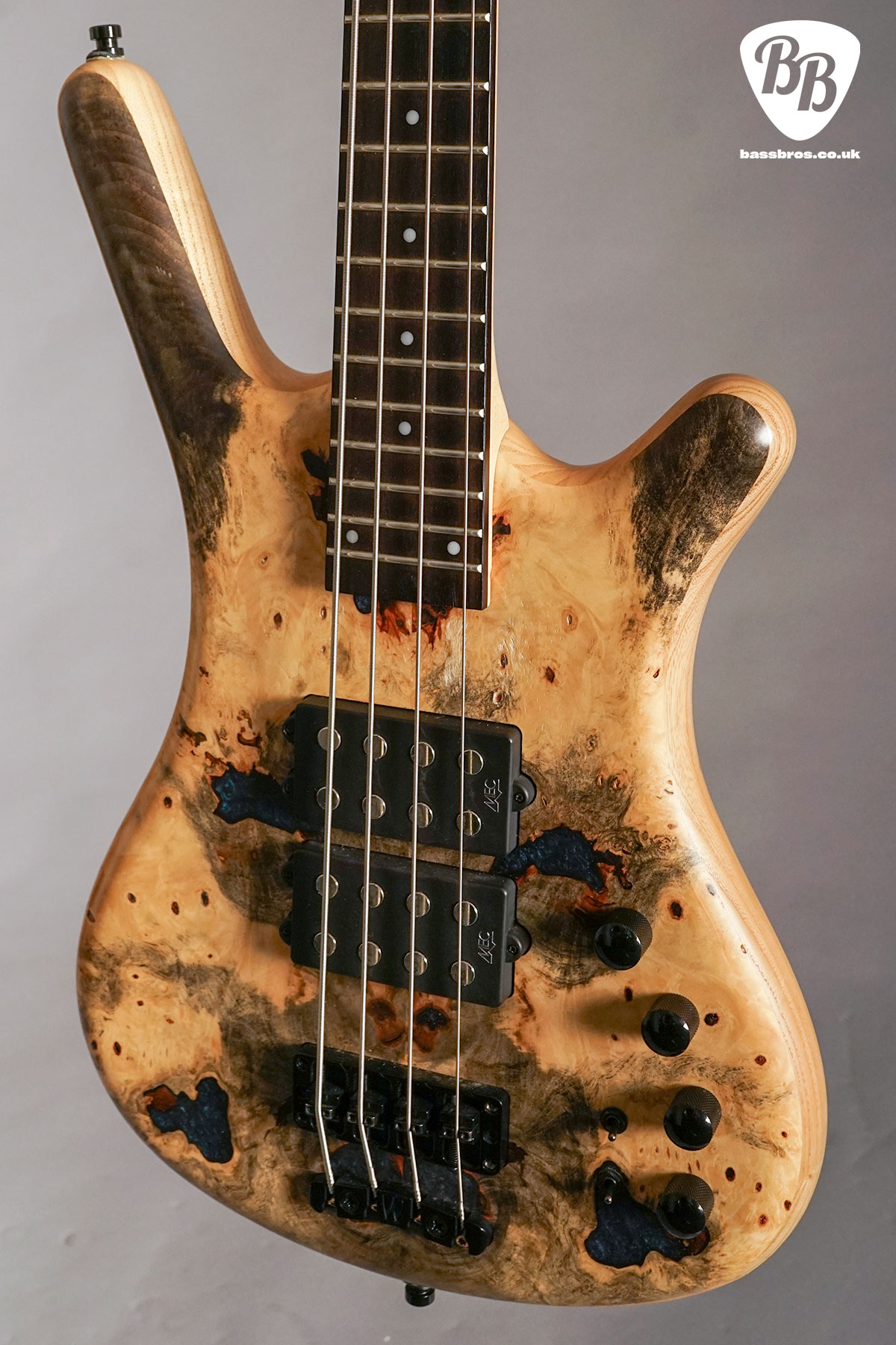 Here we have a fantastic German made Warwick Corvette $$ Limited Editon with a stunning Buckeye Burl top with blue acrylic. It is setup very well with a lovely low action. It is in excellent condition with just some slight glossing of the satin finish above the pickup and on the back of the body.