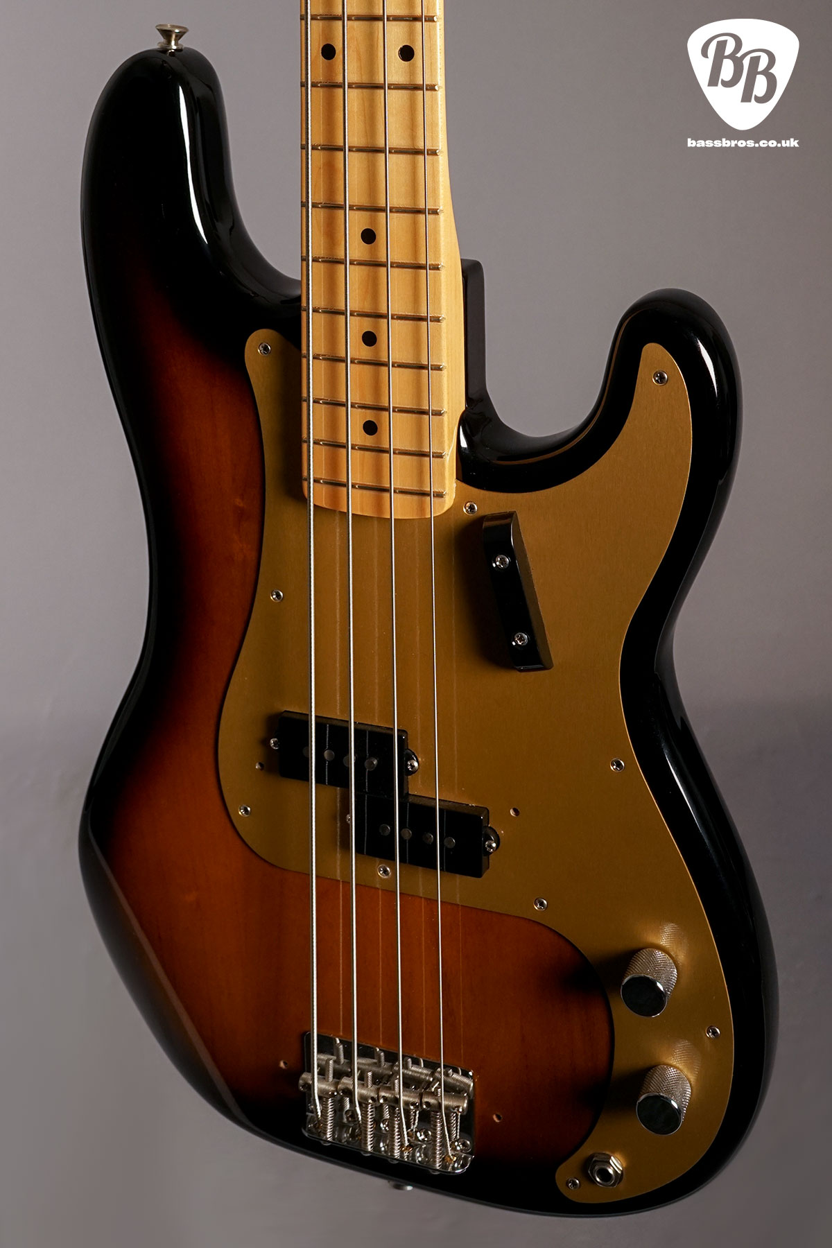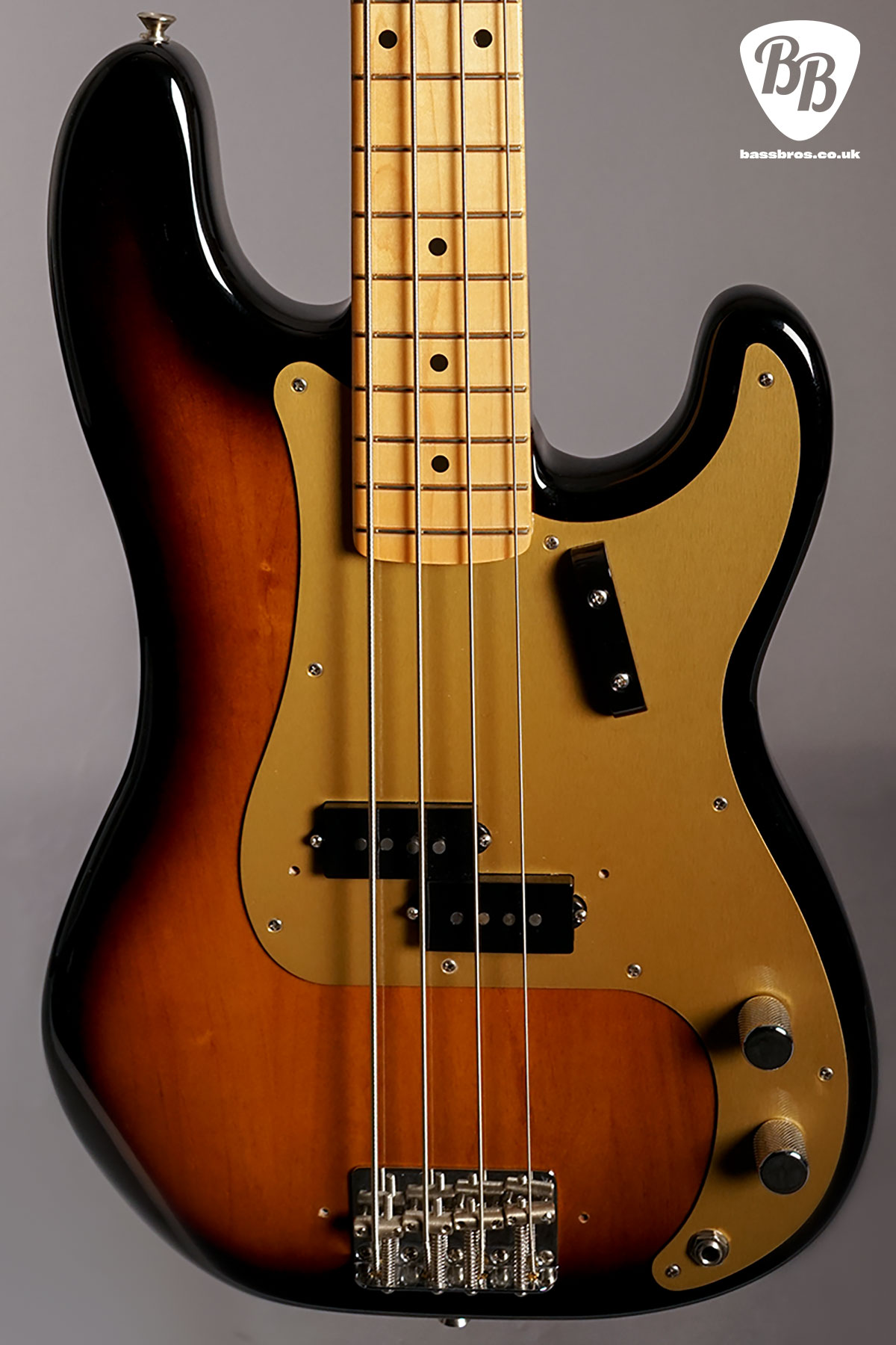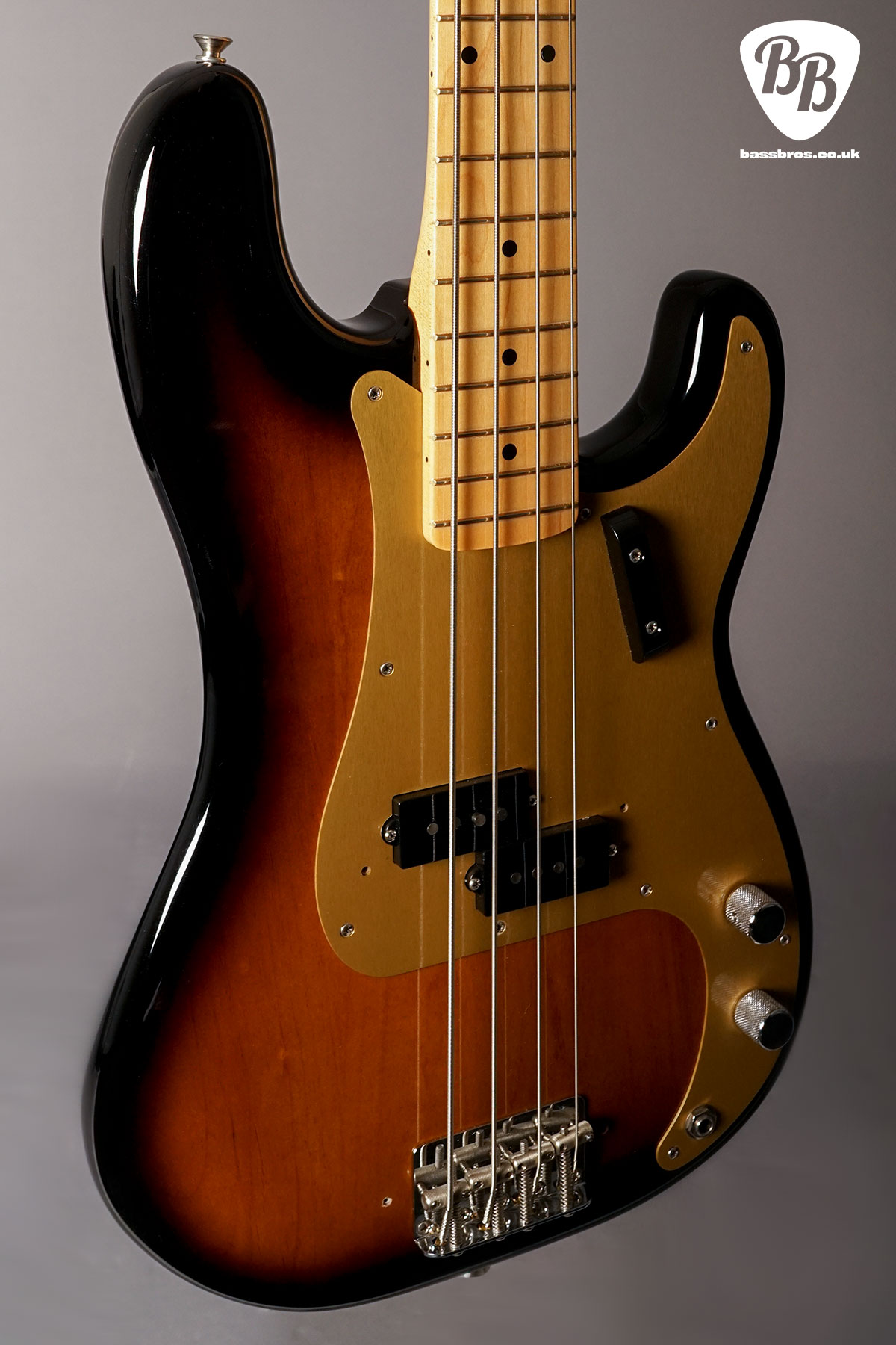 Here we have a very clean example of a Fender American Original ’50s Precision Bass in the classic two tone sunburst finish. This bass is in mint condition. This is a real beauty! Included is the original hardcase and all of the case candy, pickup covers, tags, etc.