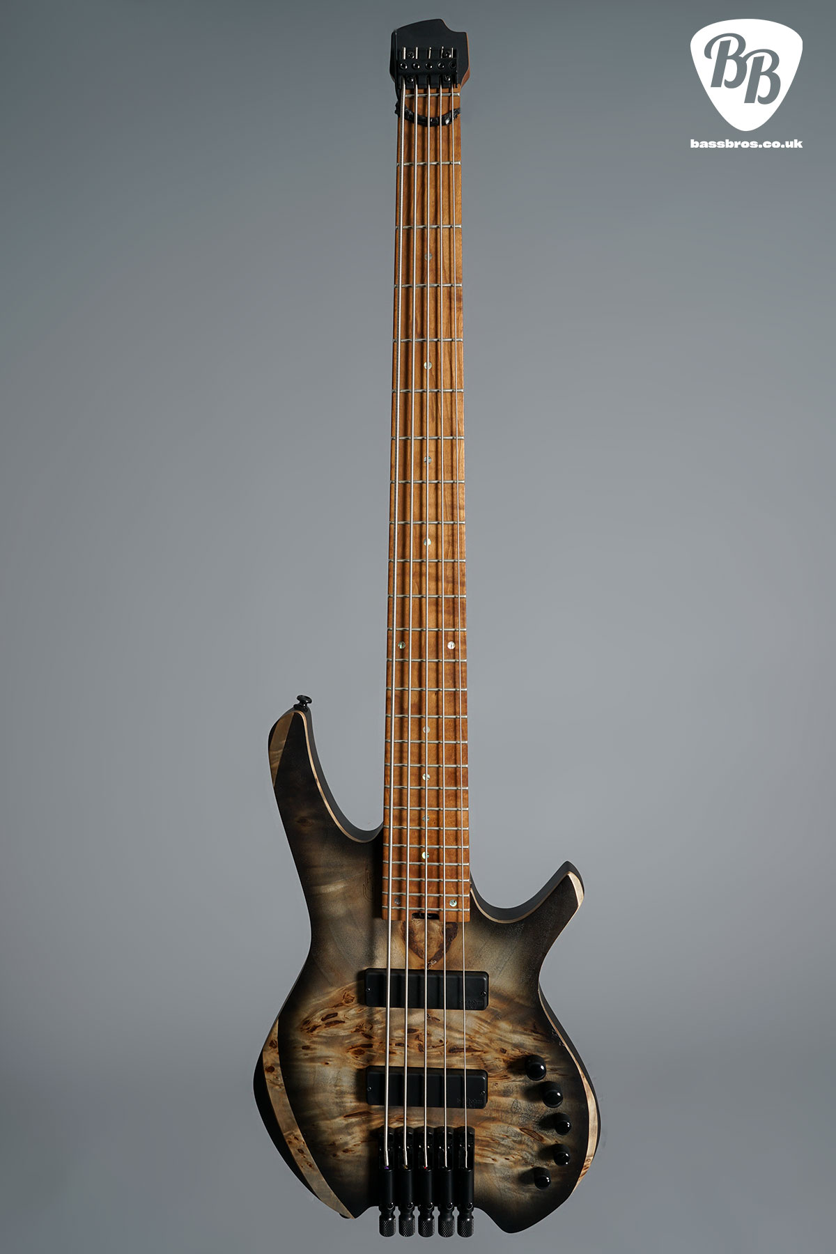 Inspired by the original Space basses from the 1980s, the Space 5 is the modern adaptation of the 80’s classic, with body and neck modeled after the modern flagship Artisan Bass Series with modifications to make it more compact (deeper and bolder contour and cutaways) and headless (individual bridge with tuner knobs). This bass is in excellent condition with virtually no signs of use. Included is the original gigbag.